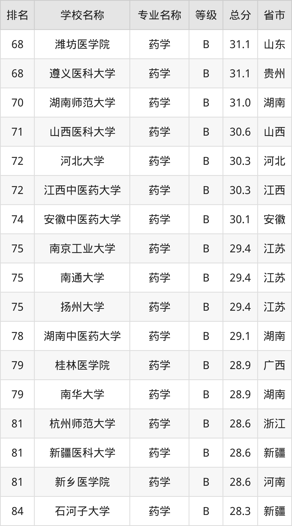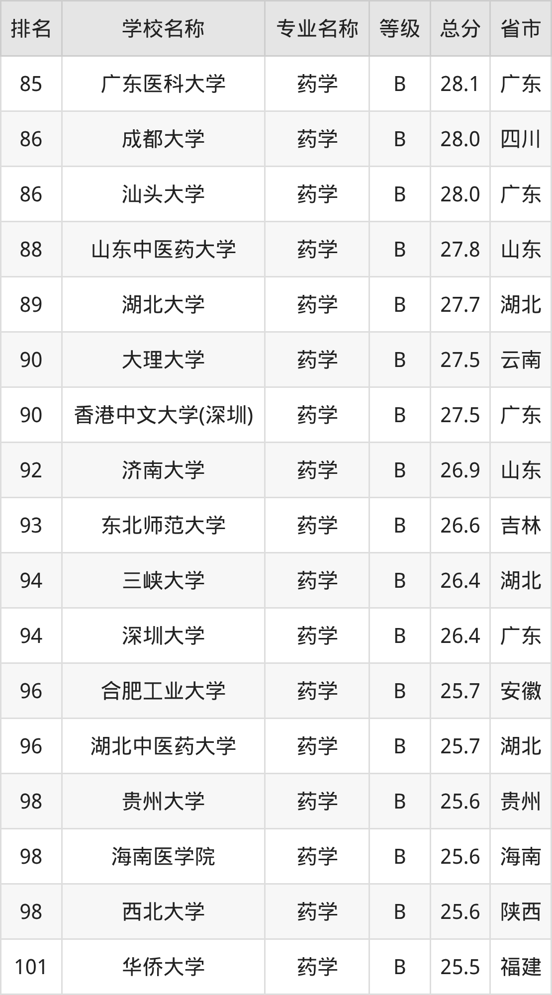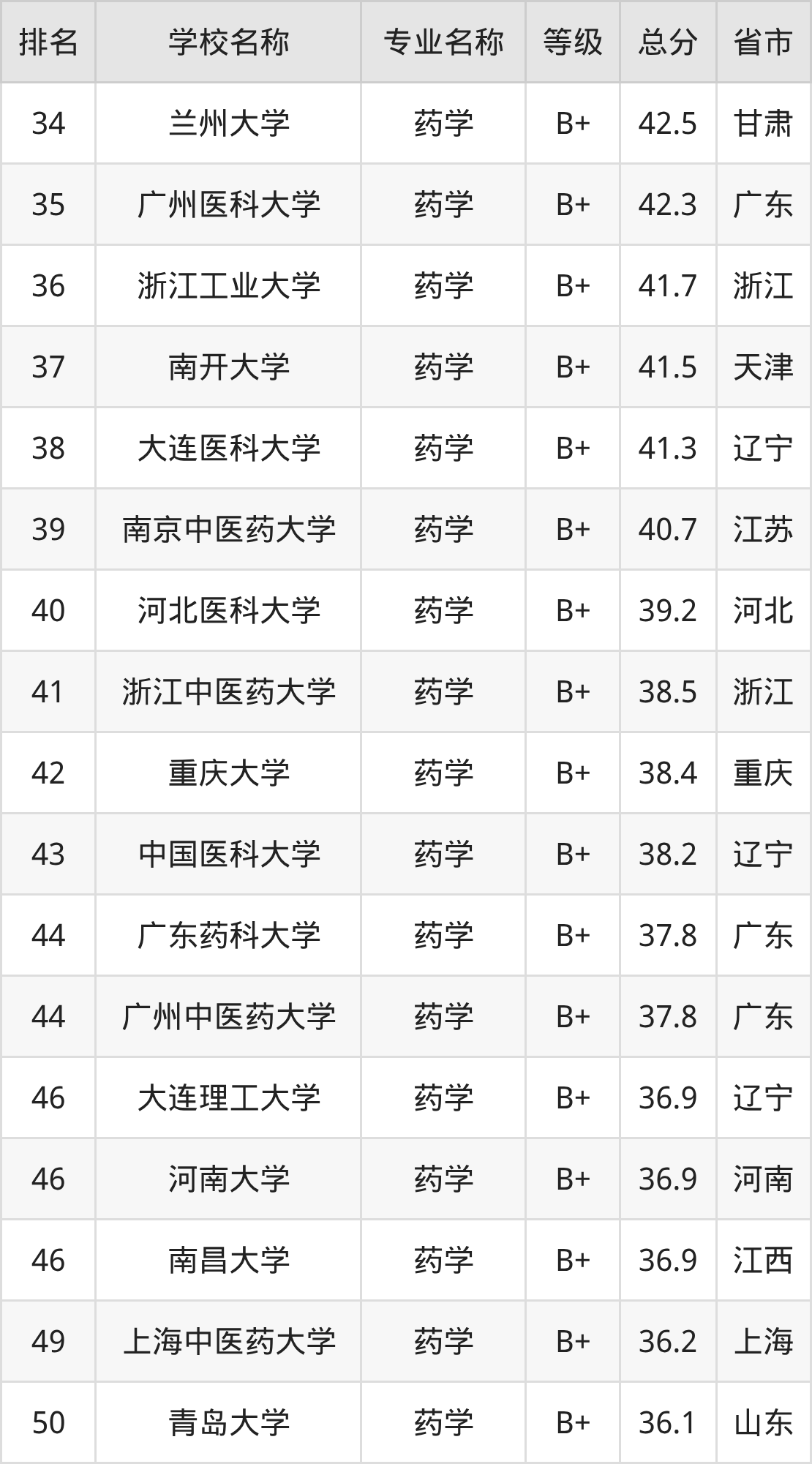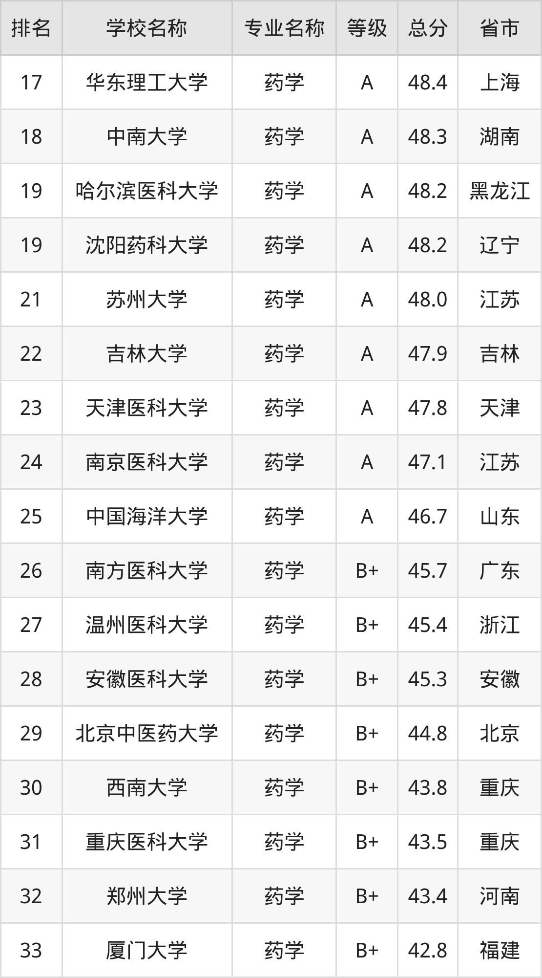 - 行业标杆,药学学科评估A+,药物化学、药剂学全国领先。