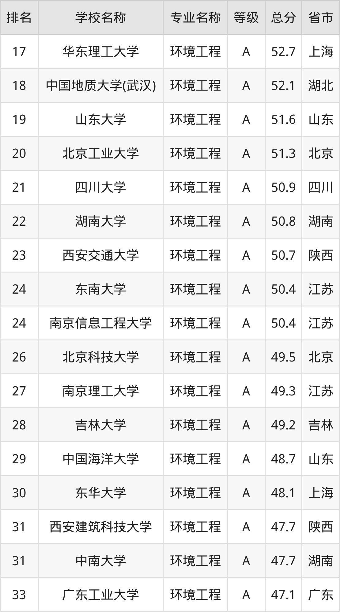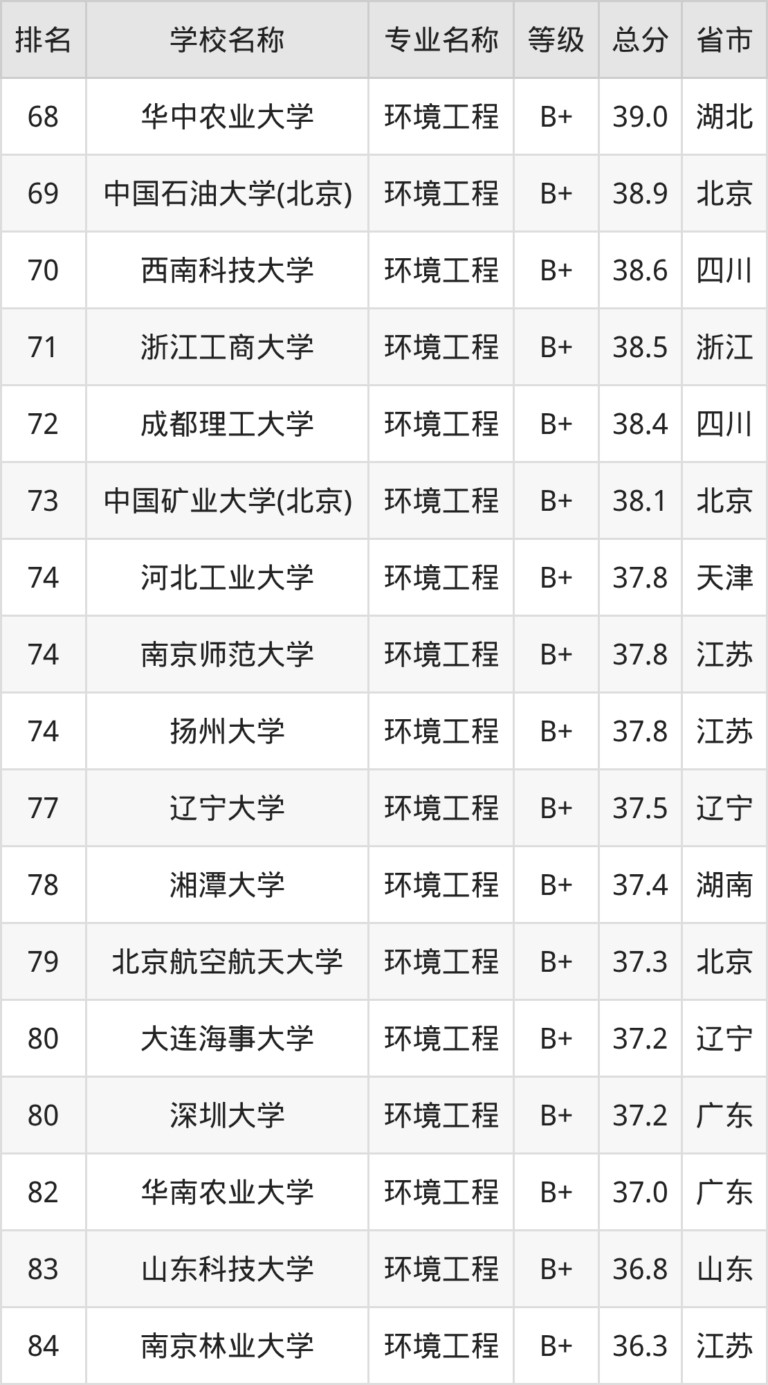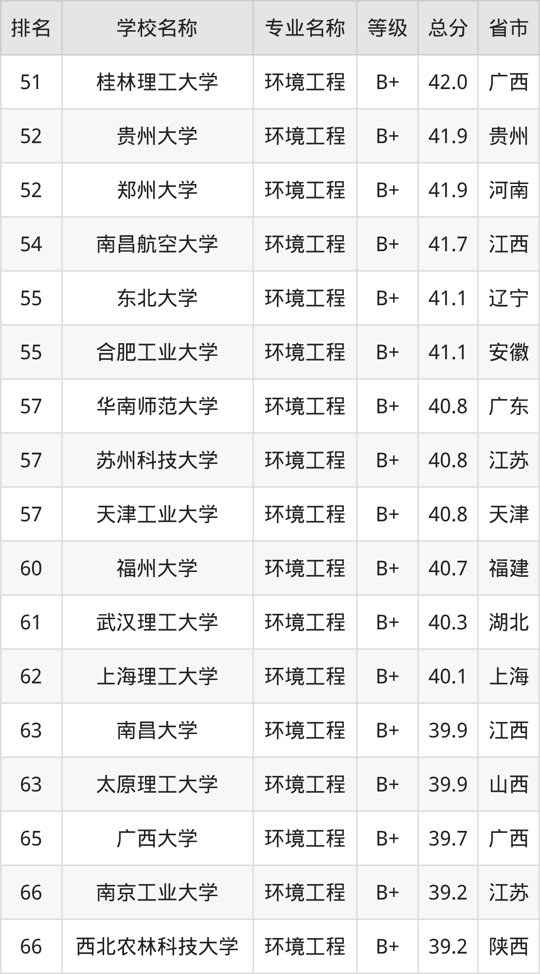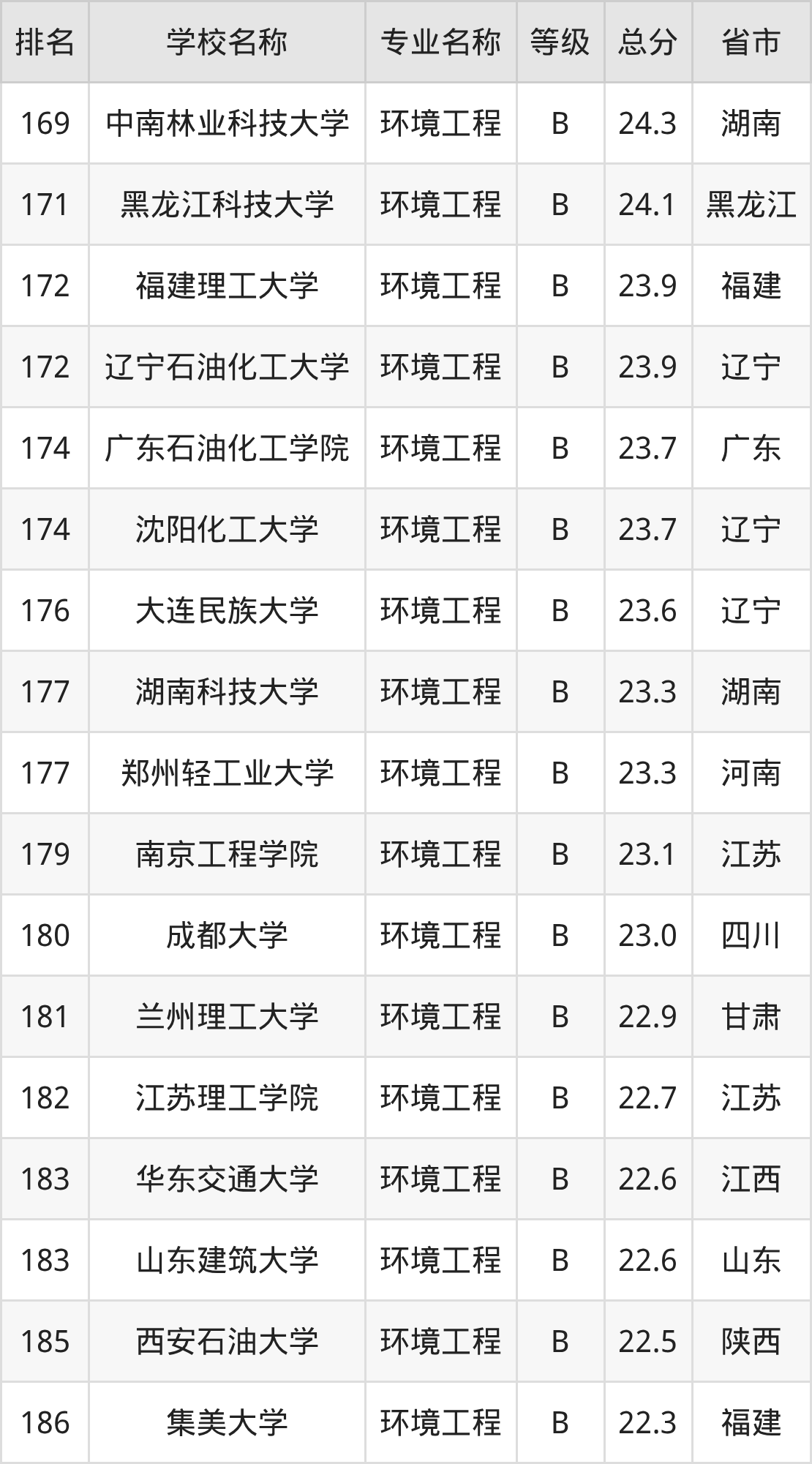 附环境工程专业全国192所院校排名榜单一览表!