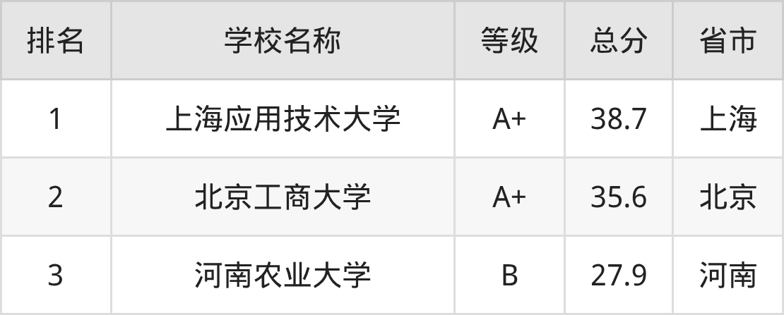 上海应用技术大学:第1名,评分为38.7