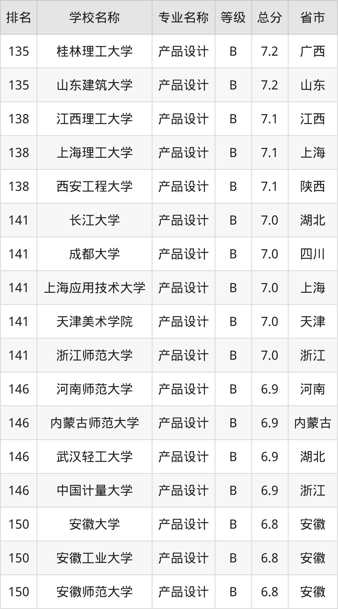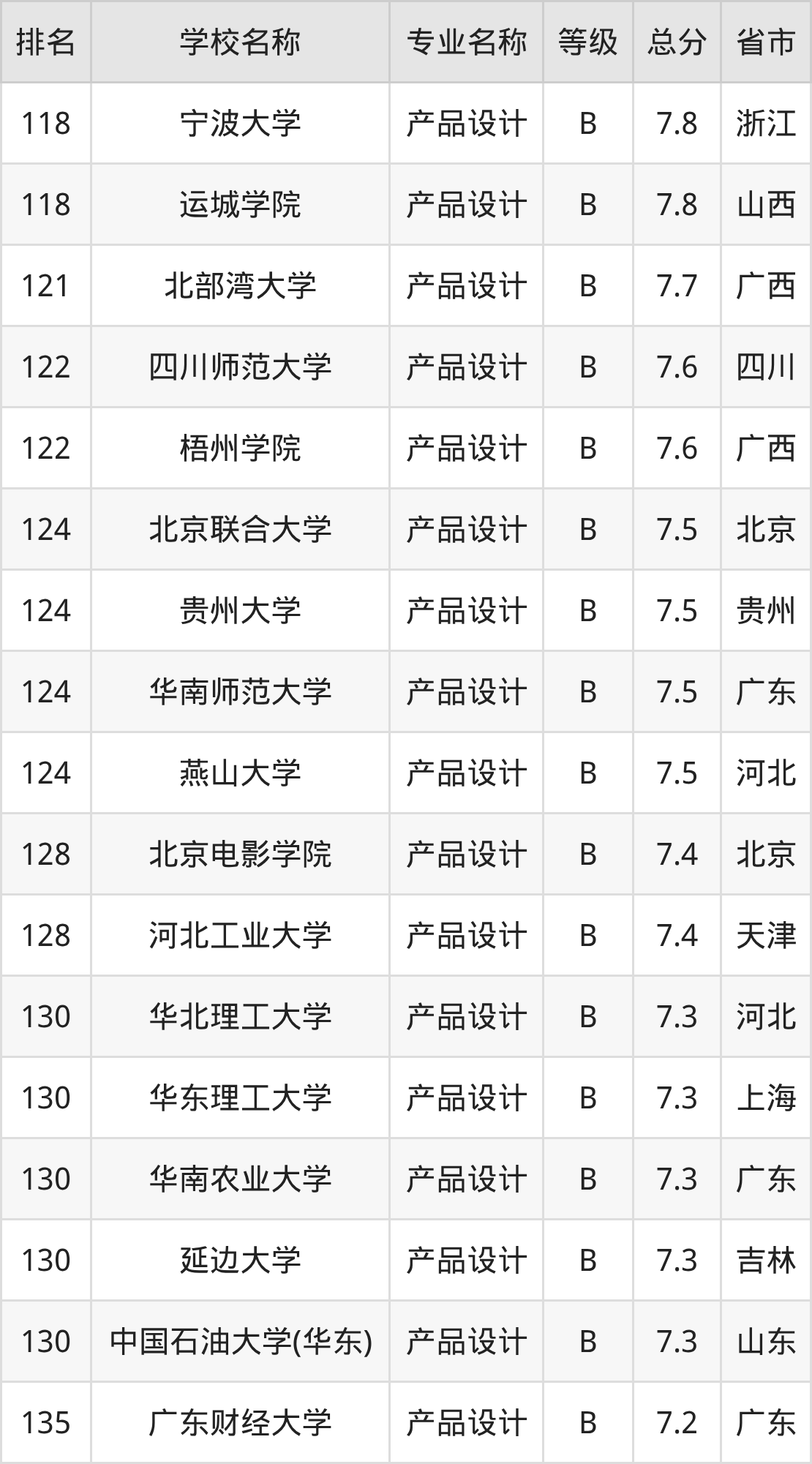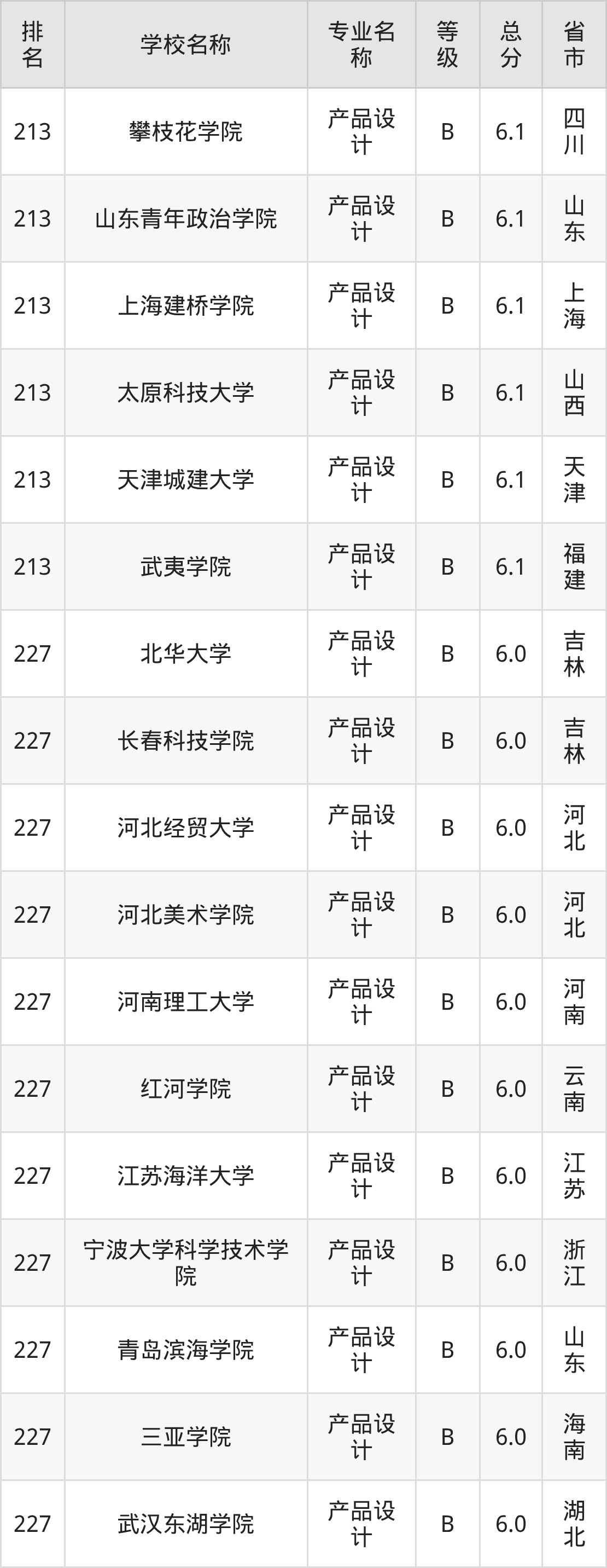 附产品设计专业全国254所院校排名榜单一览表!