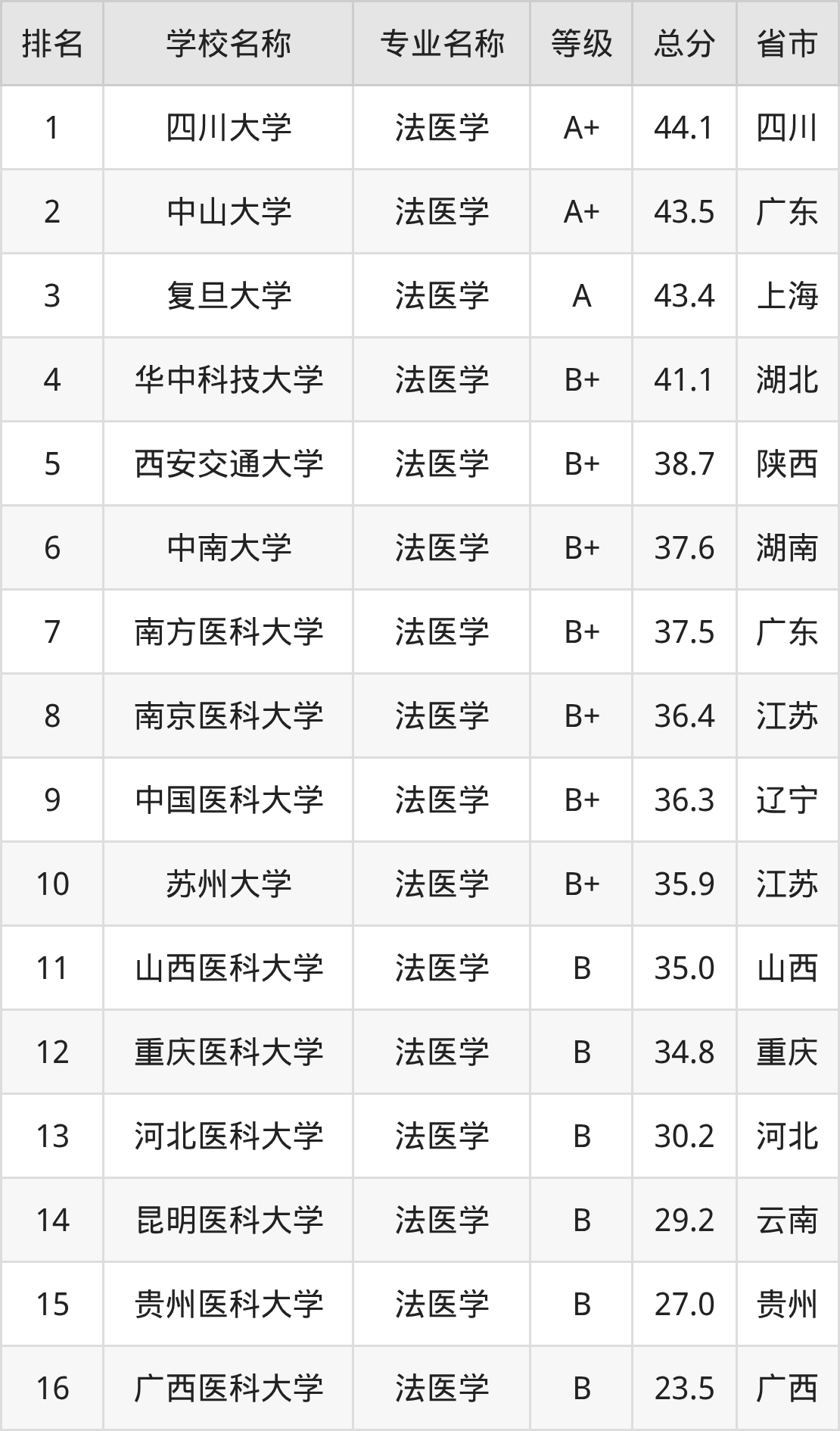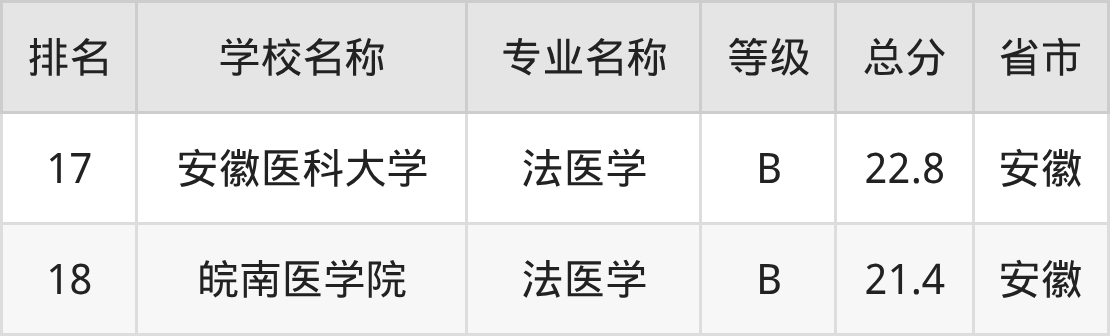 附法医学专业全国18所院校排名榜单一览表!