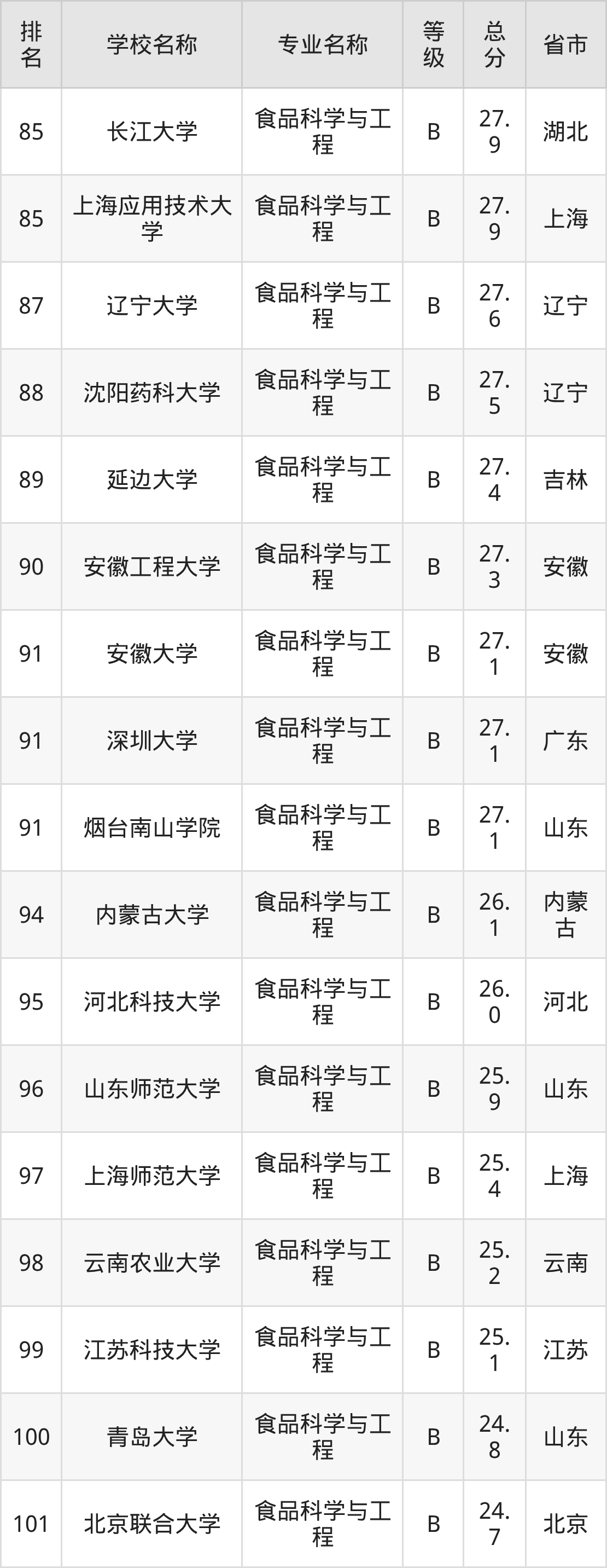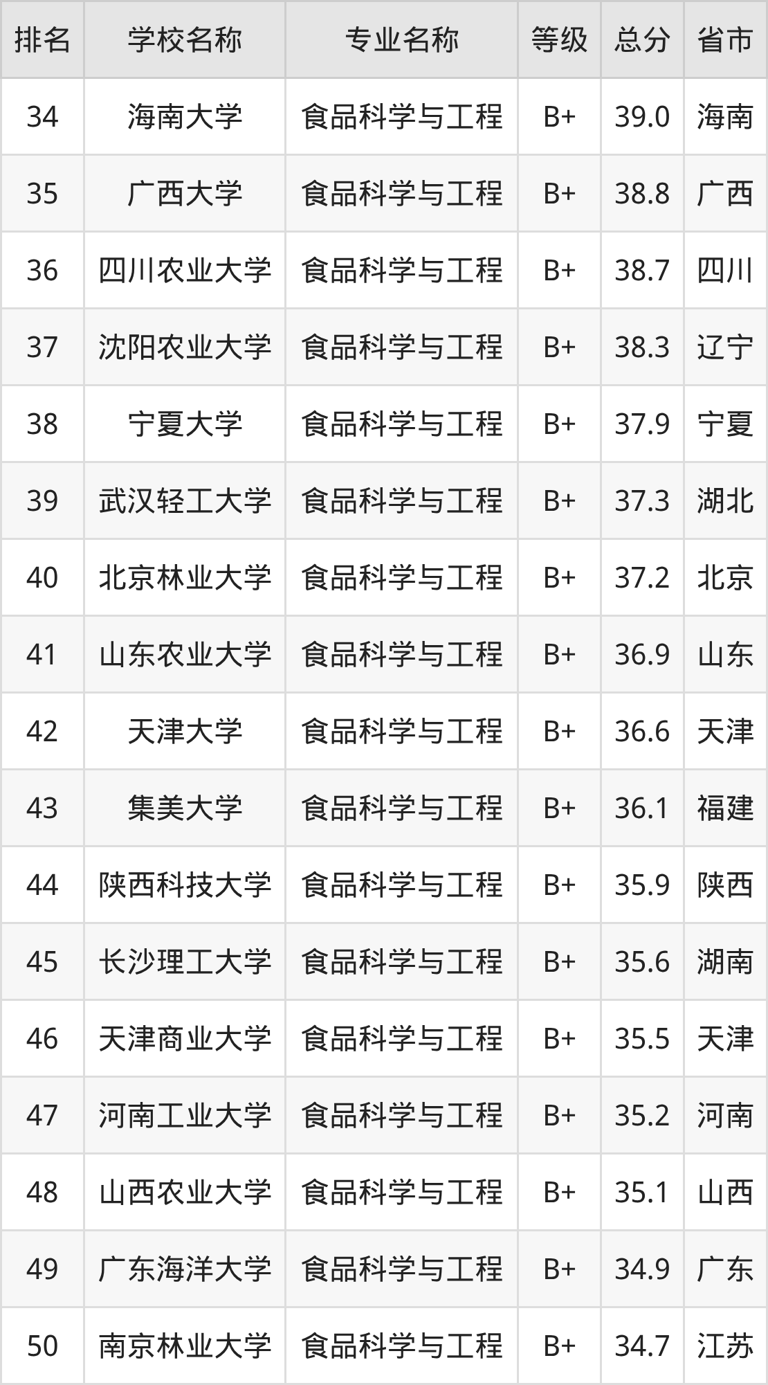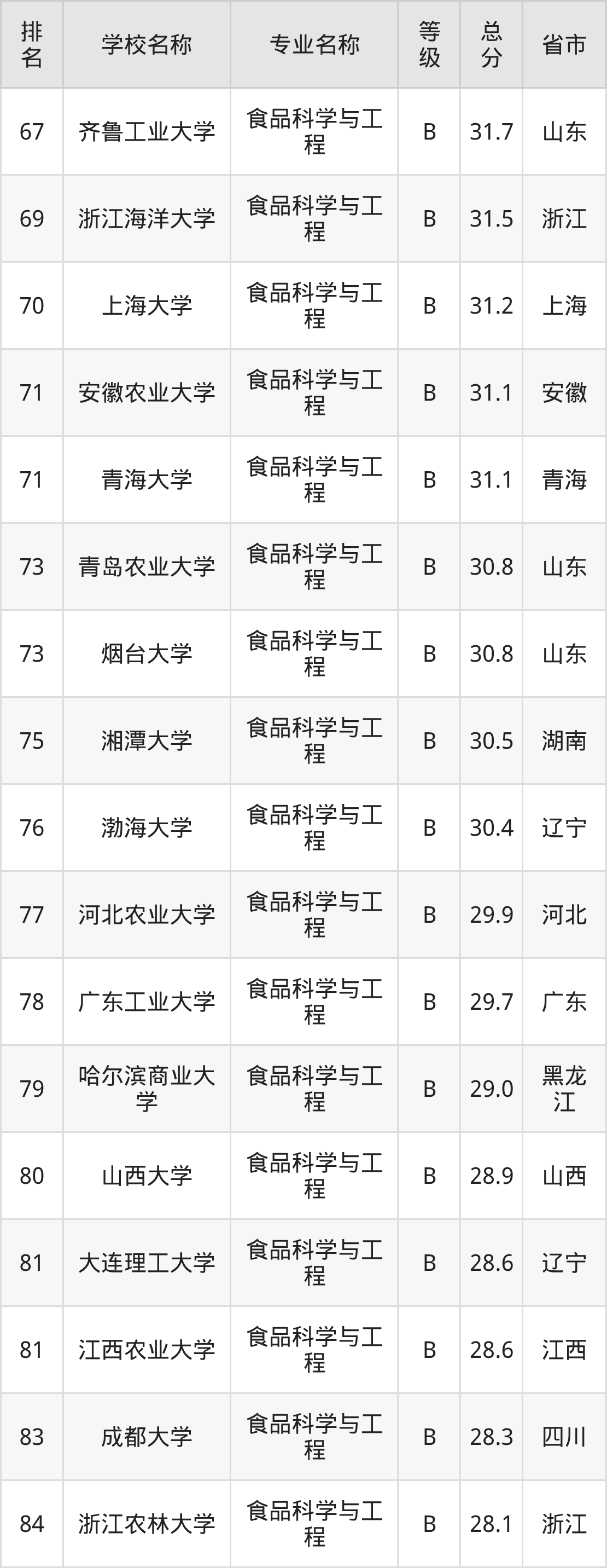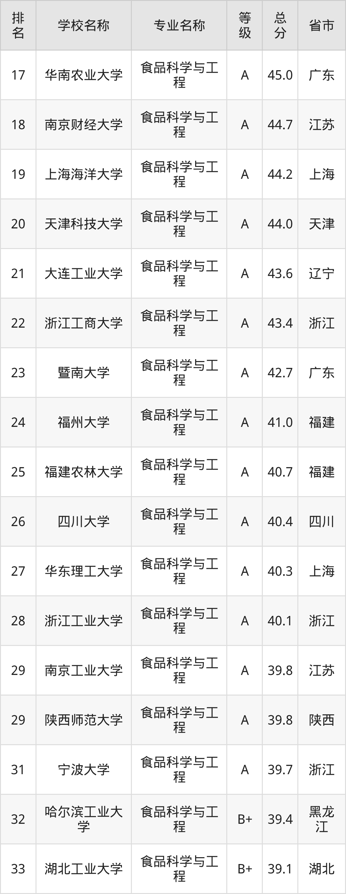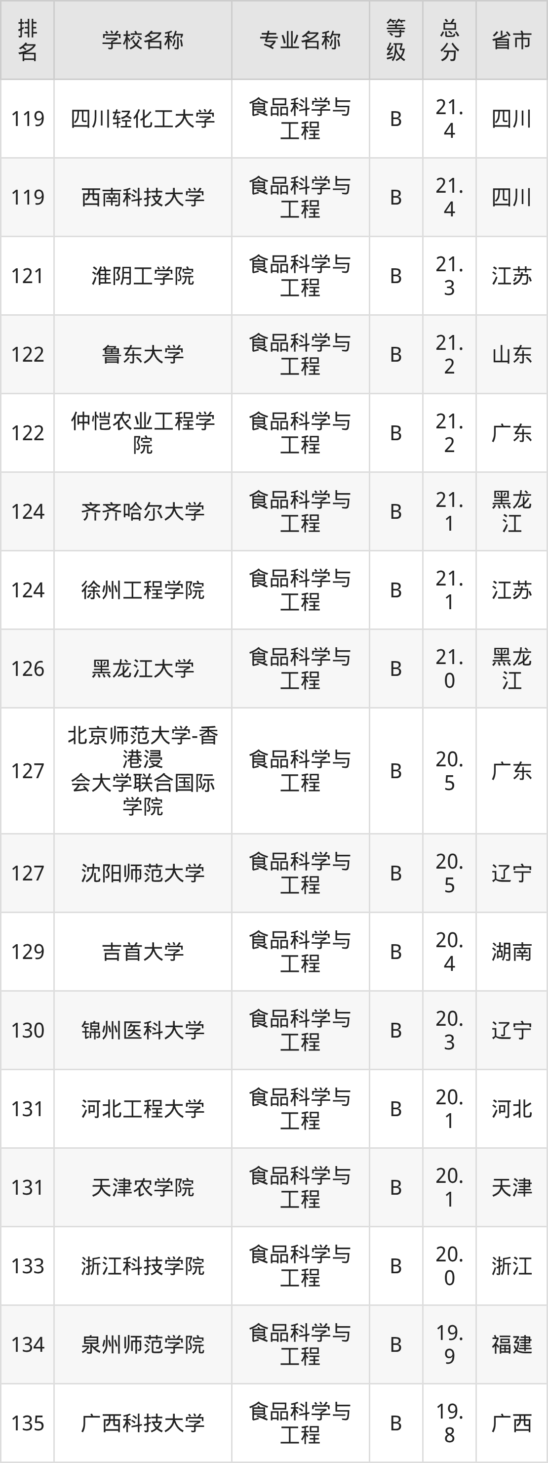 附食品科学与工程专业全国156所院校排名榜单一览表!