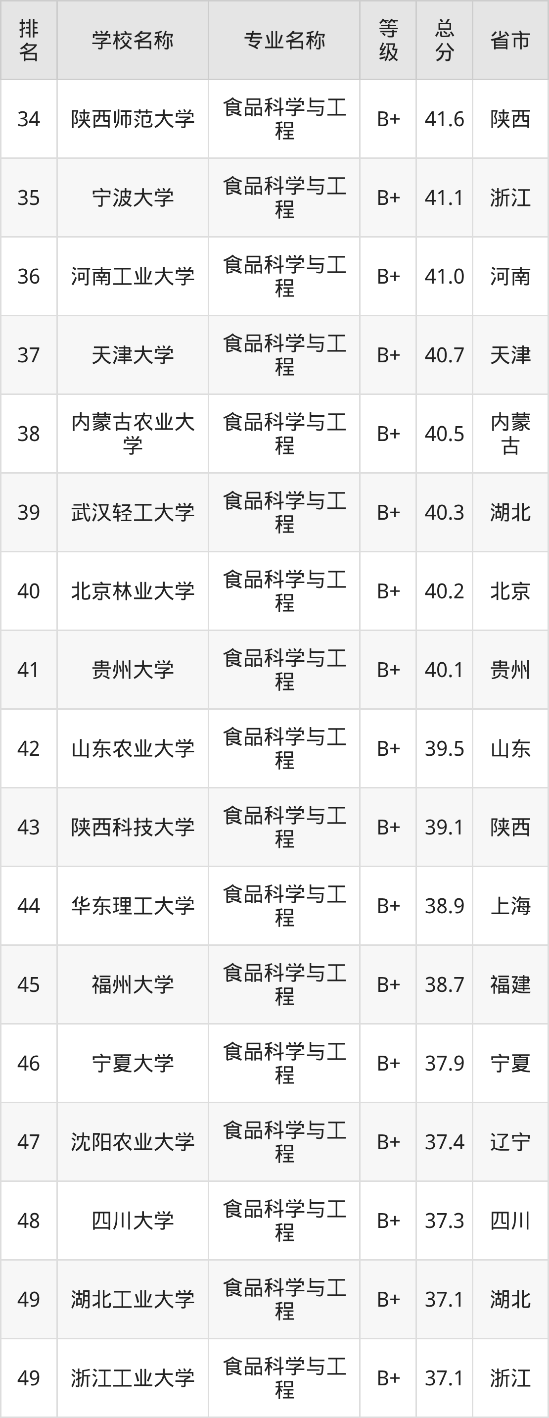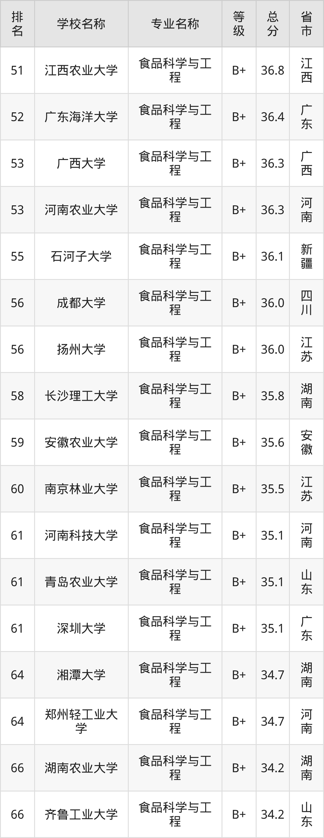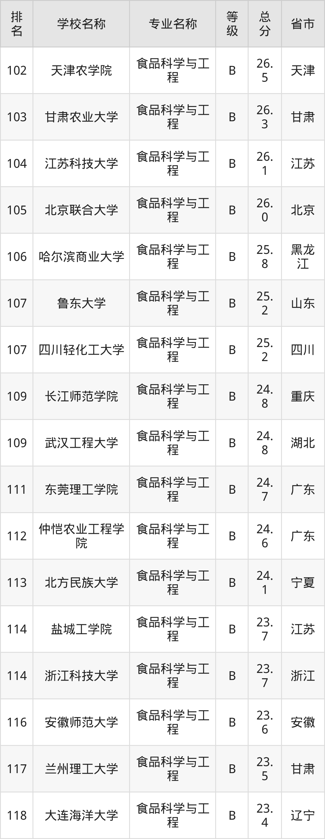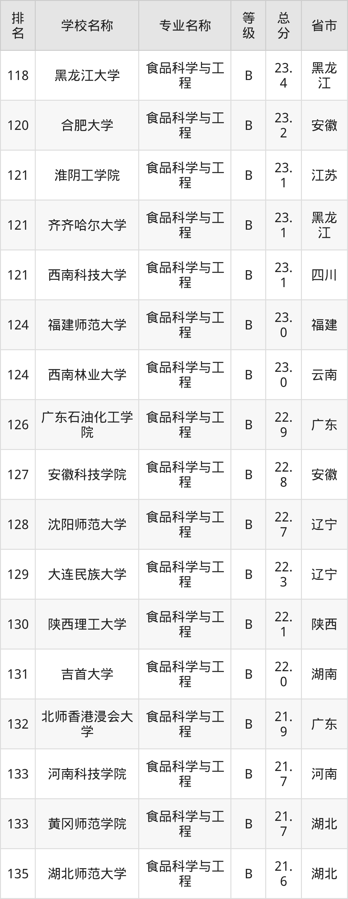 附食品科学与工程专业全国153所院校排名榜单一览表!