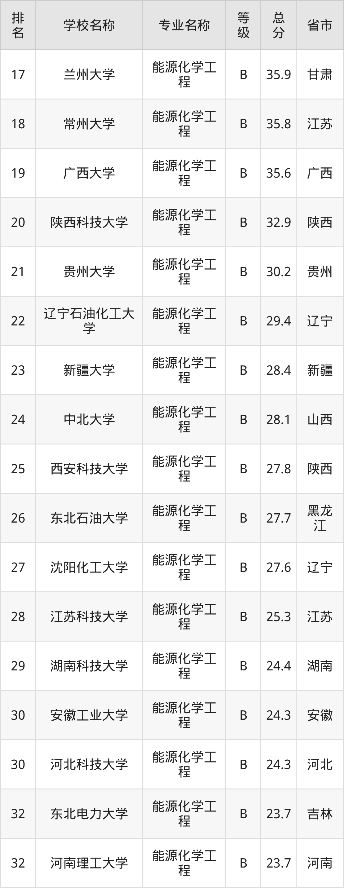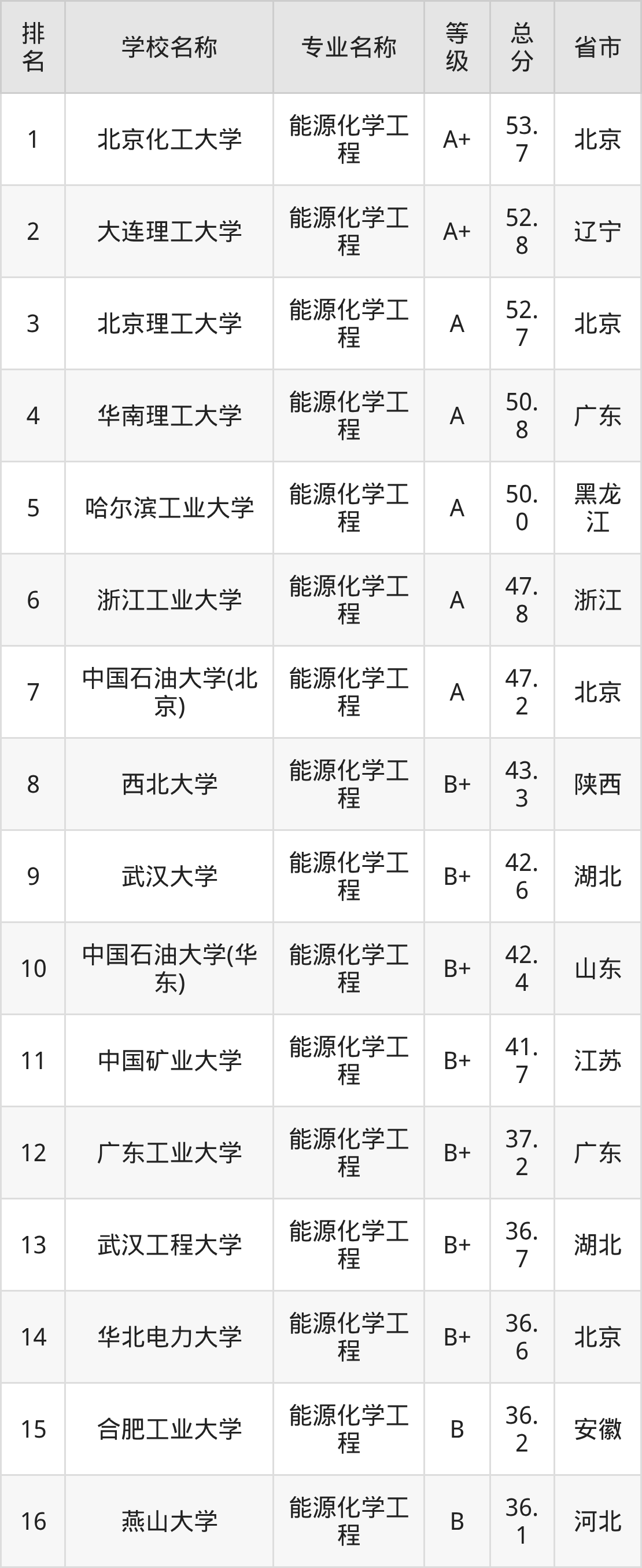 附能源化学工程专业全国37所院校排名榜单一览表!