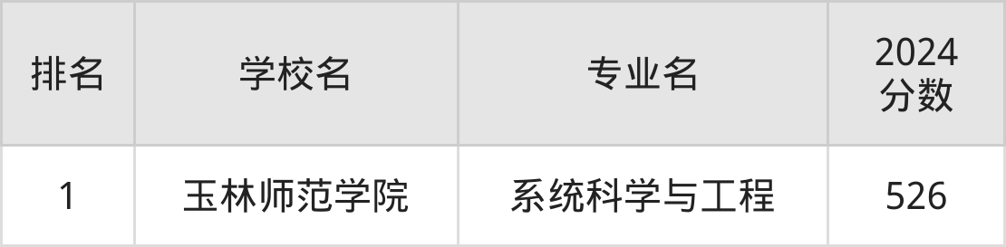 系统科学与工程专业排名前1的大学中,收分较低的有玉林师范学院(526分)。