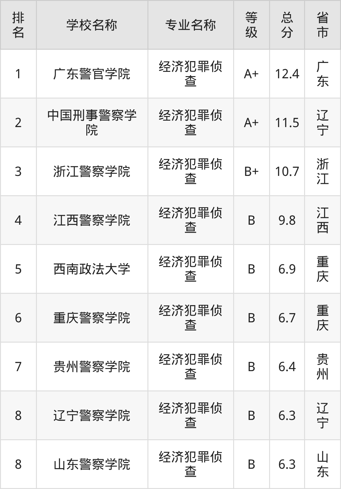 中国刑事警察学院:第2名,评分为11.5