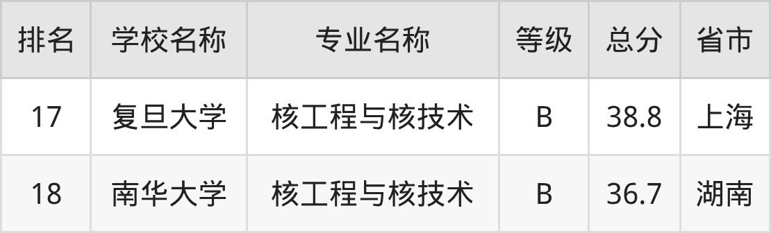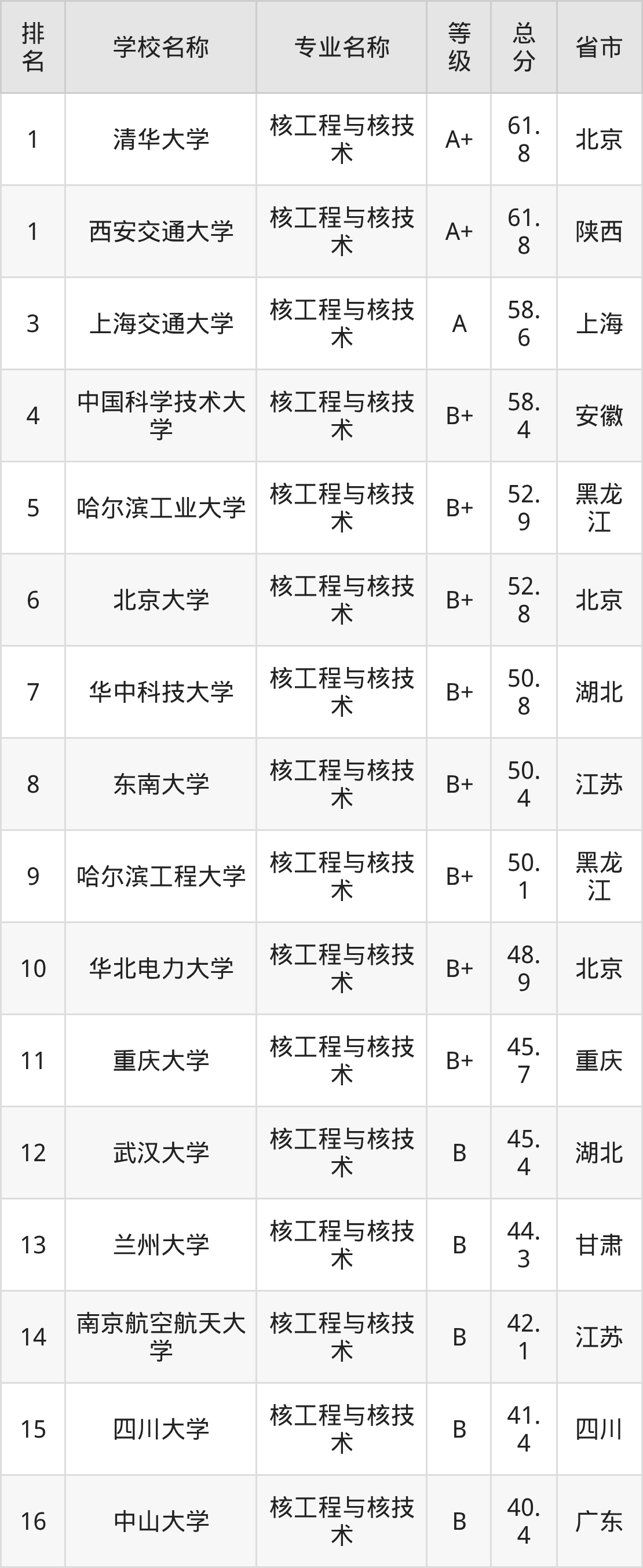 附核工程与核技术专业全国18所院校排名榜单一览表!