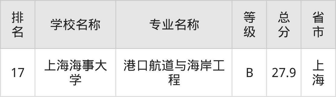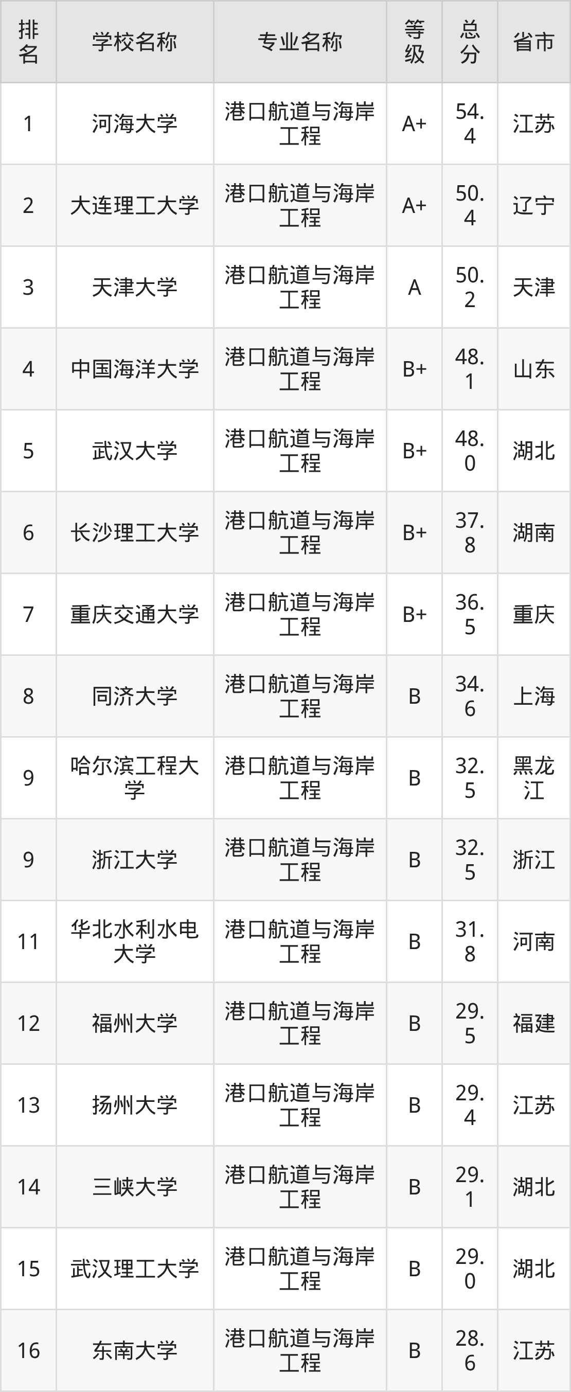 附港口航道与海岸工程专业全国17所院校排名榜单一览表!