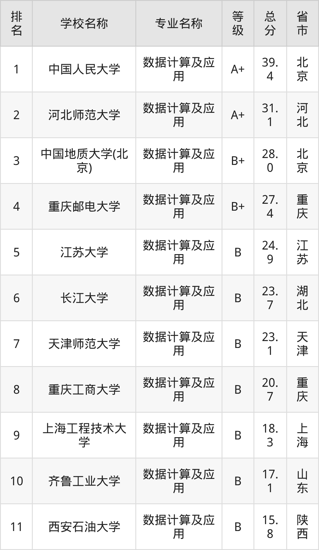 附数据计算及应用专业全国11所院校排名榜单一览表!