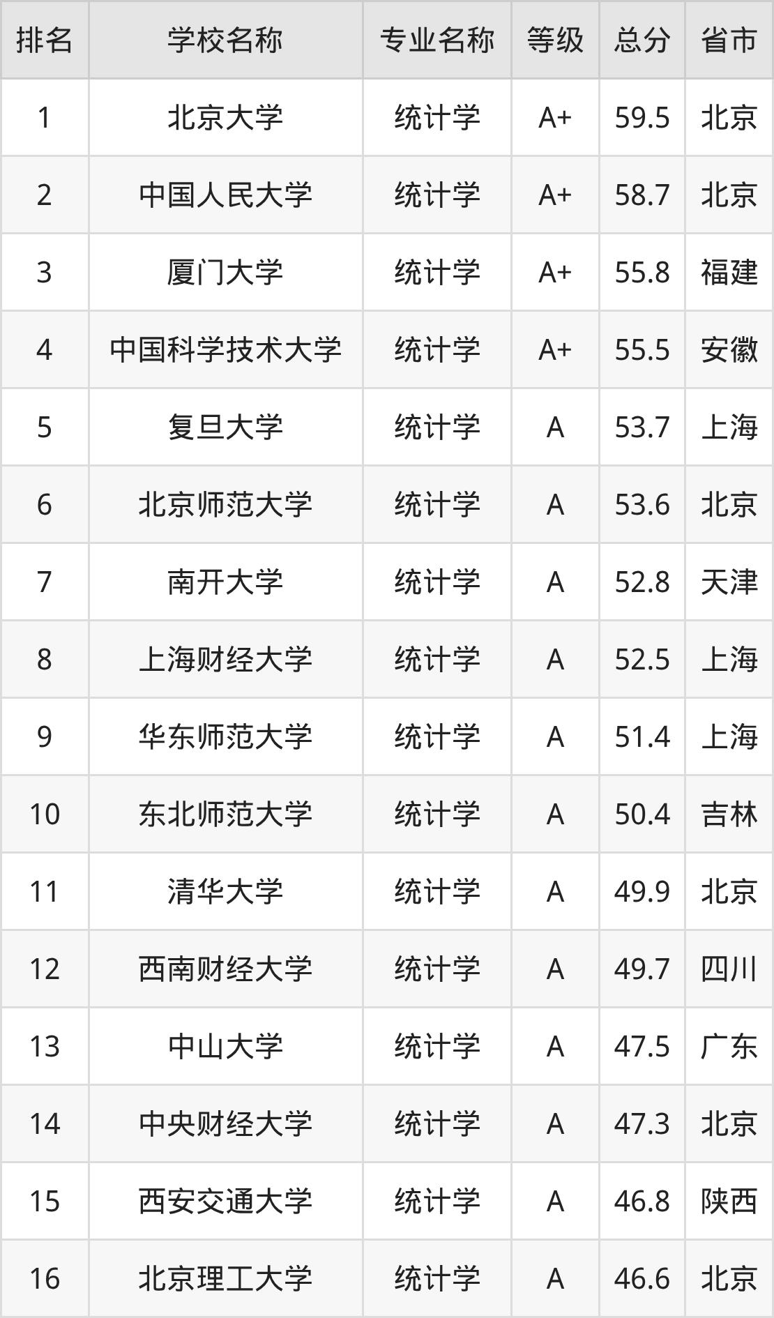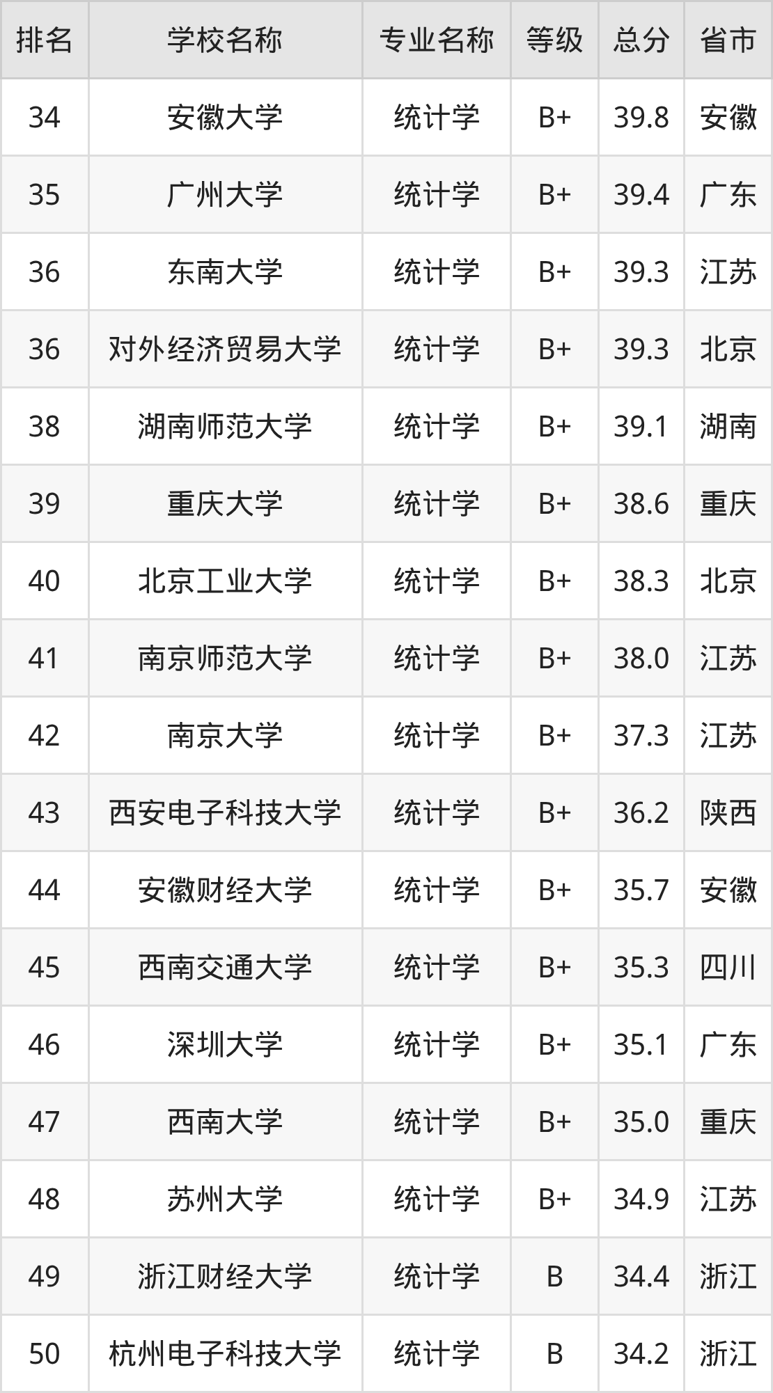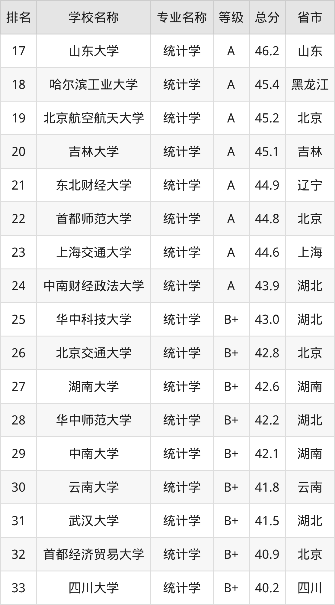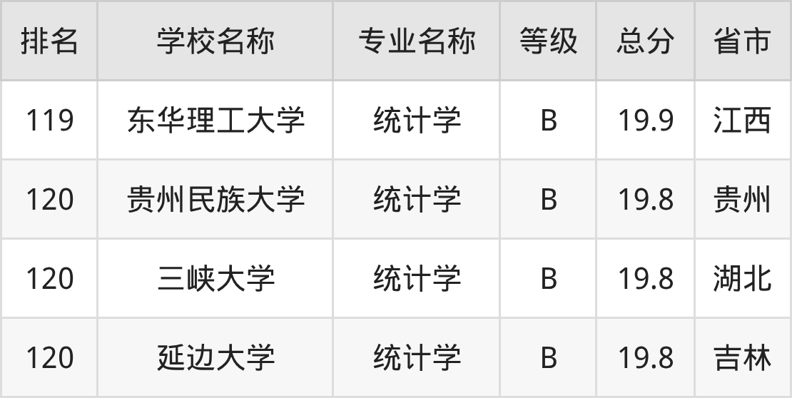 附统计学专业全国122所院校排名榜单一览表!