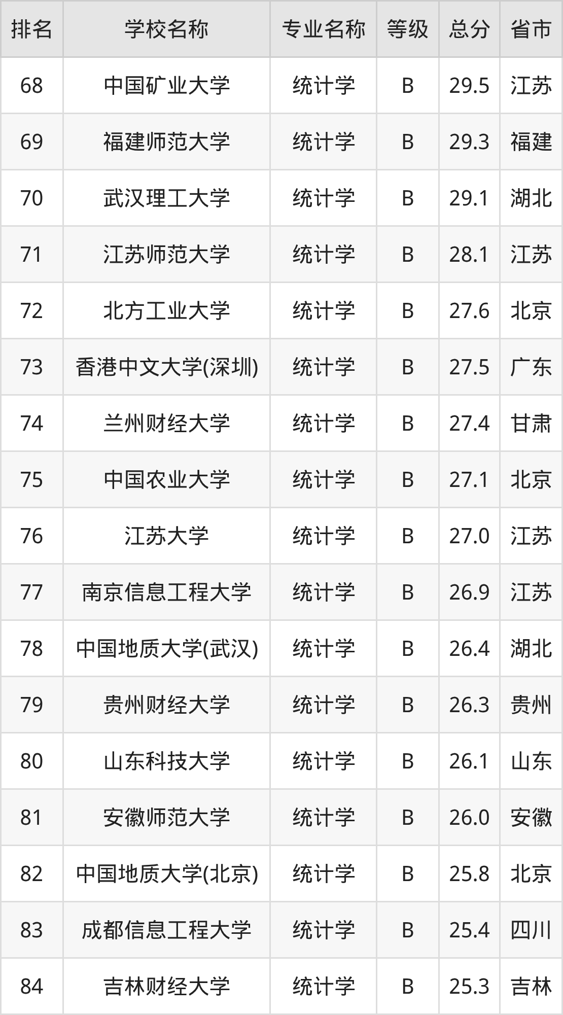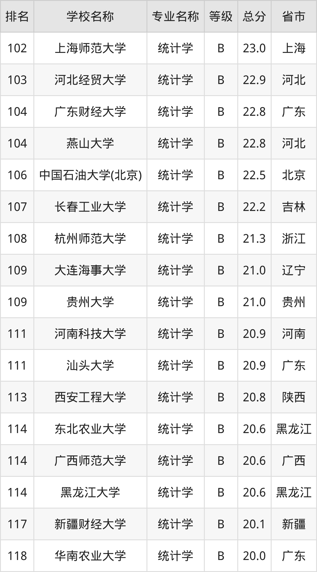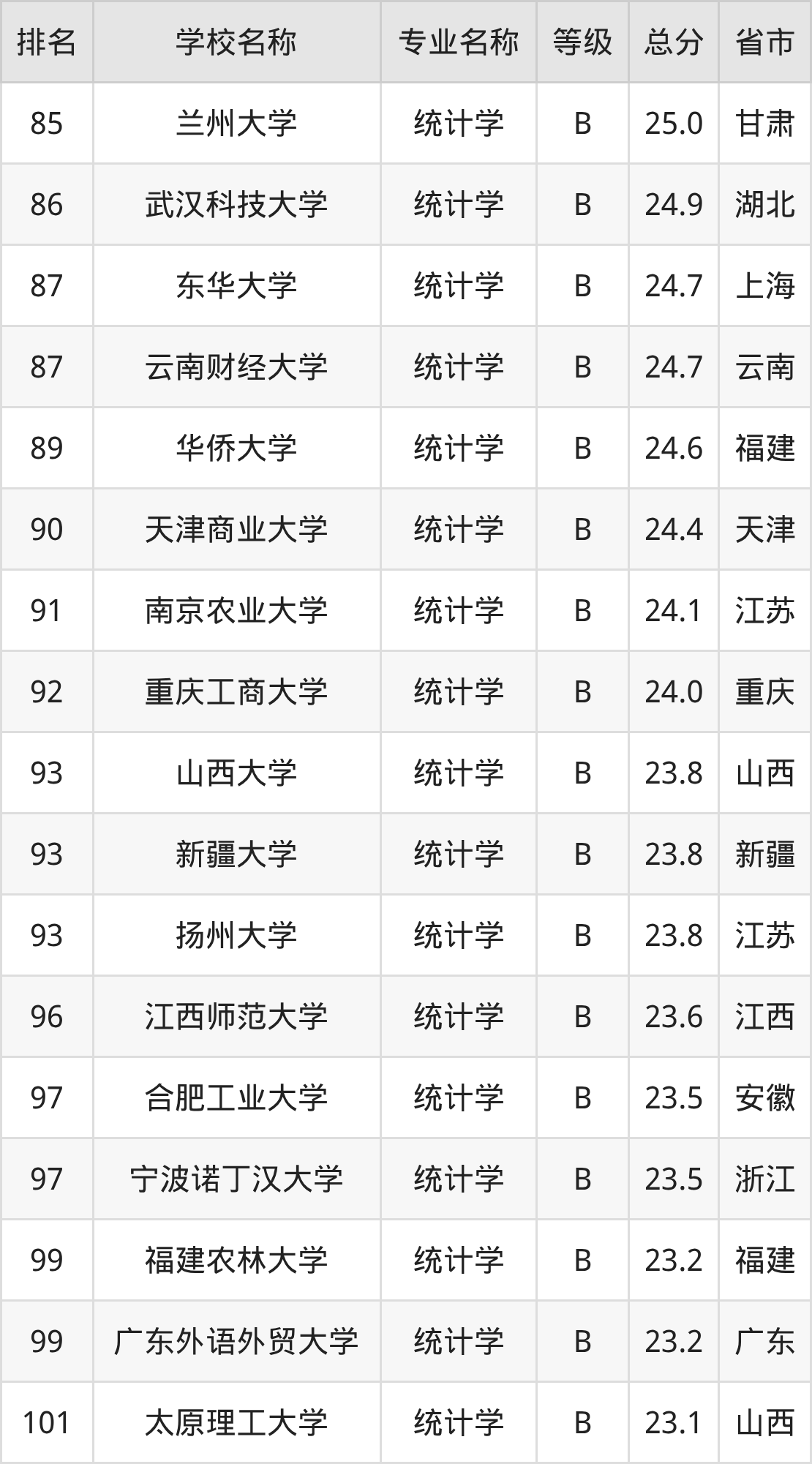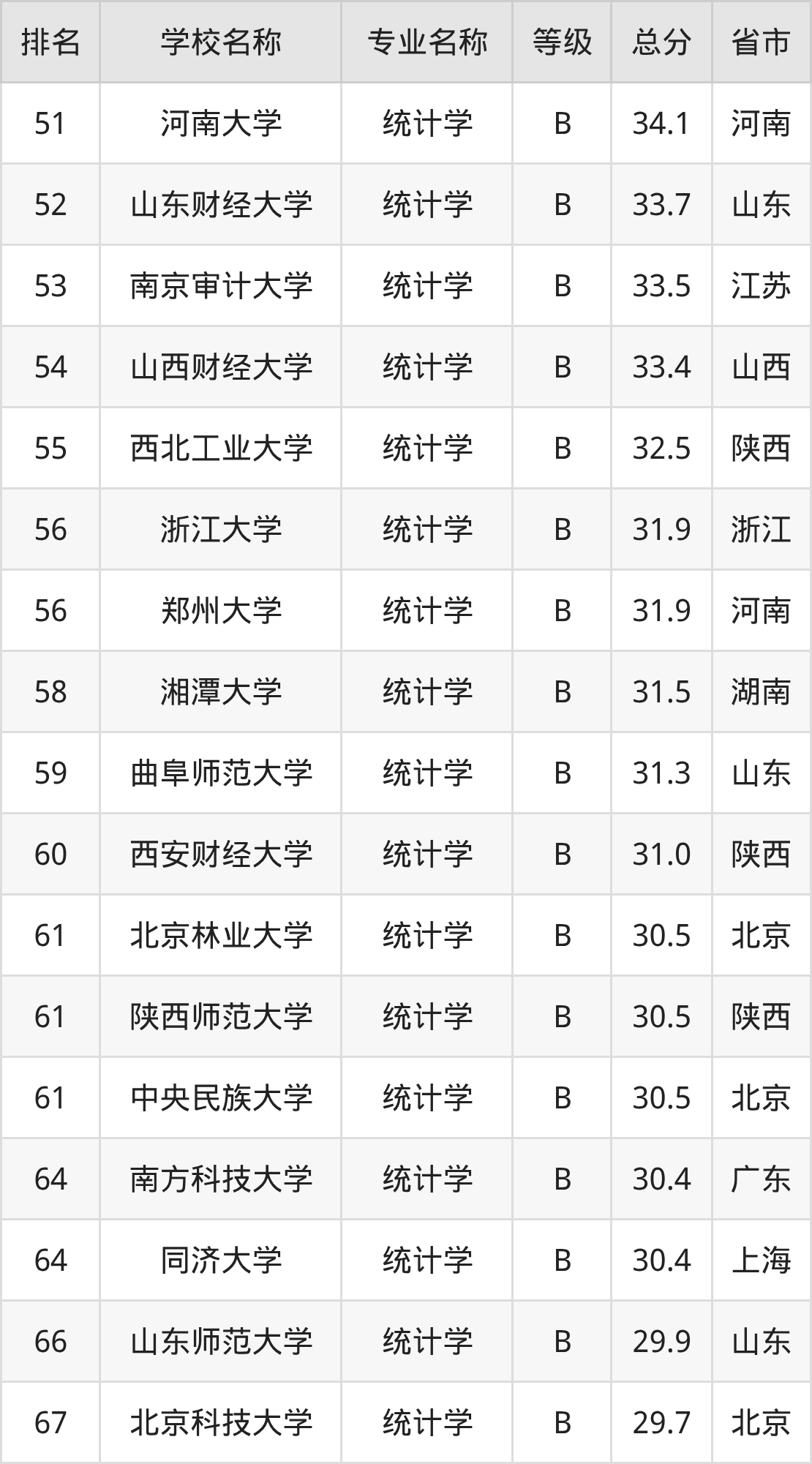 附统计学专业全国122所院校排名榜单一览表!