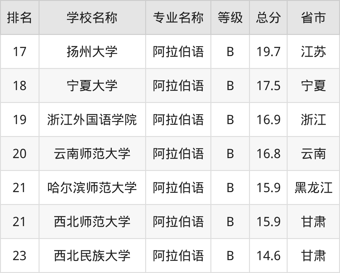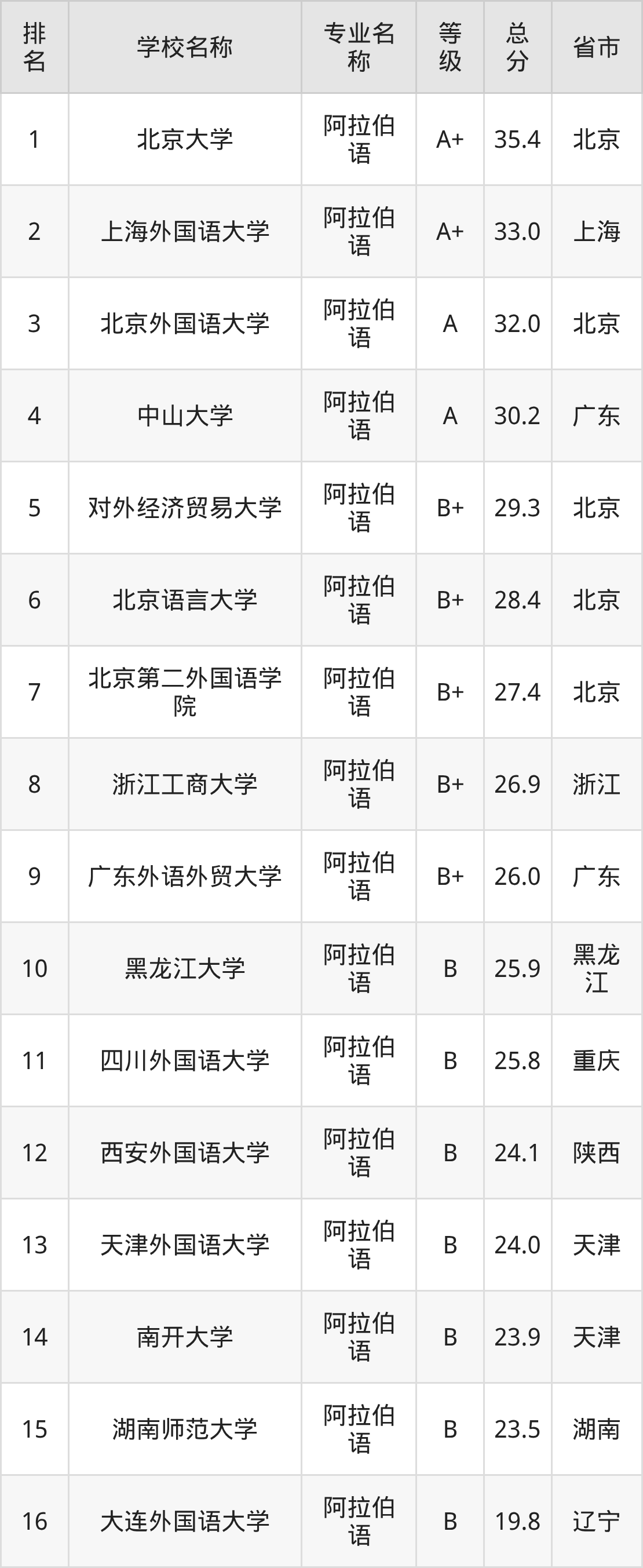 附阿拉伯语专业全国23所院校排名榜单一览表!