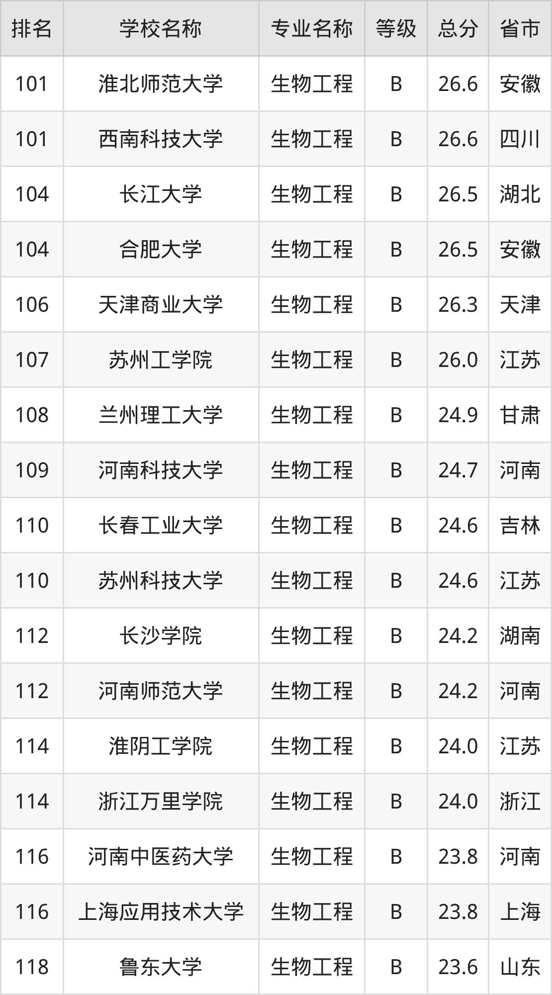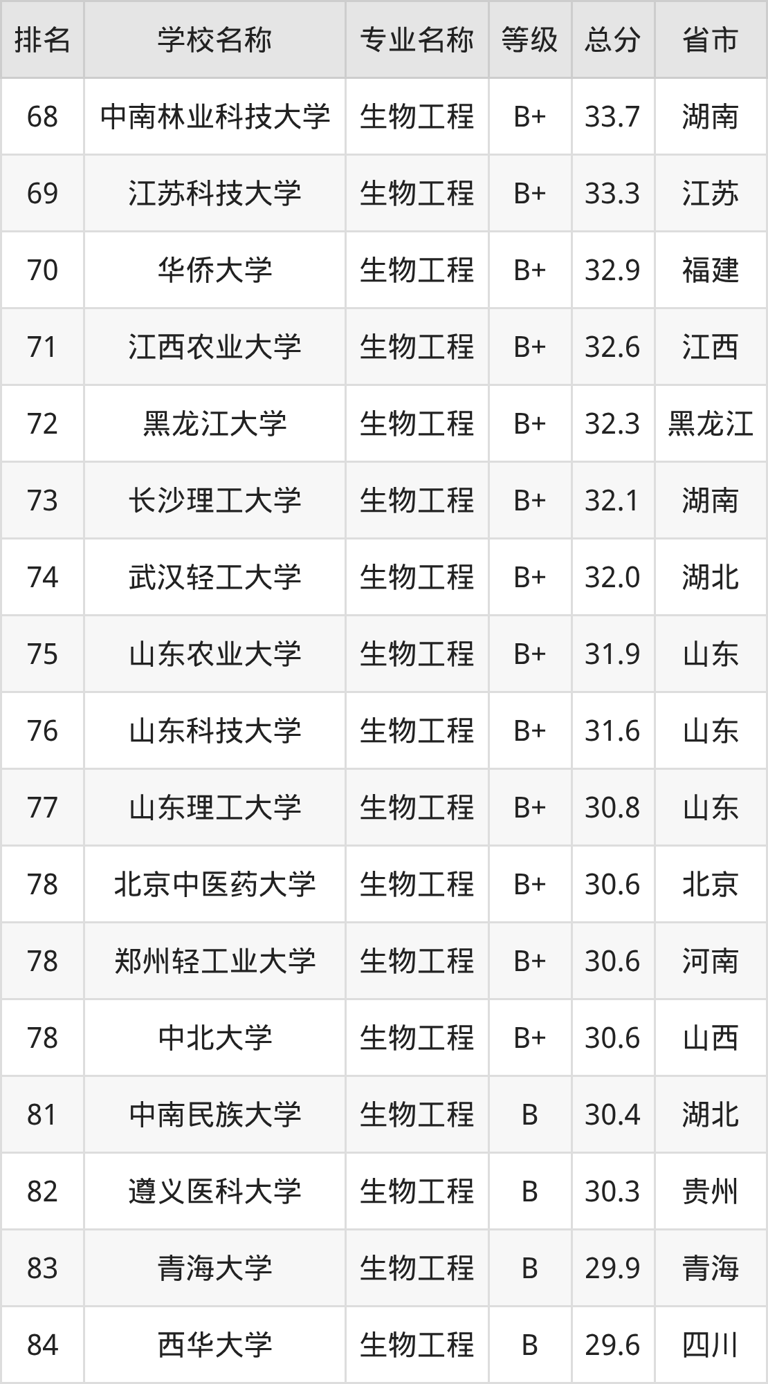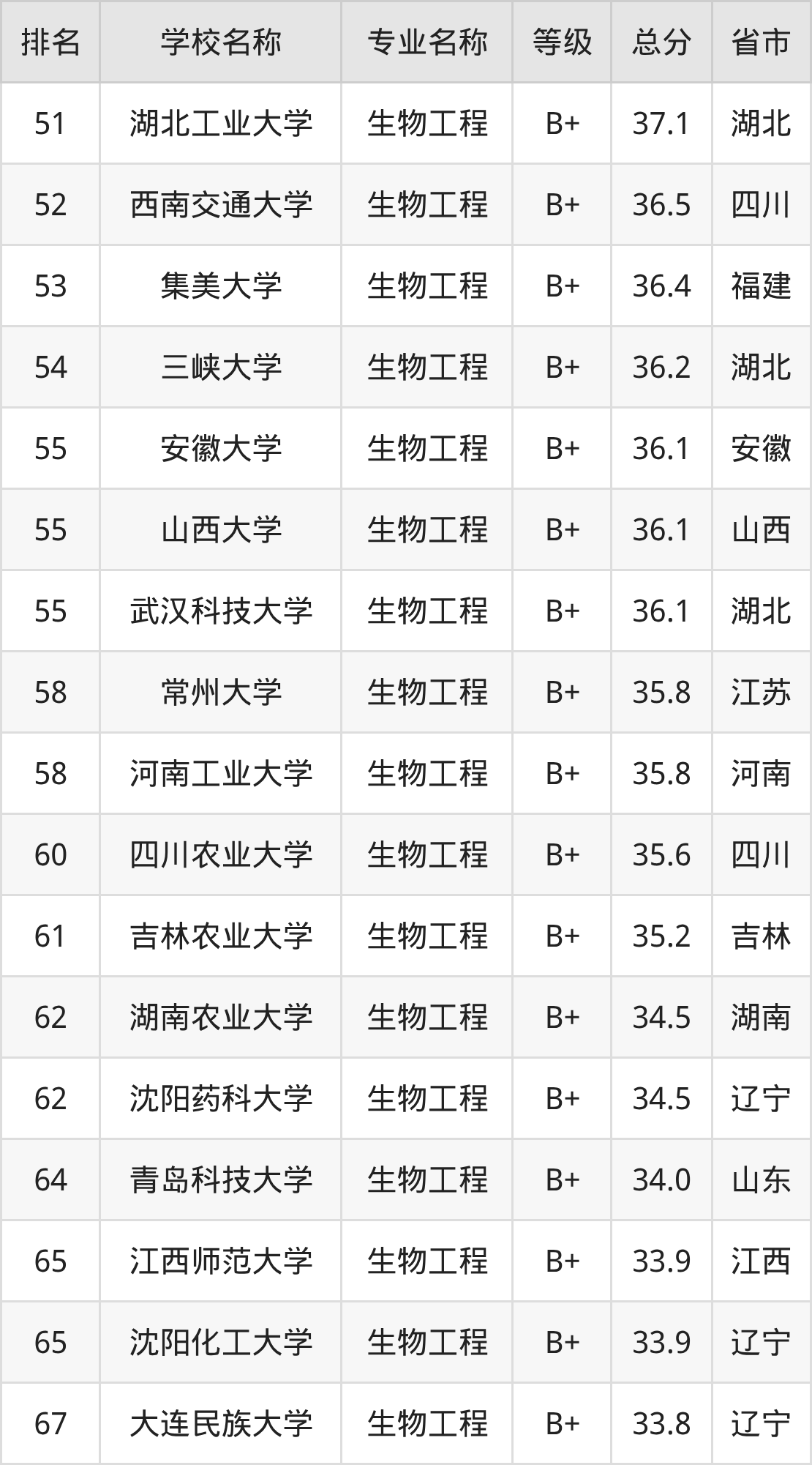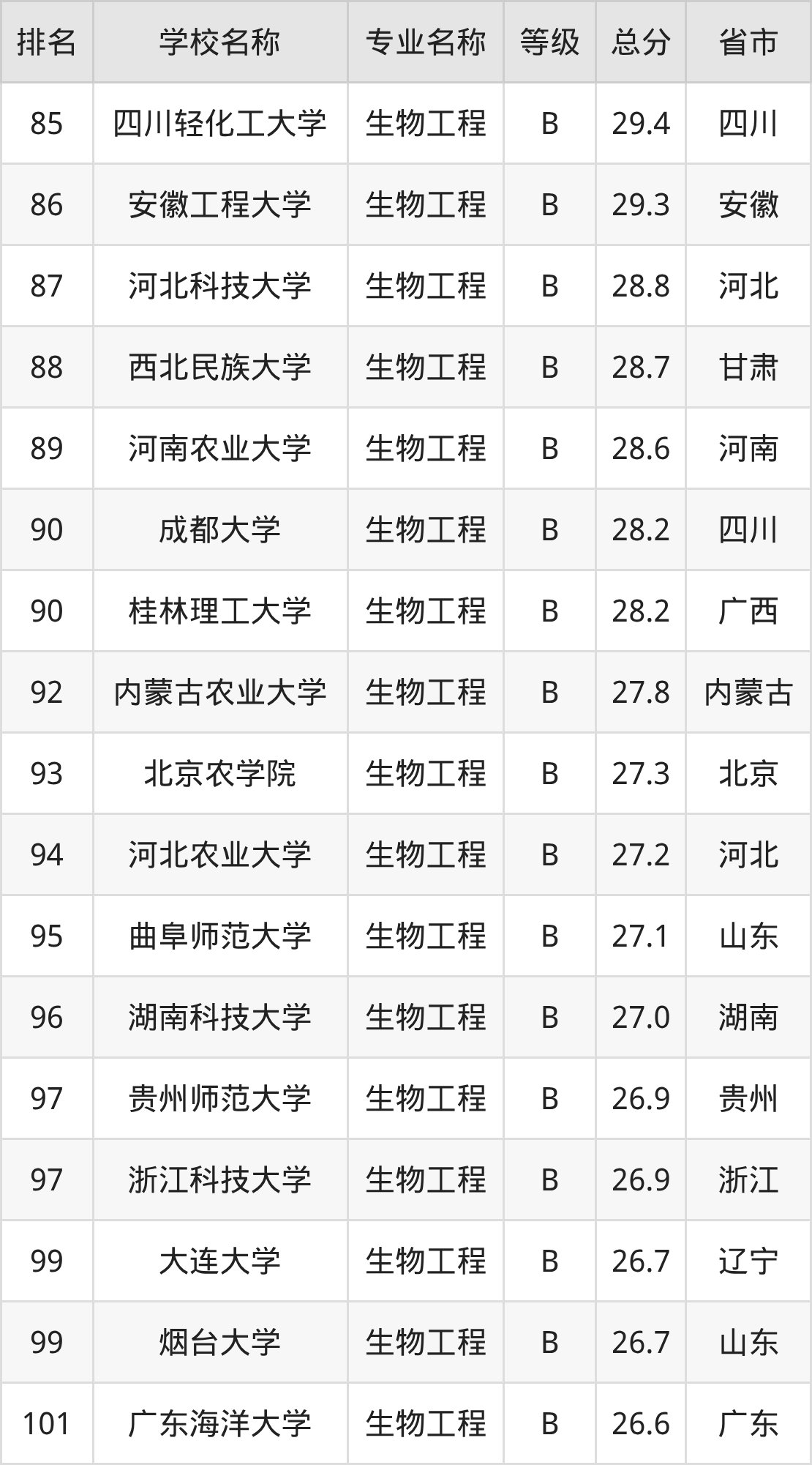 附生物工程专业全国135所院校排名榜单一览表!