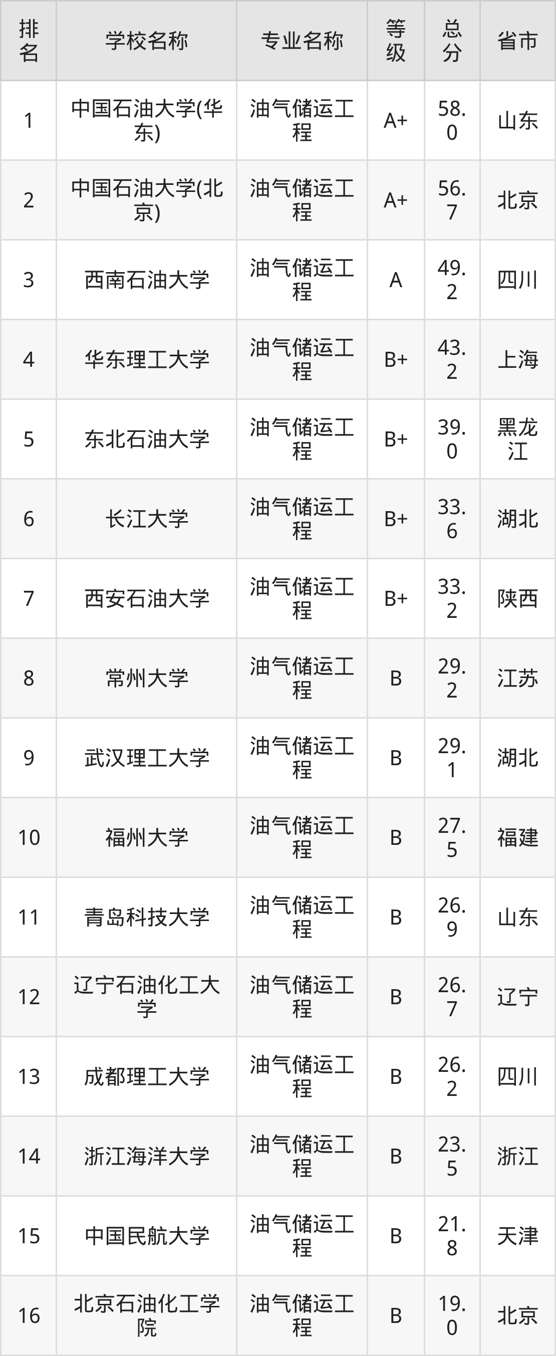 附油气储运工程专业全国19所院校排名榜单一览表!
