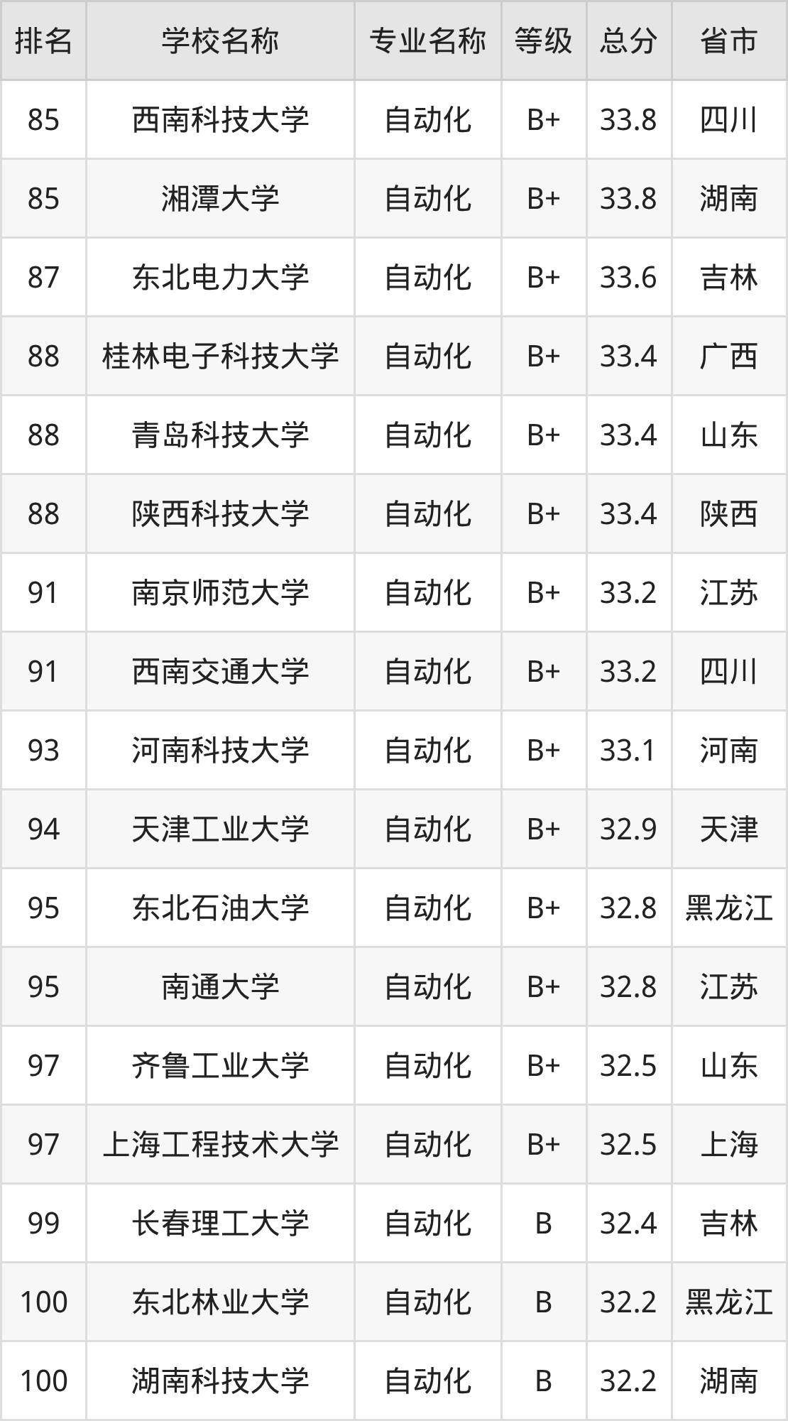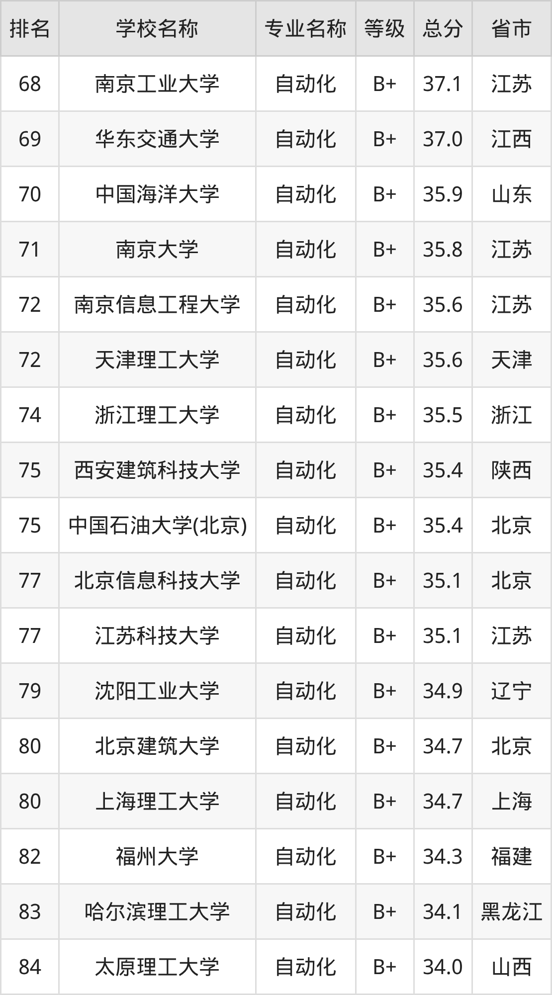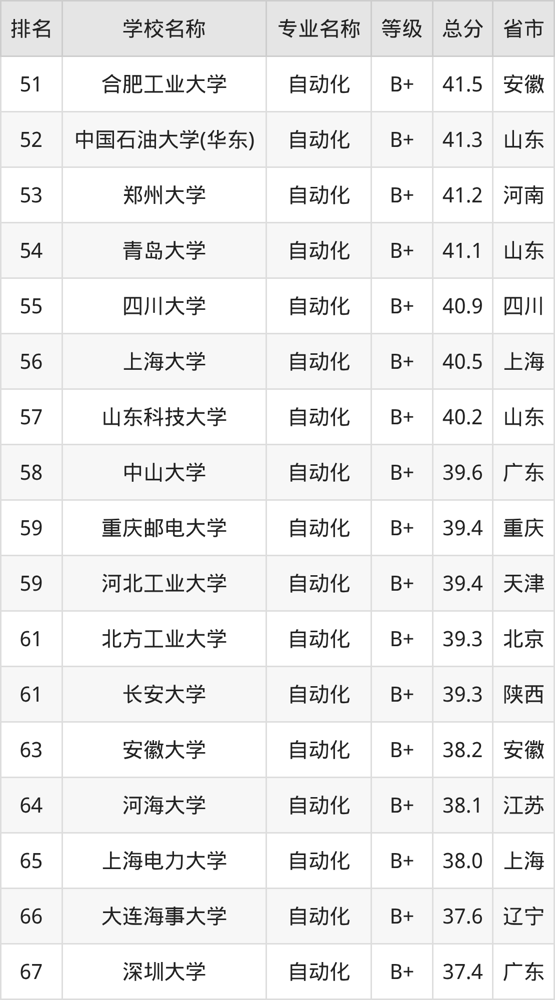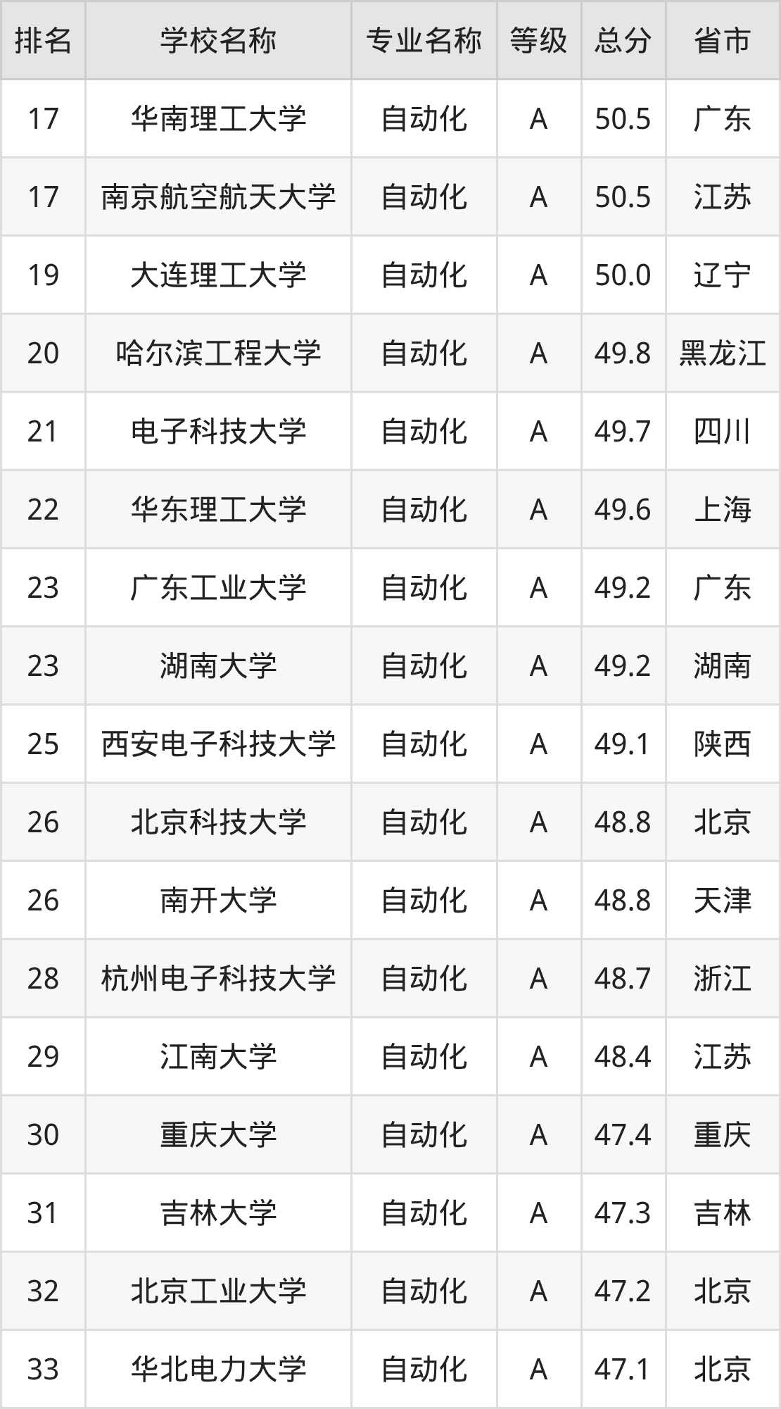 根据软科榜单可知,自动化专业全国排名前十的大学分别是: