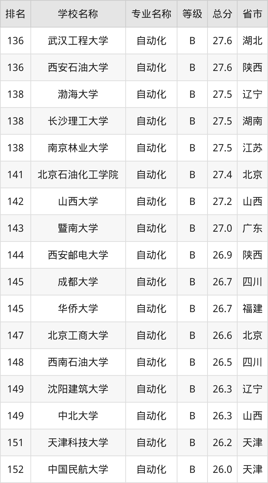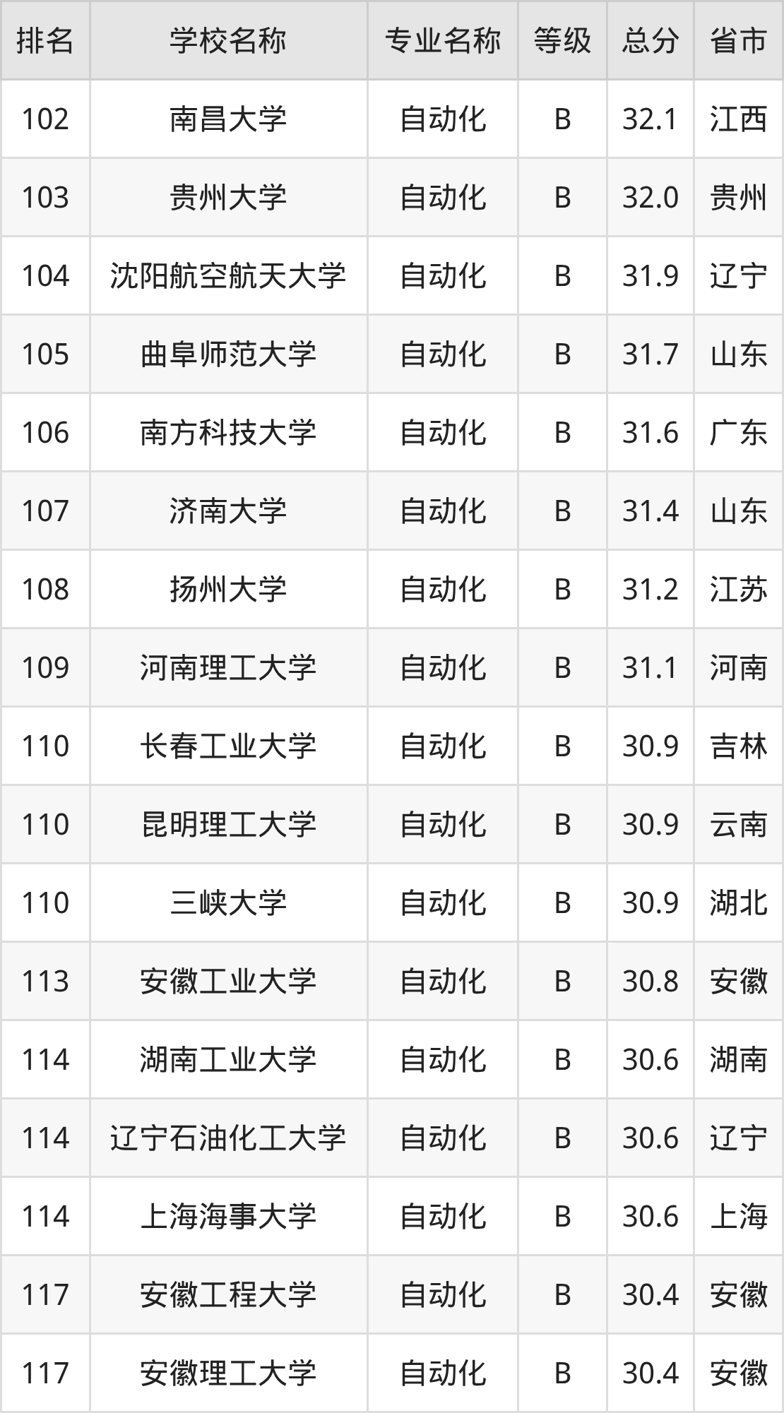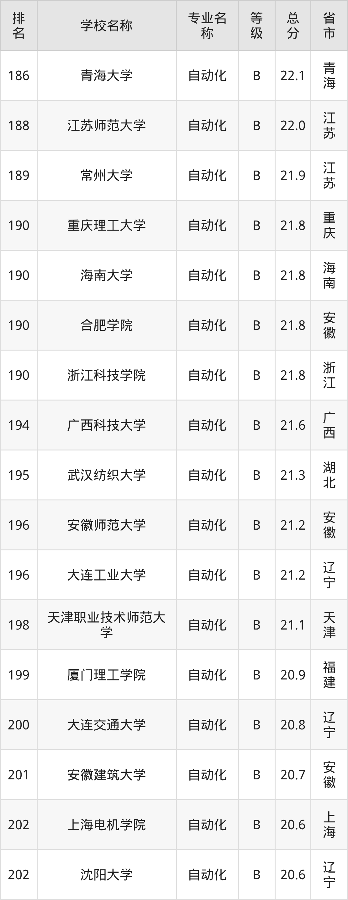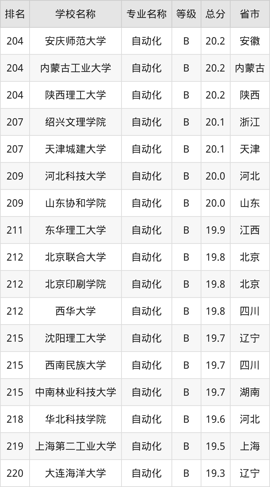 根据软科榜单可知,自动化专业全国排名前十的大学分别是: