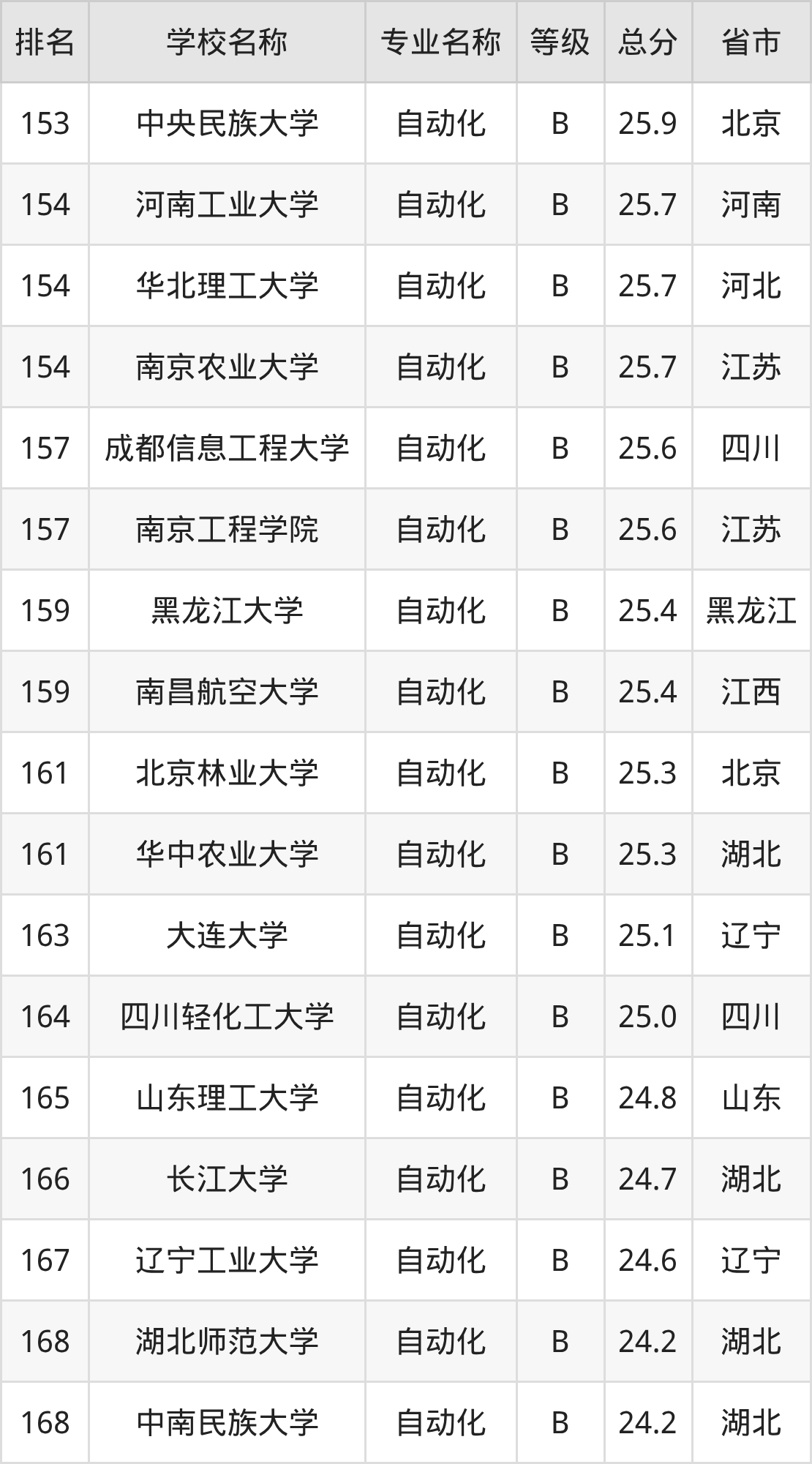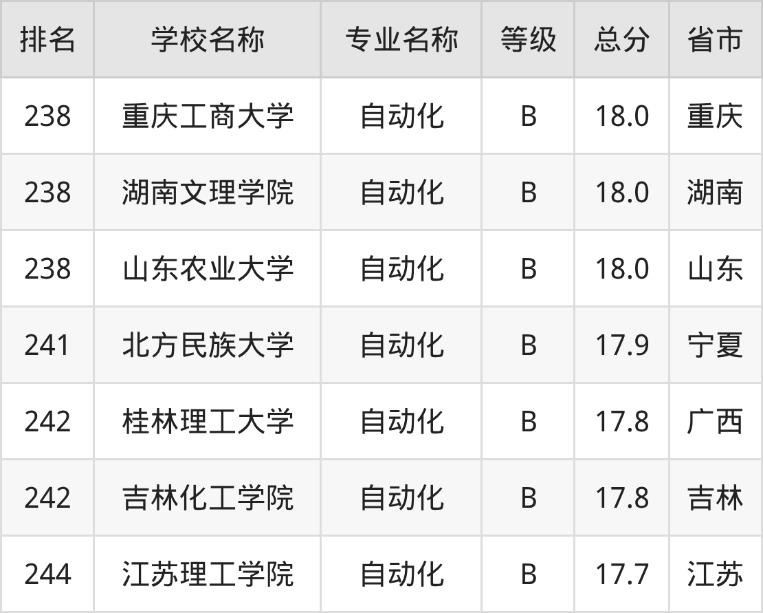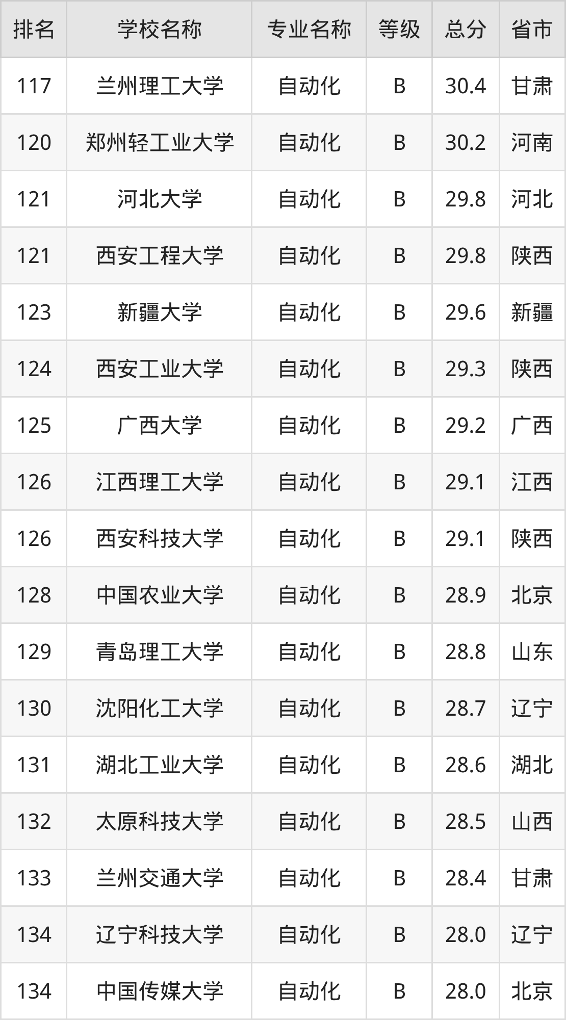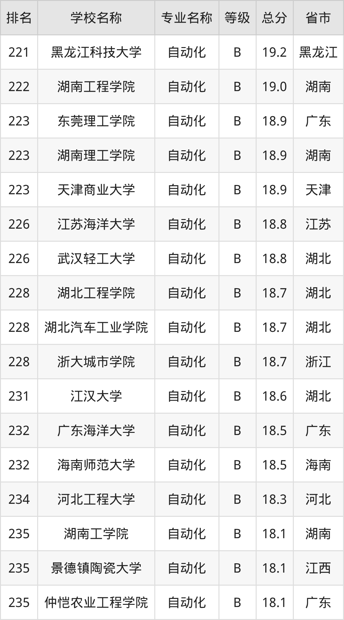 根据软科榜单可知,自动化专业全国排名前十的大学分别是: