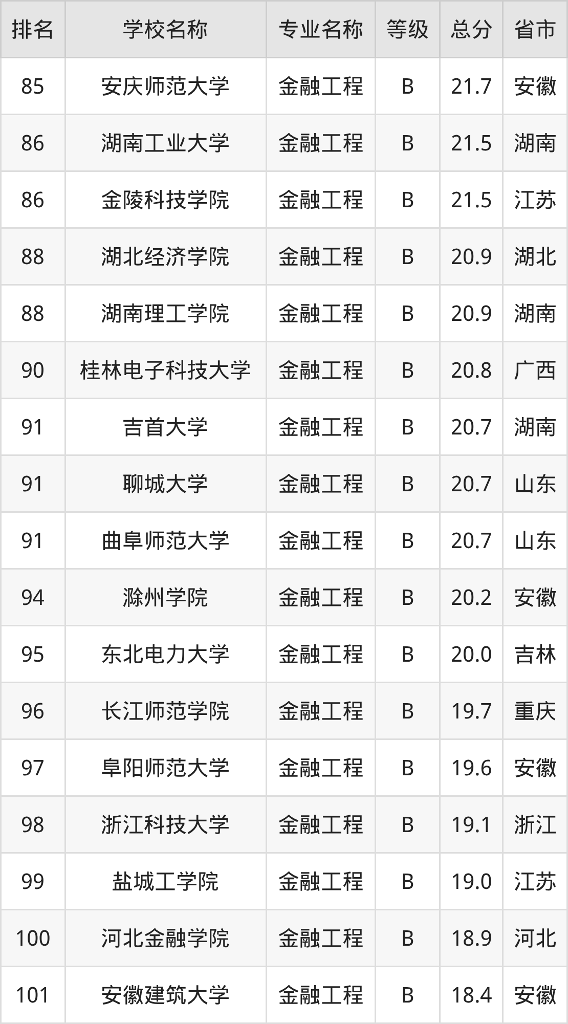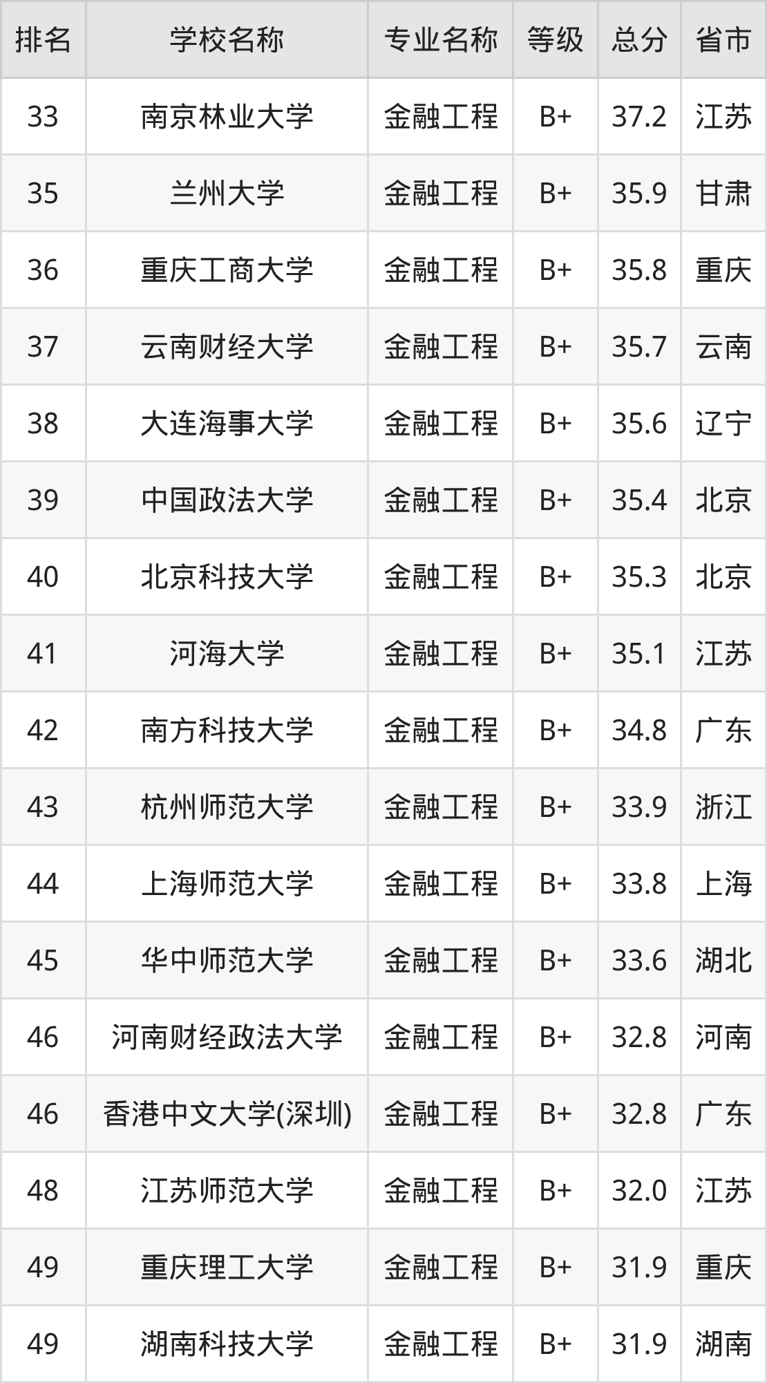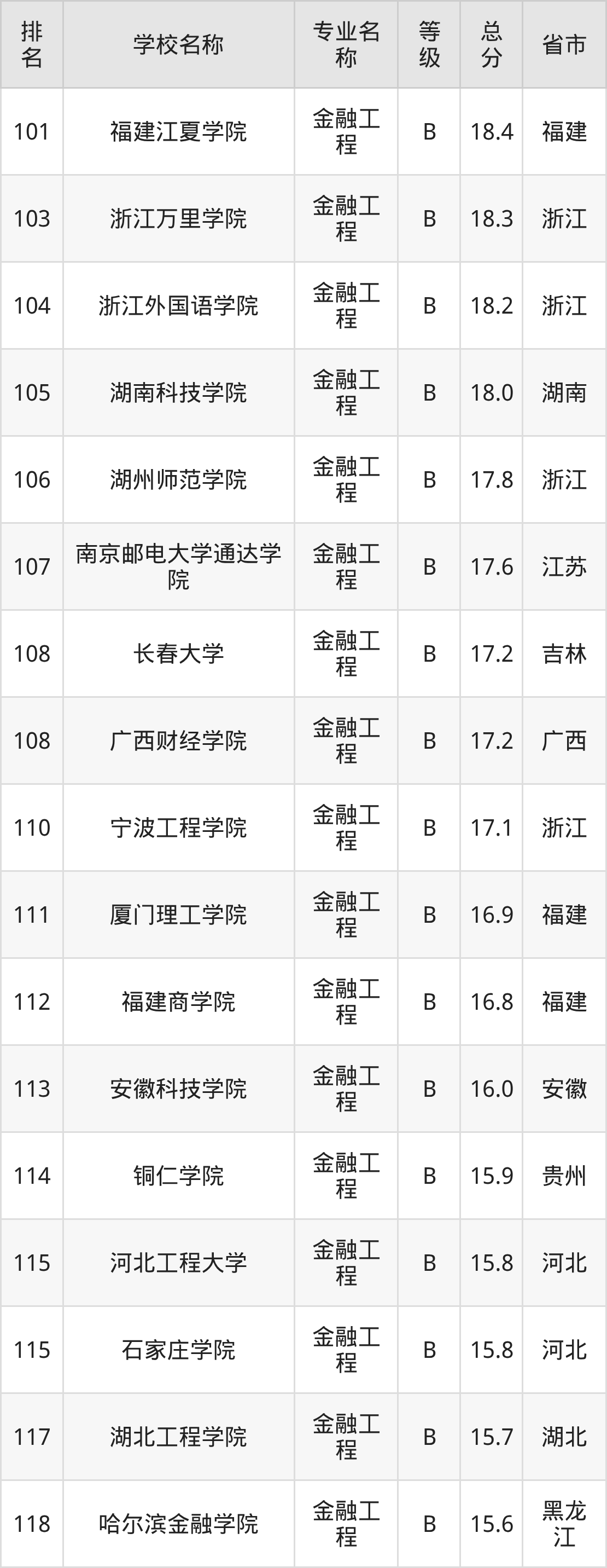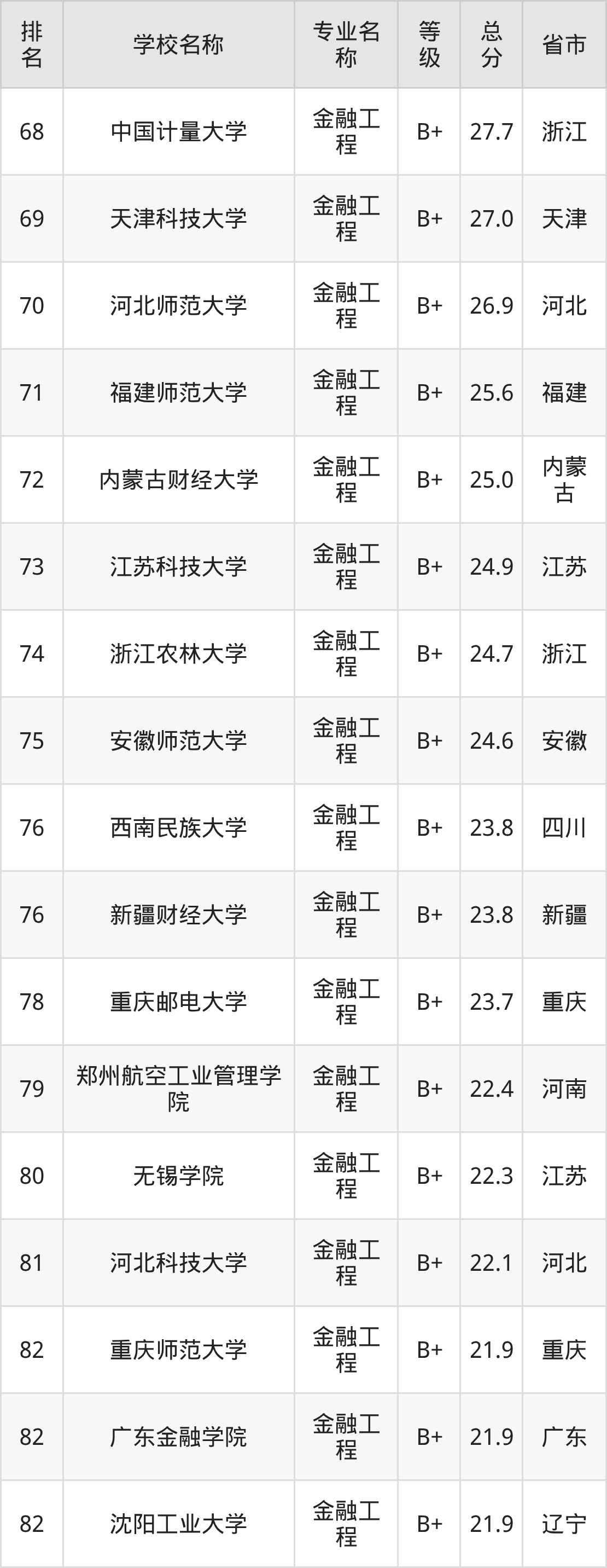 附金融工程专业全国140所院校排名榜单一览表!