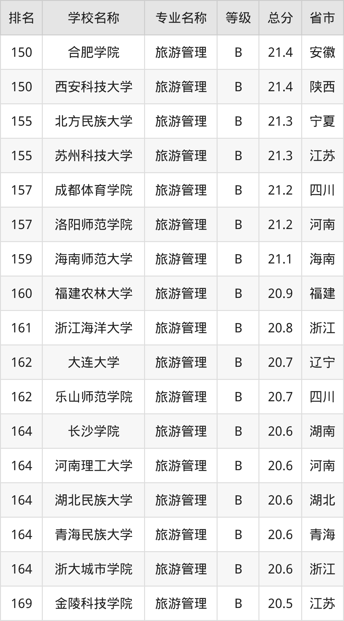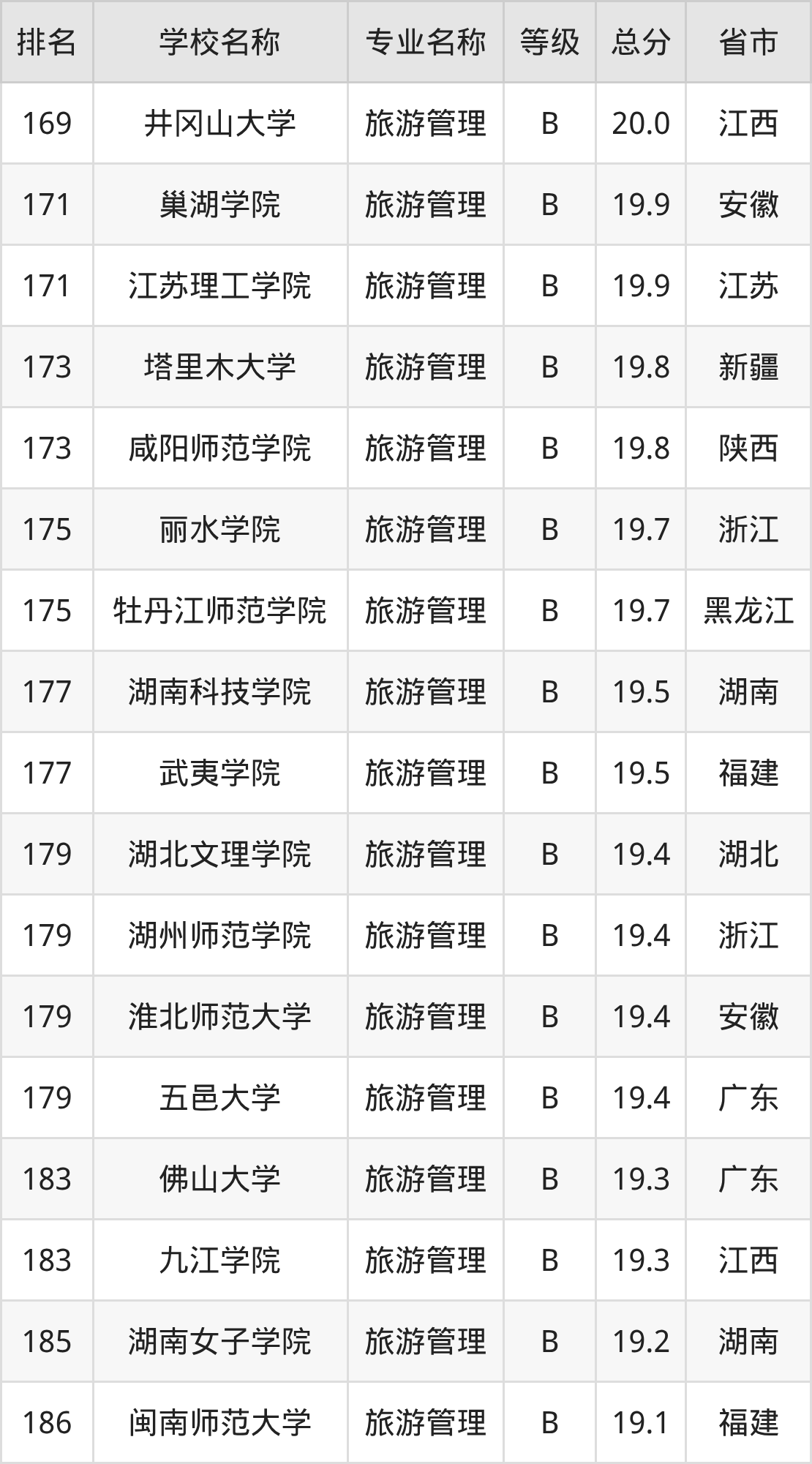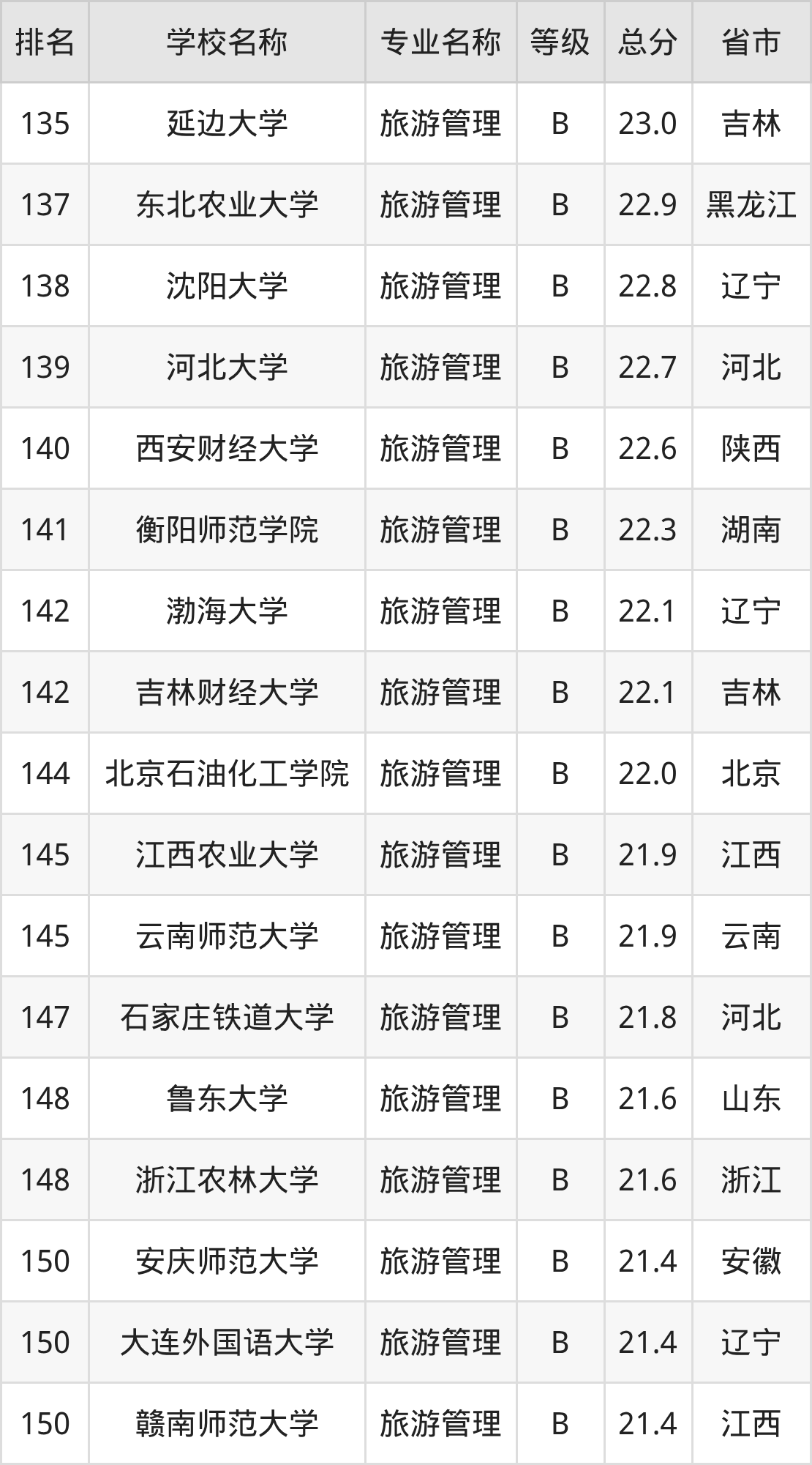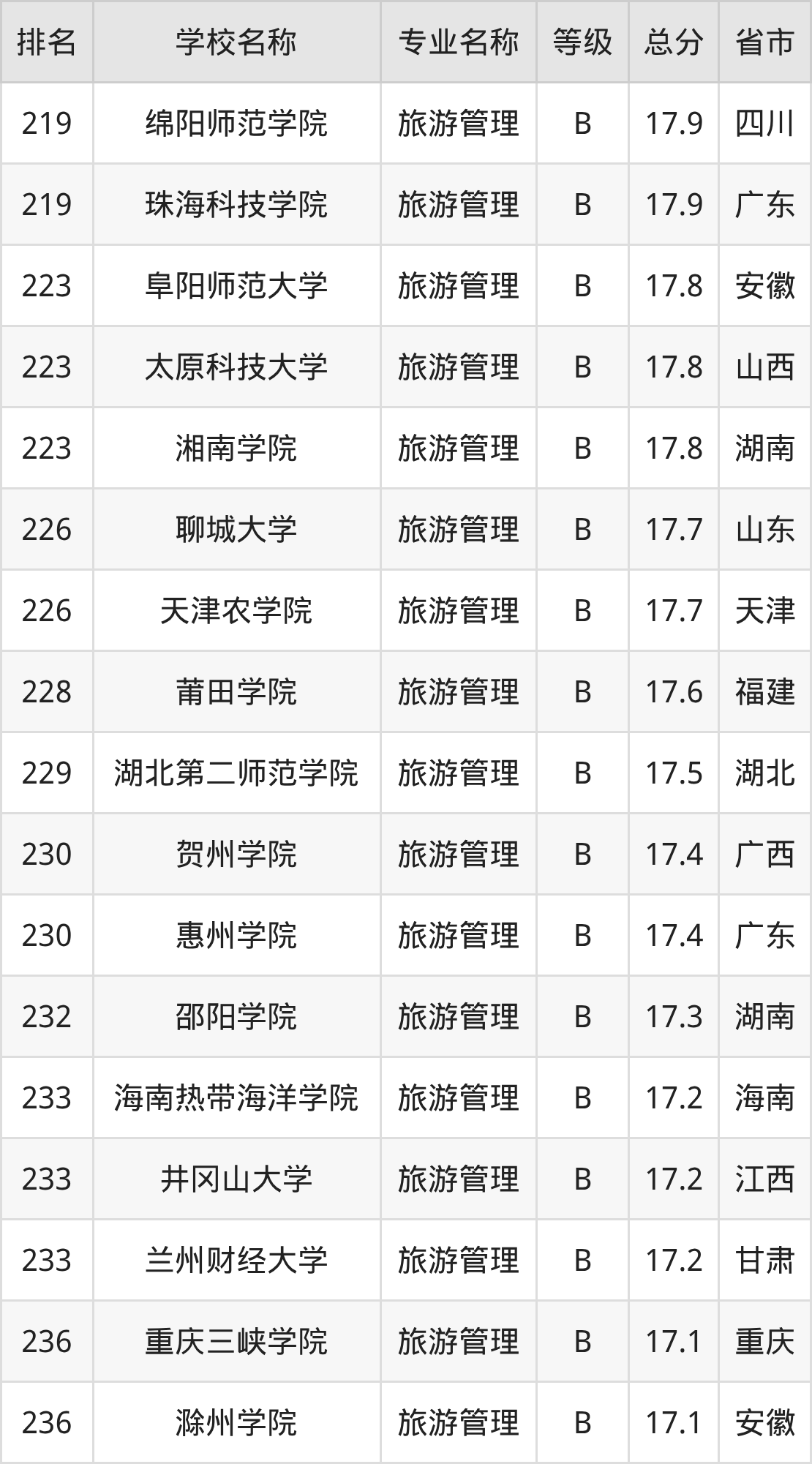 根据软科榜单可知,旅游管理专业全国排名前十的大学分别是: