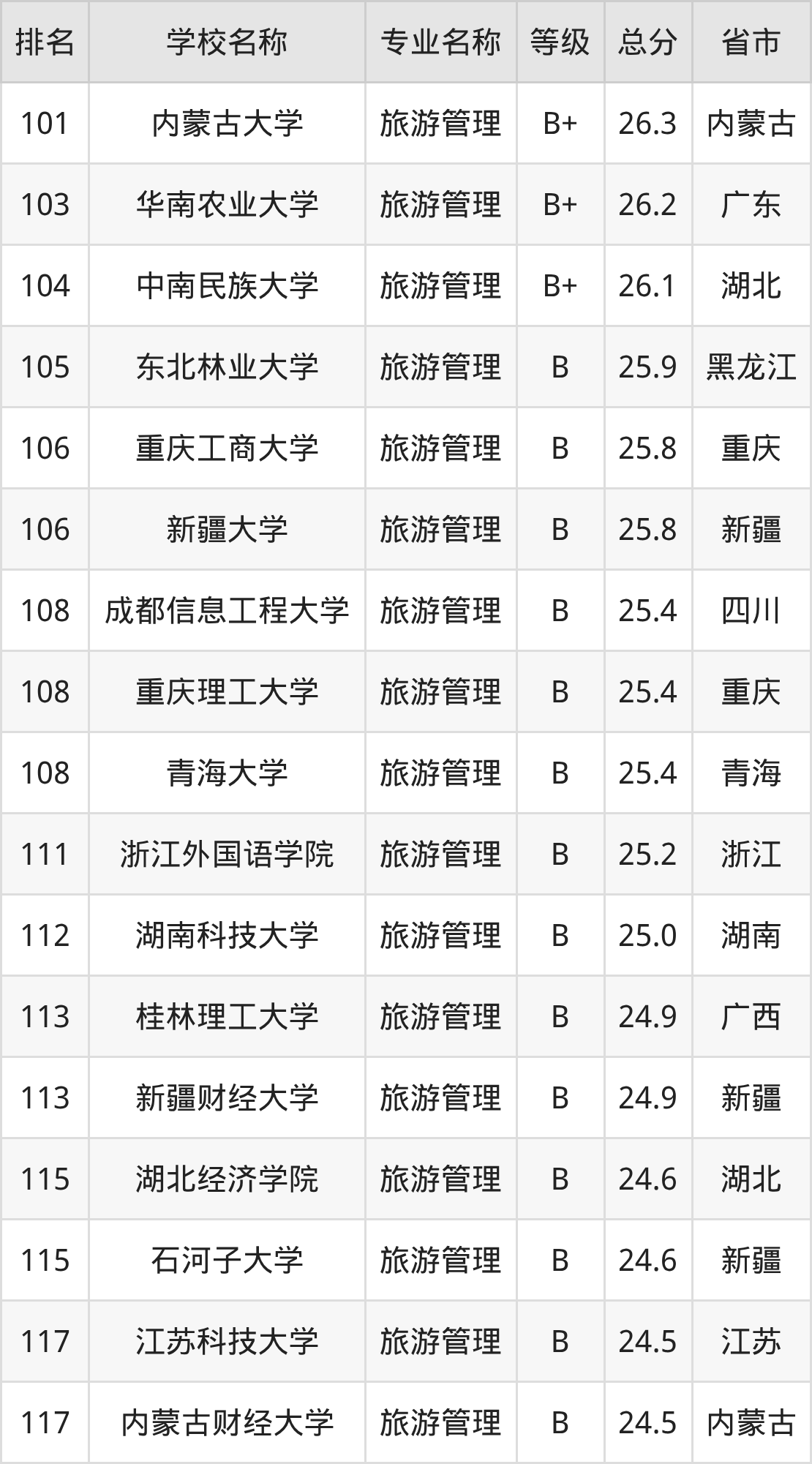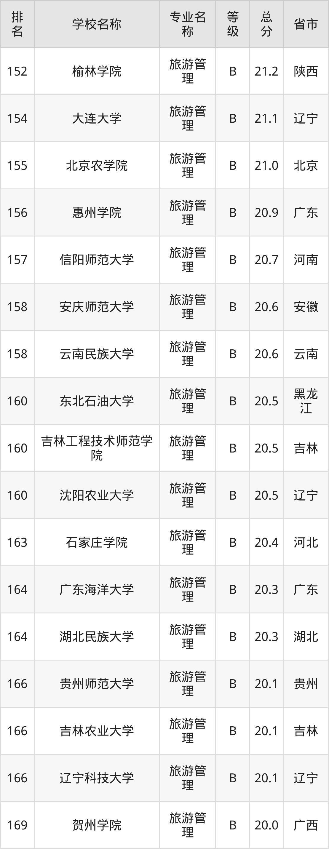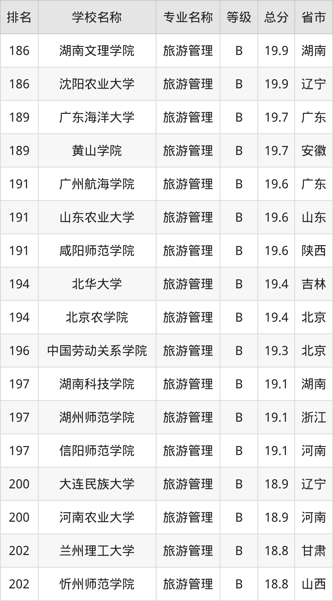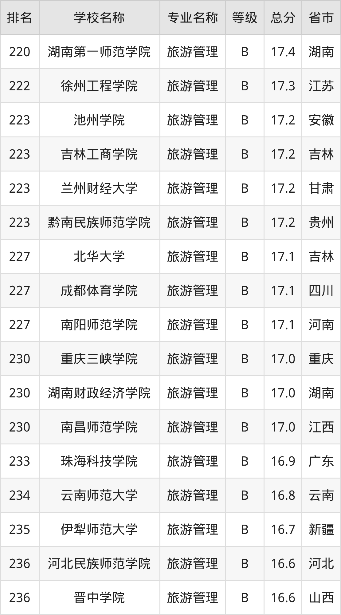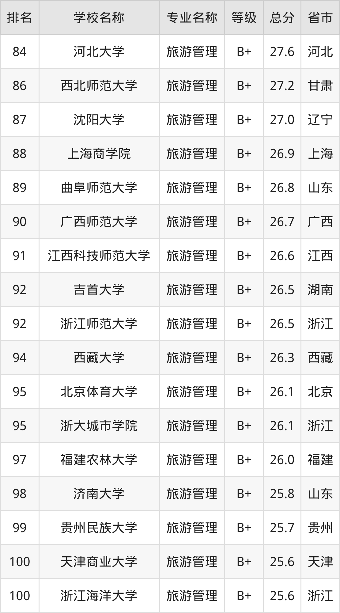 根据软科榜单可知,旅游管理专业全国排名前十的大学分别是: