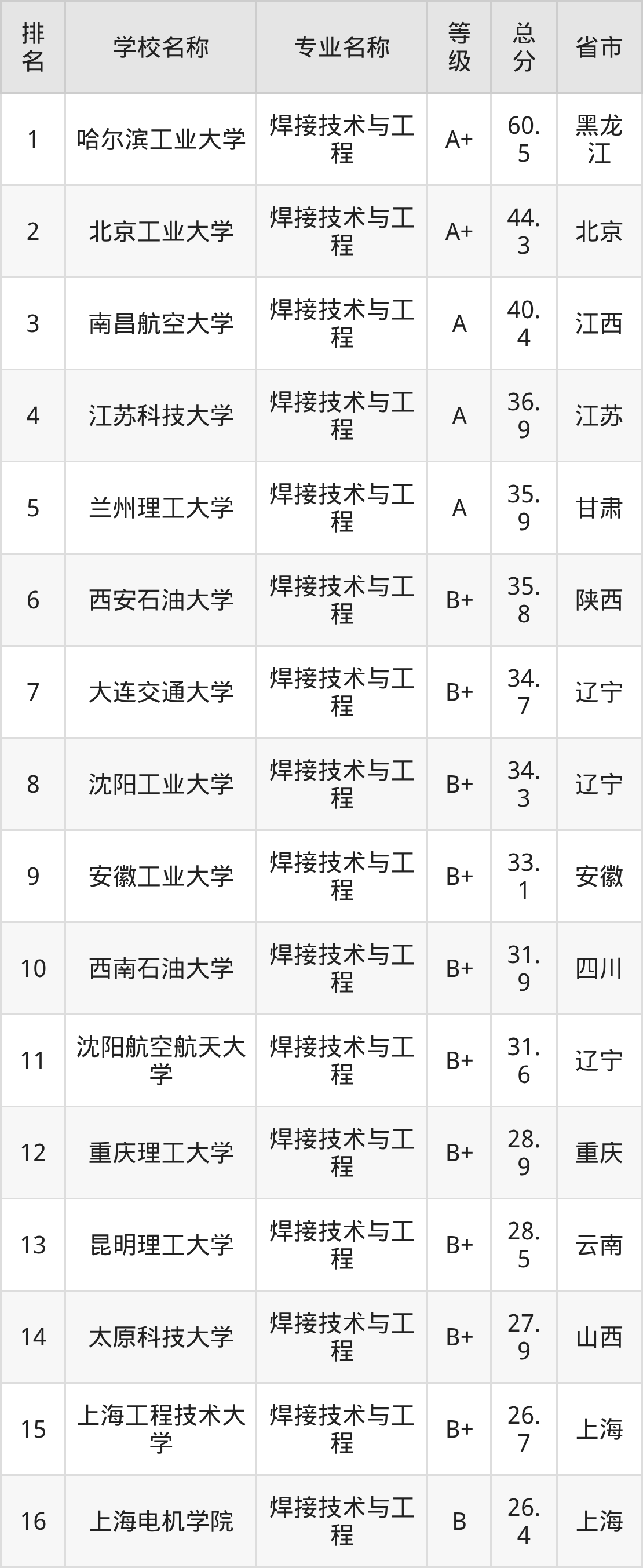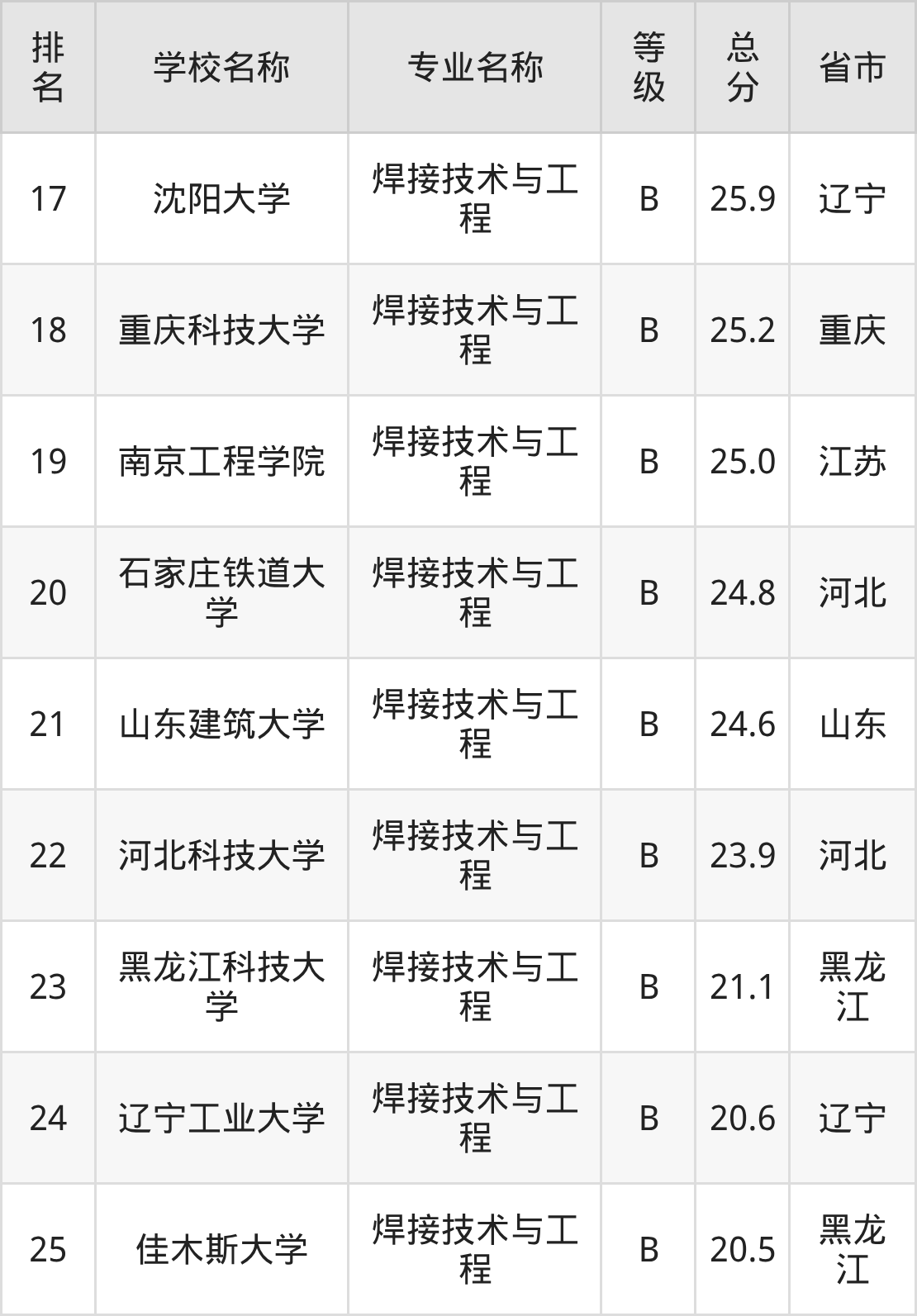 附焊接技术与工程专业全国25所院校排名榜单一览表!