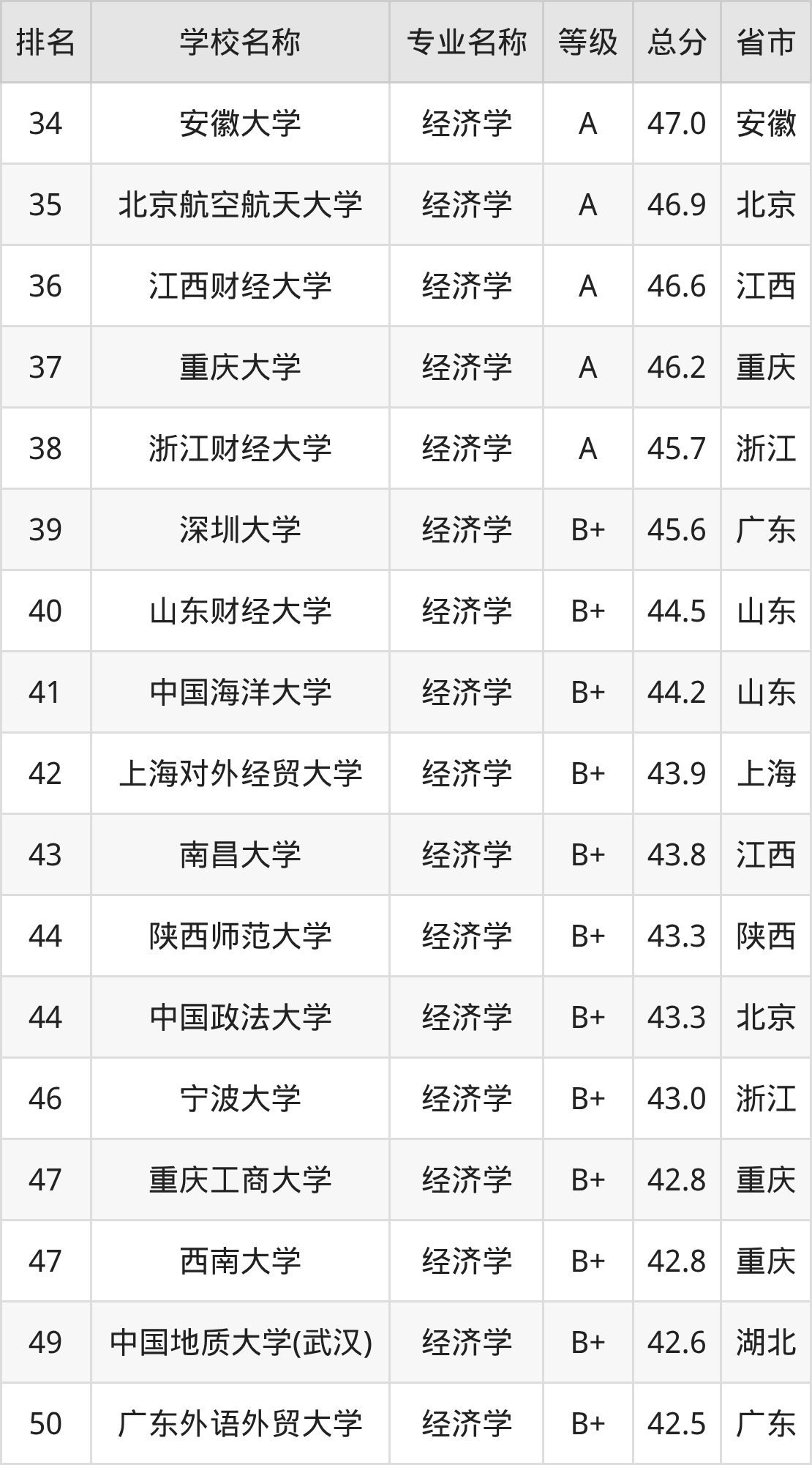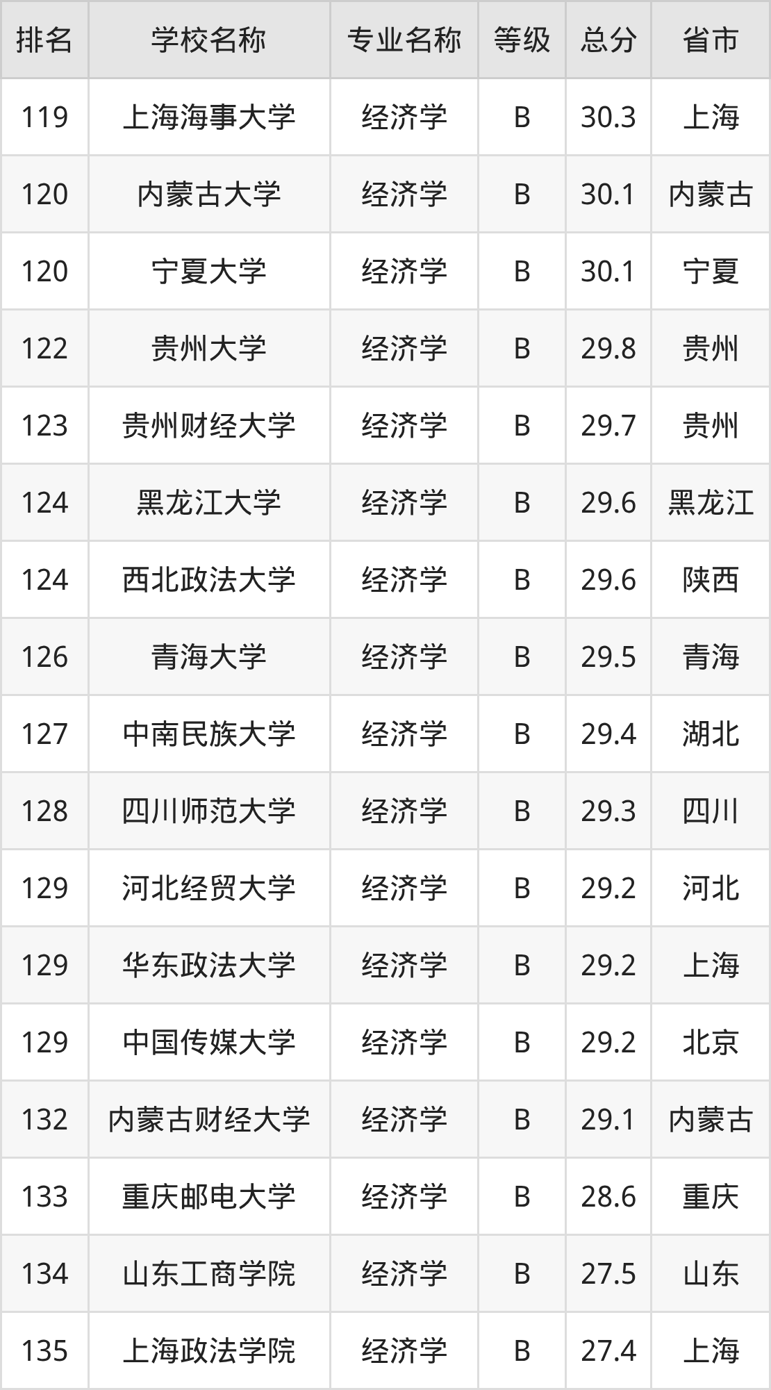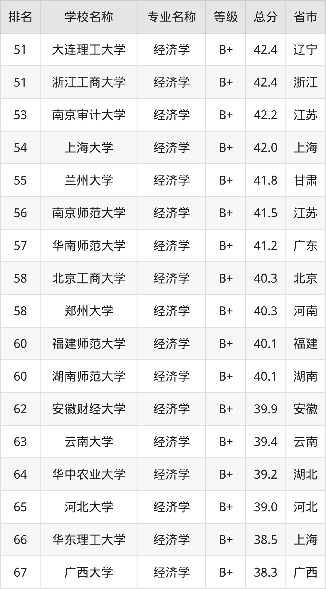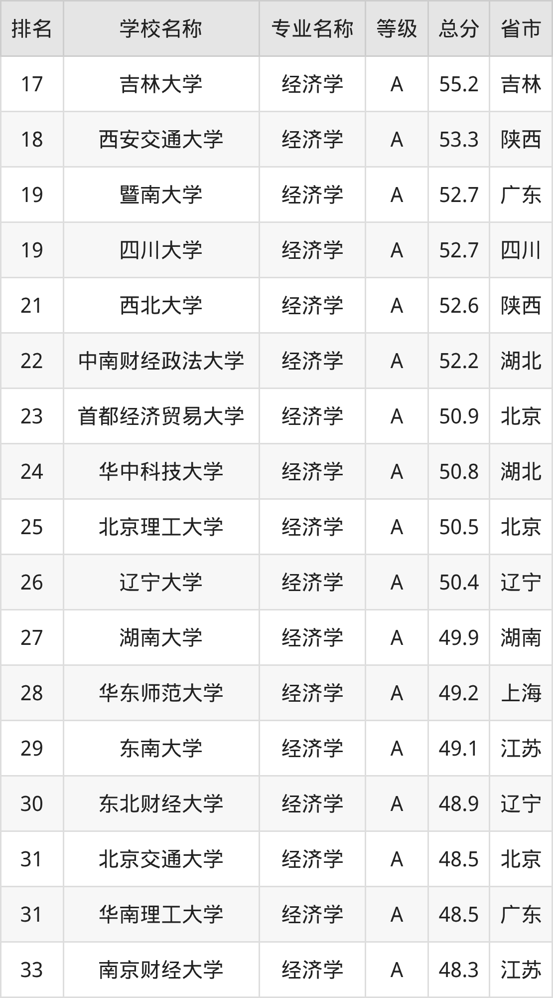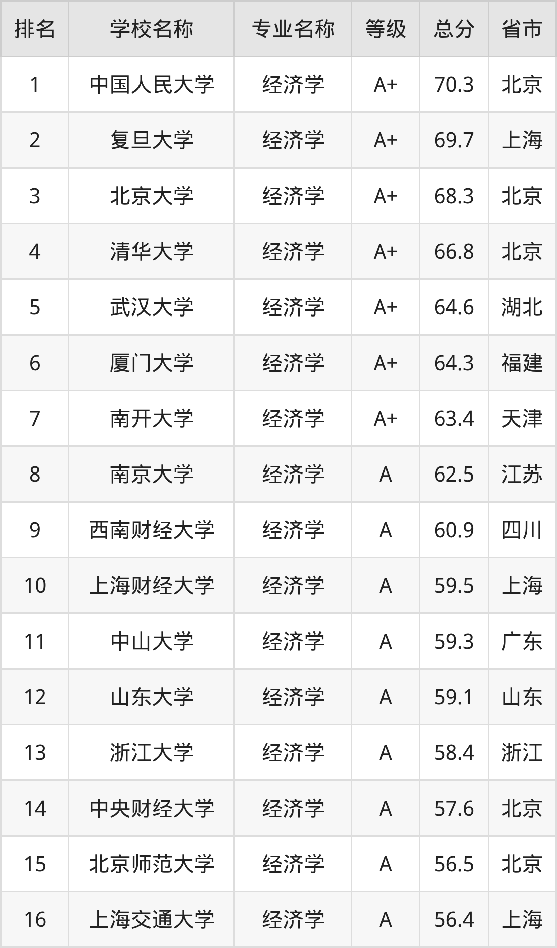 根据软科榜单可知,经济学专业全国排名前十的大学分别是: