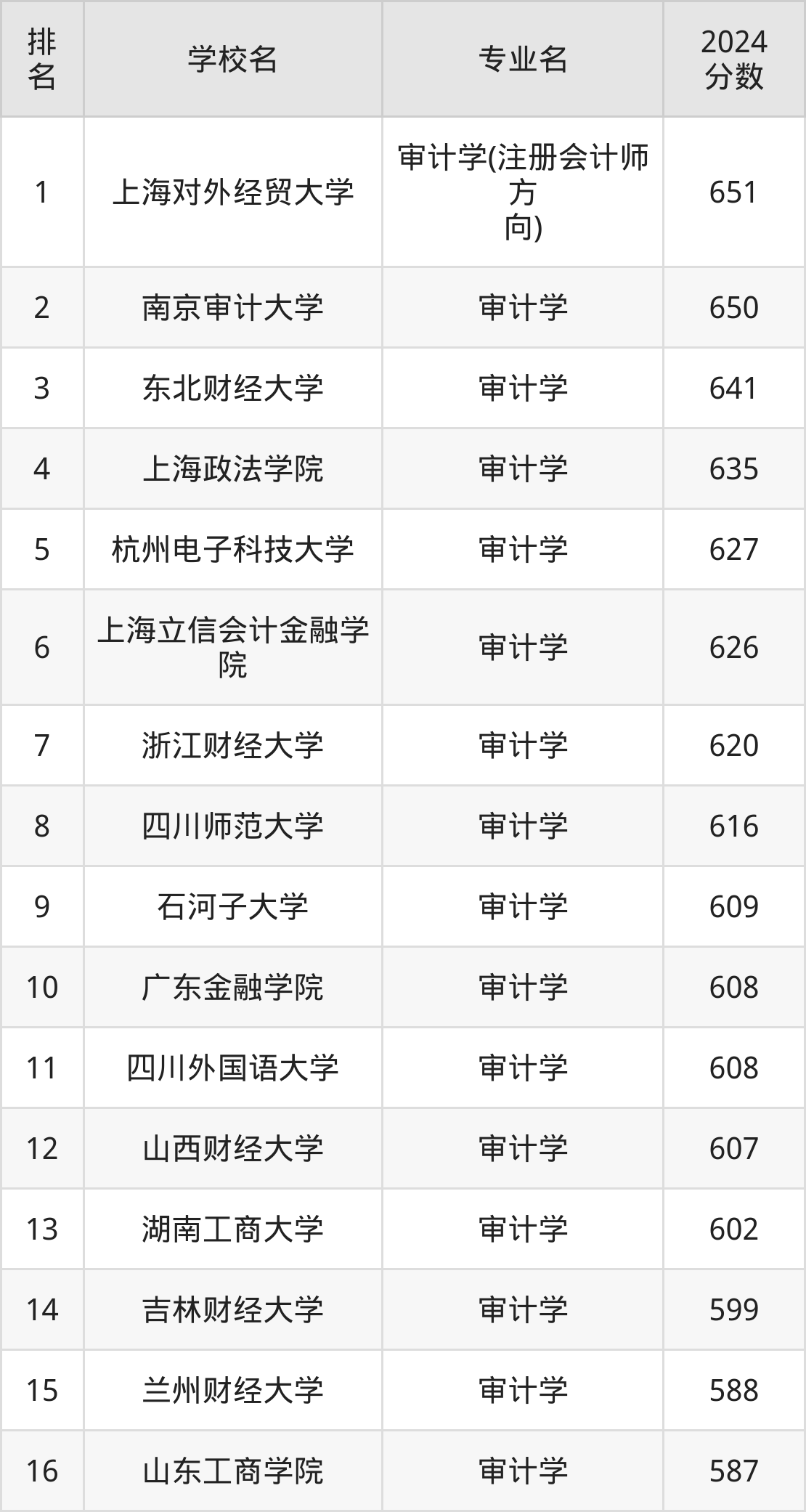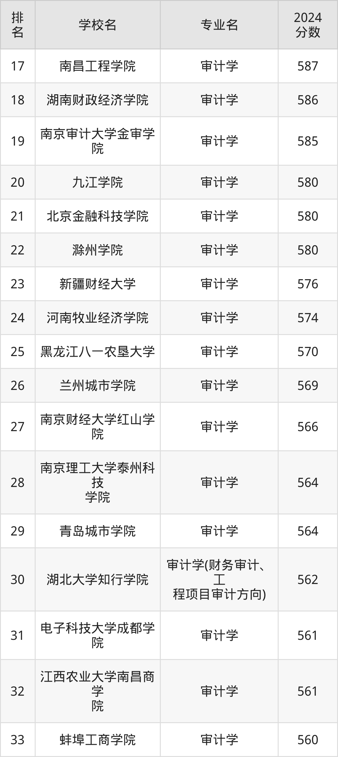(注:不包含把审计学专业列在大类专业中招生的名校)