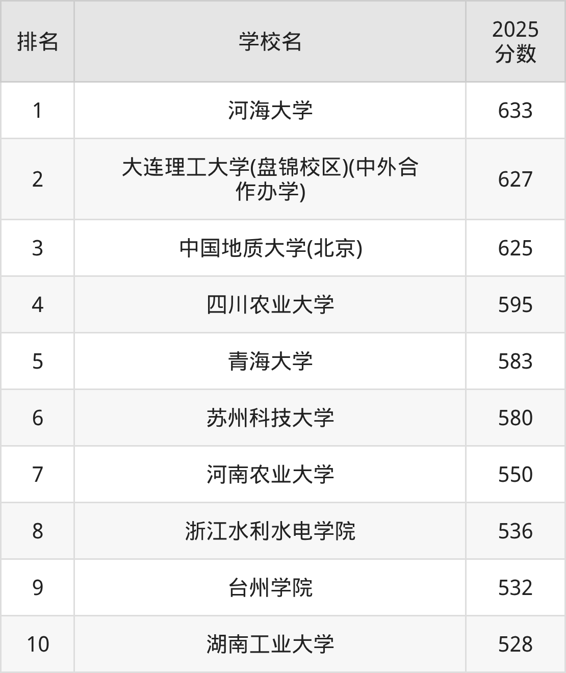 根据软科2025最新排名可知,环境生态工程专业最好的十所名校名单如下: