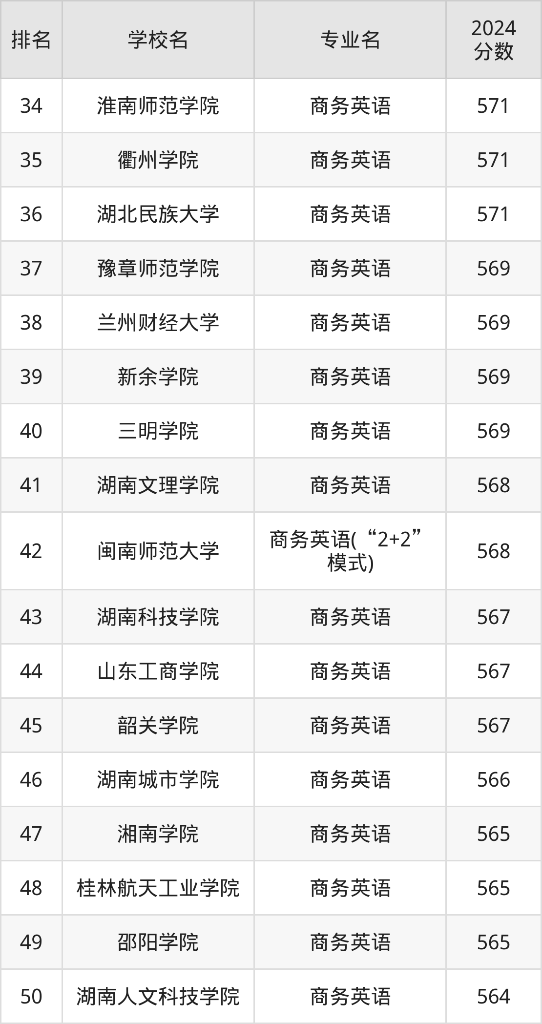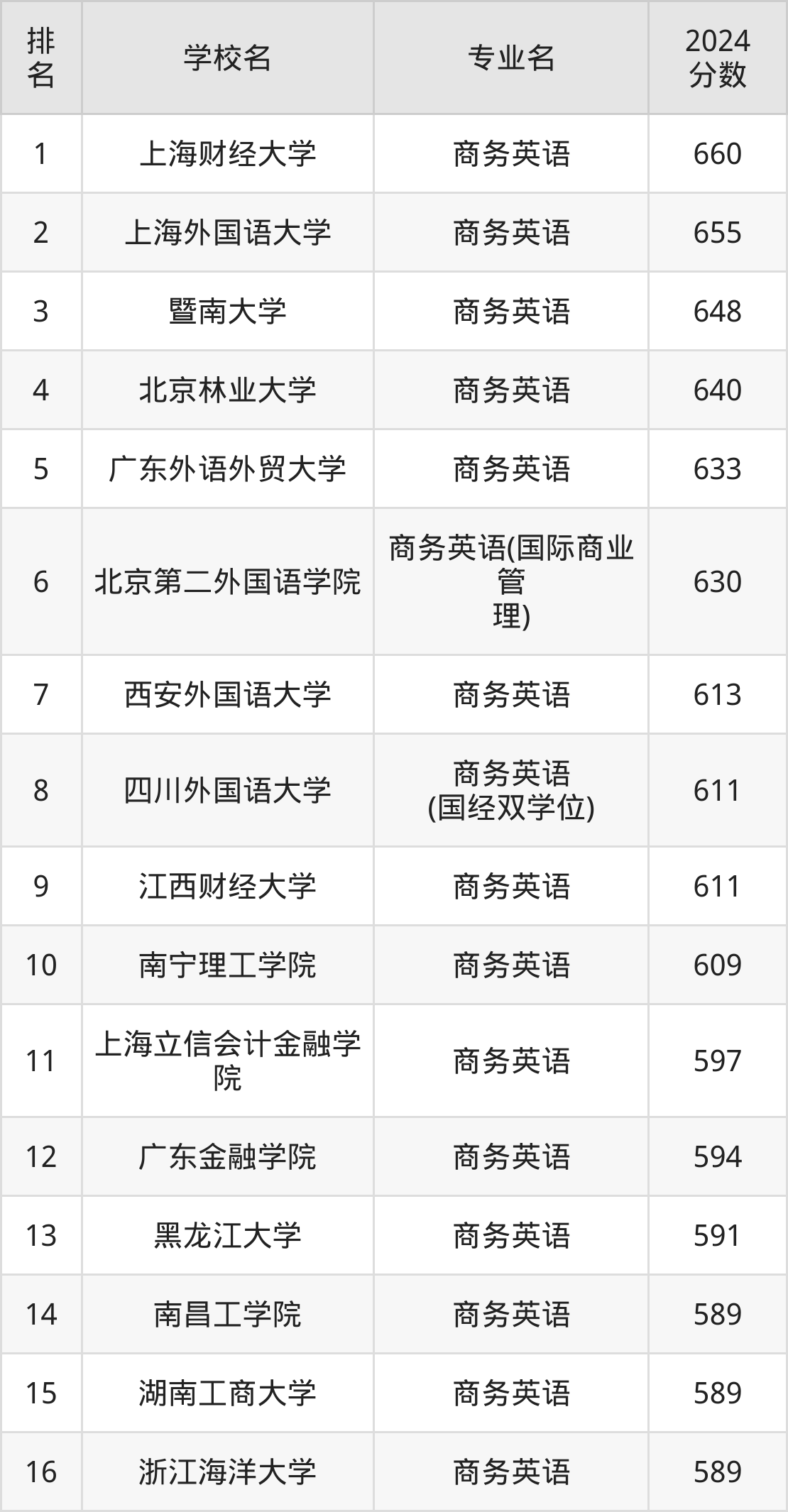 (注:不包含把商务英语专业列在大类专业中招生的名校)