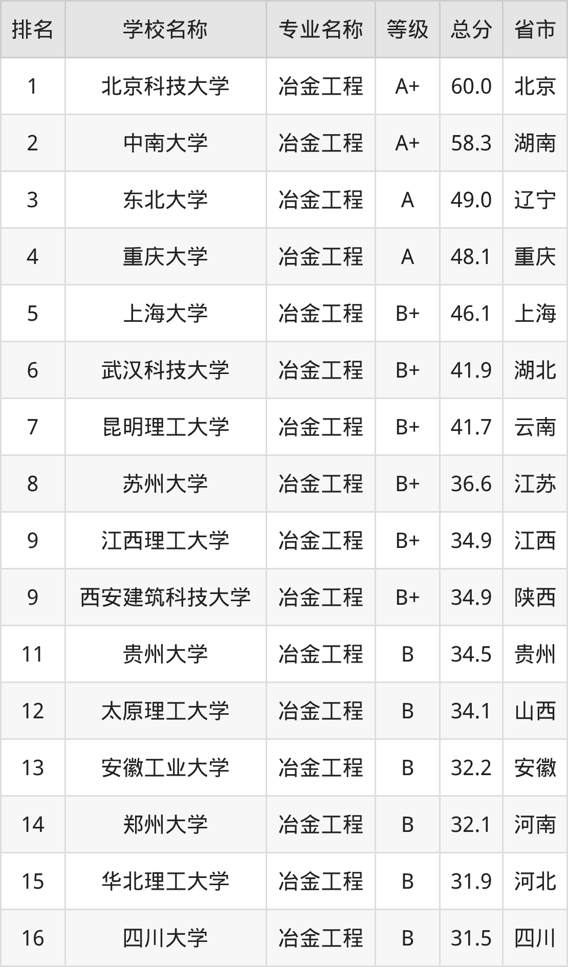 如果你的高考成绩拔尖,可重点考虑以上10所开设了冶金工程专业的大学。