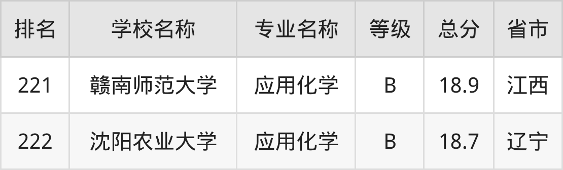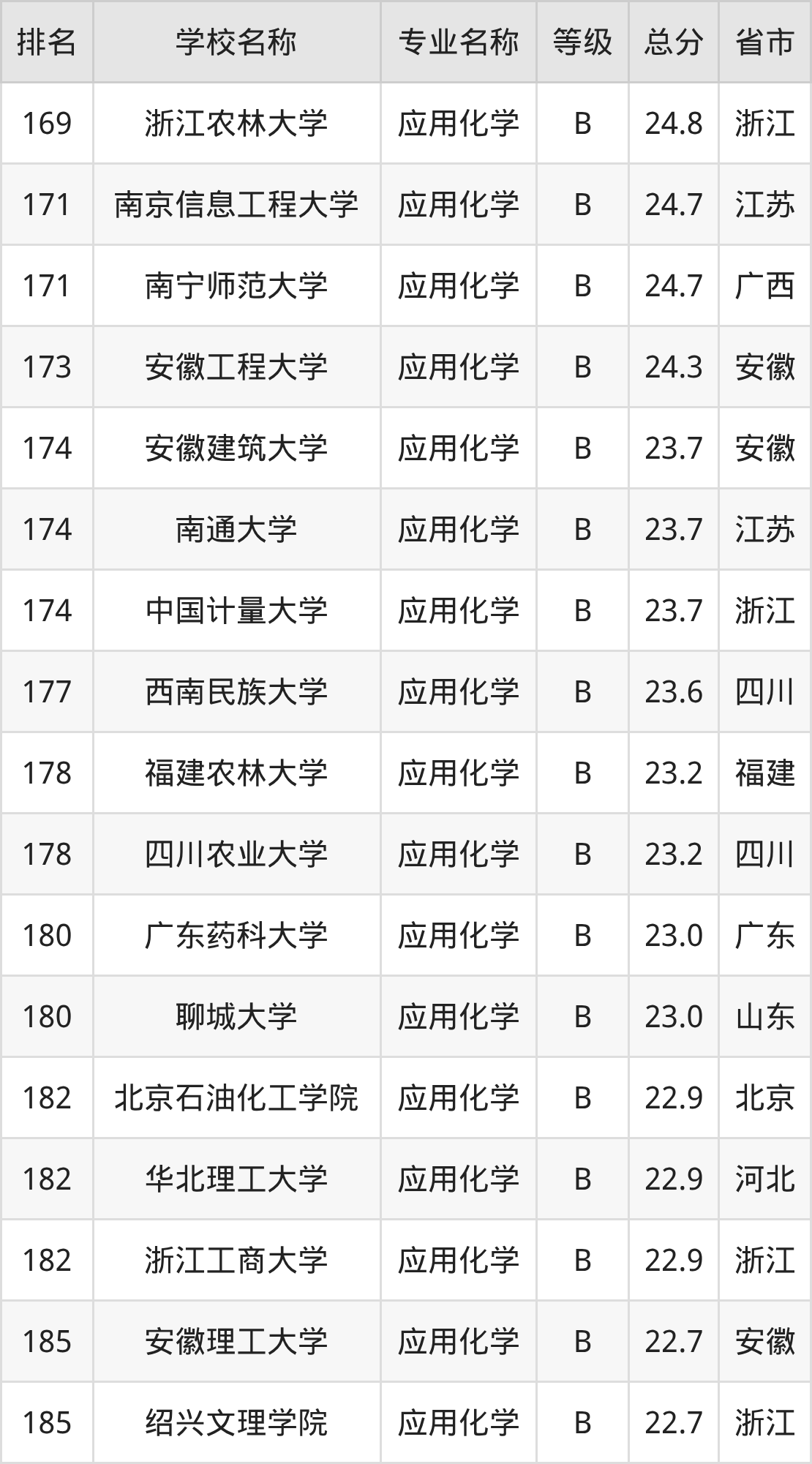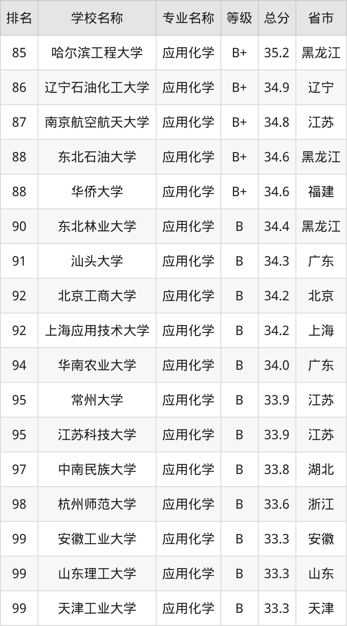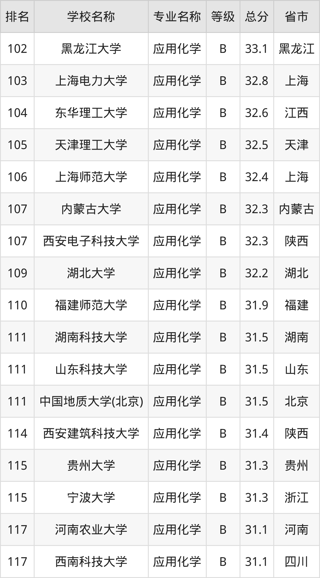 根据软科榜单可知,应用化学专业全国排名前十的大学分别是: