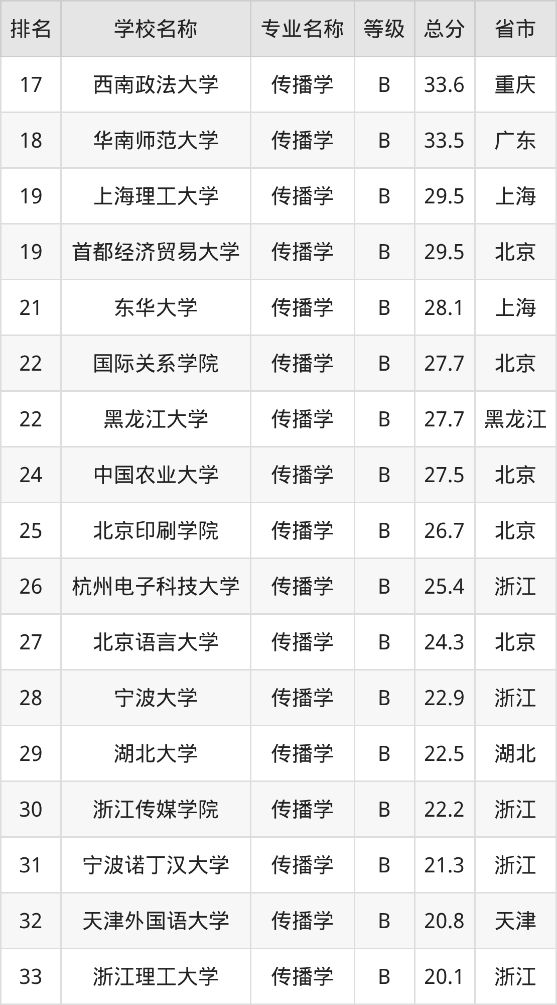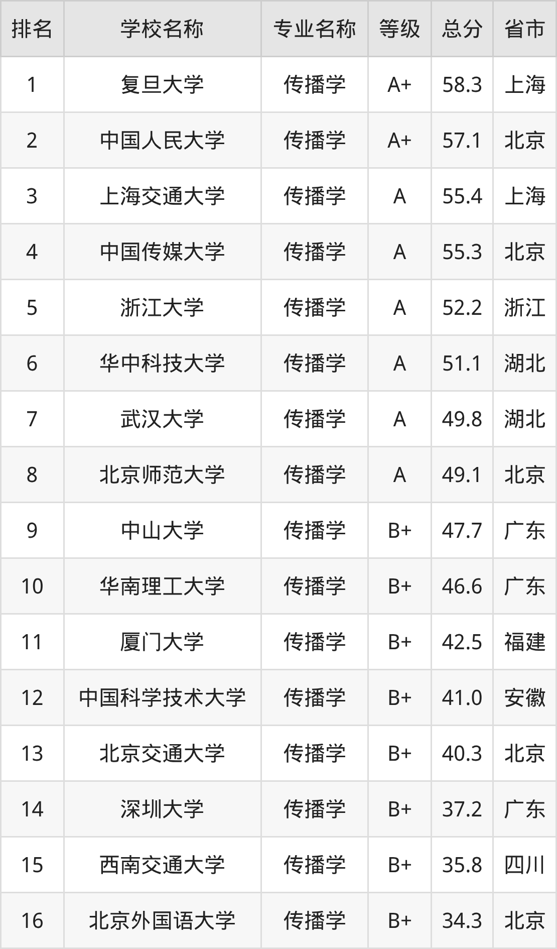 附传播学专业全国40所院校排名榜单一览表!