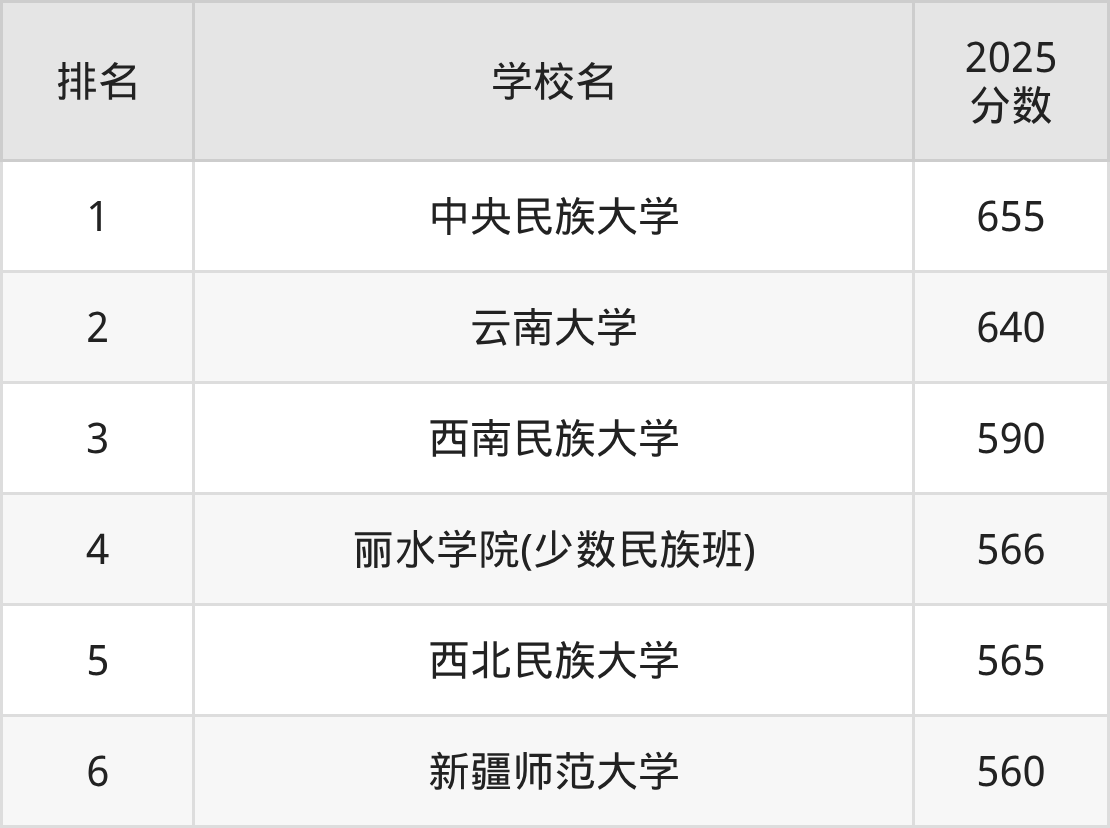 以下为全国民族学专业在浙江省分数线排名前6的大学。