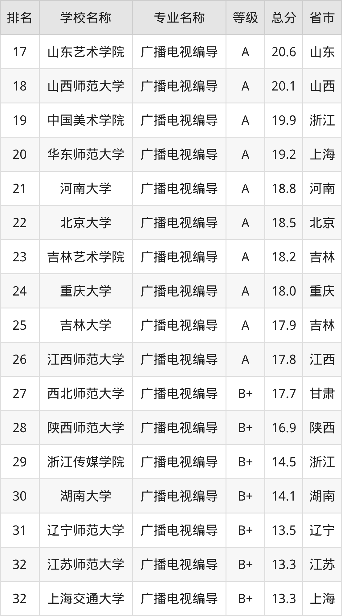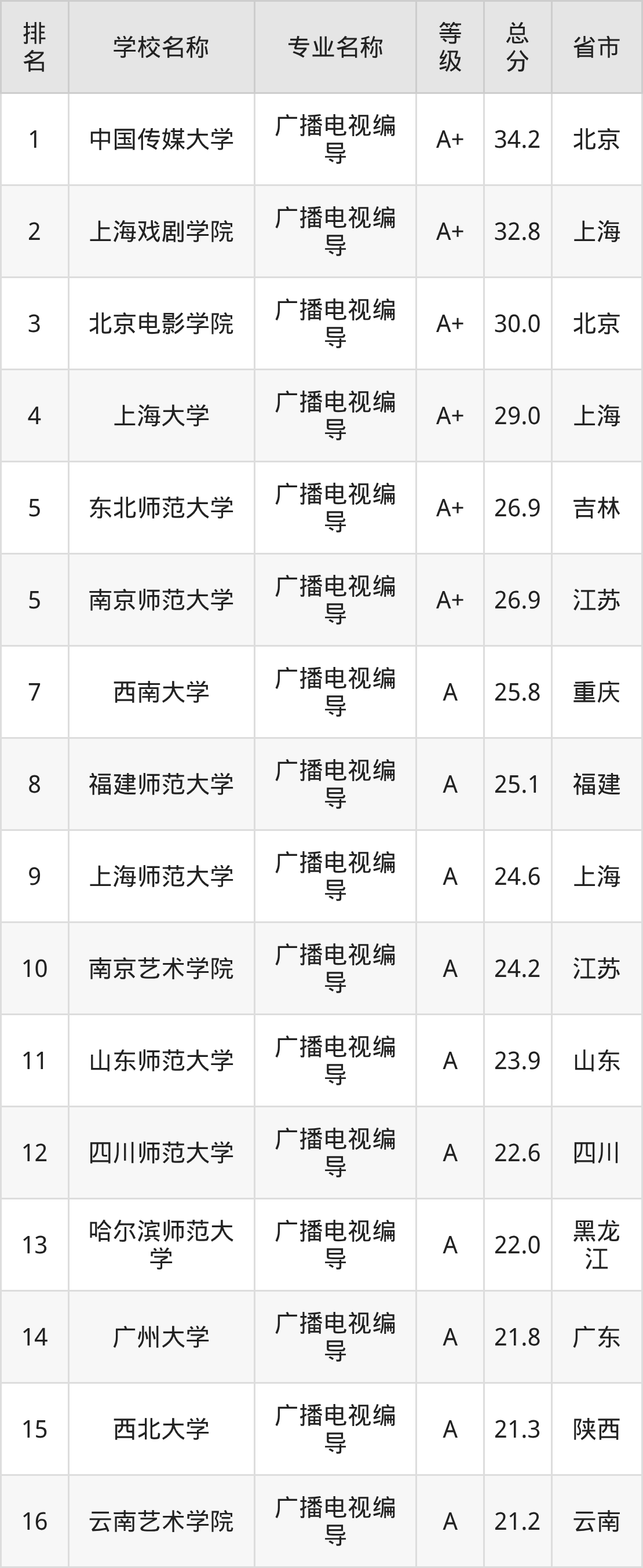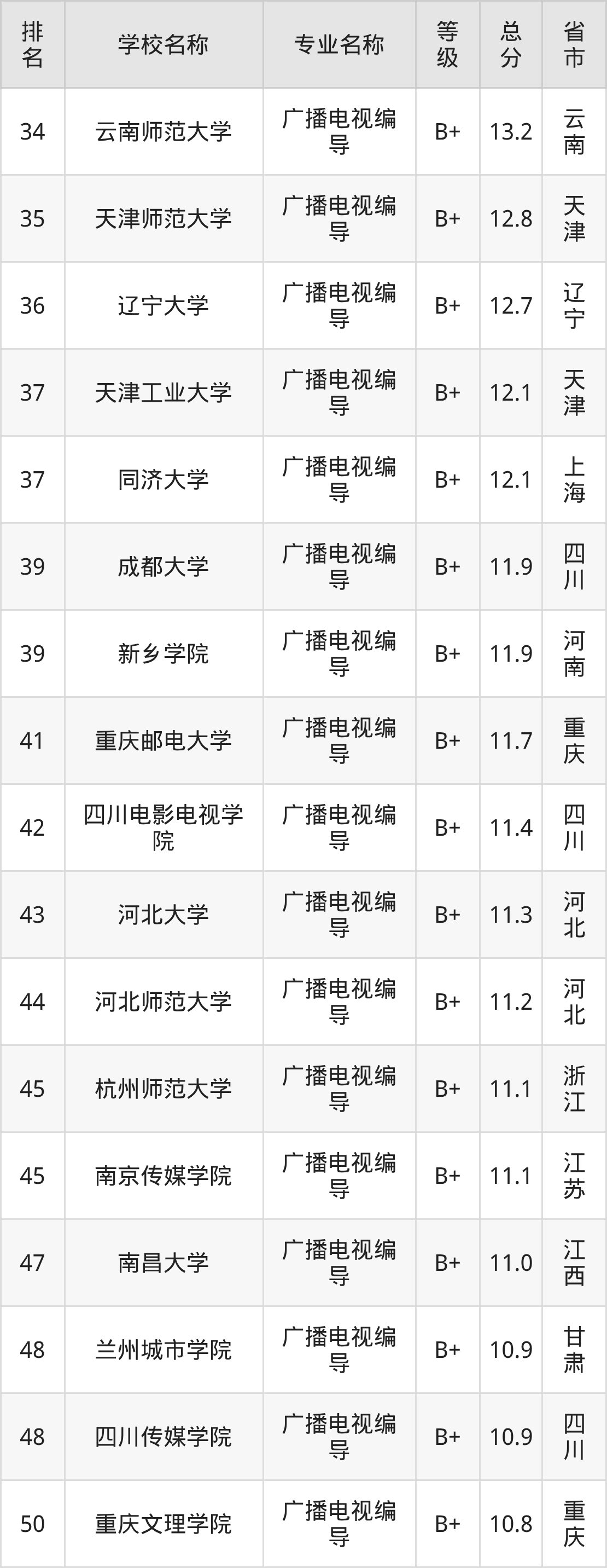 附广播电视编导专业全国132所院校排名榜单一览表!