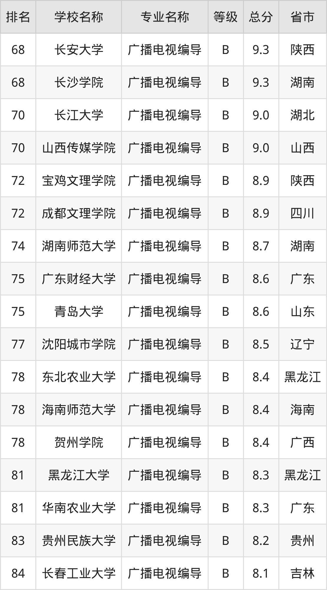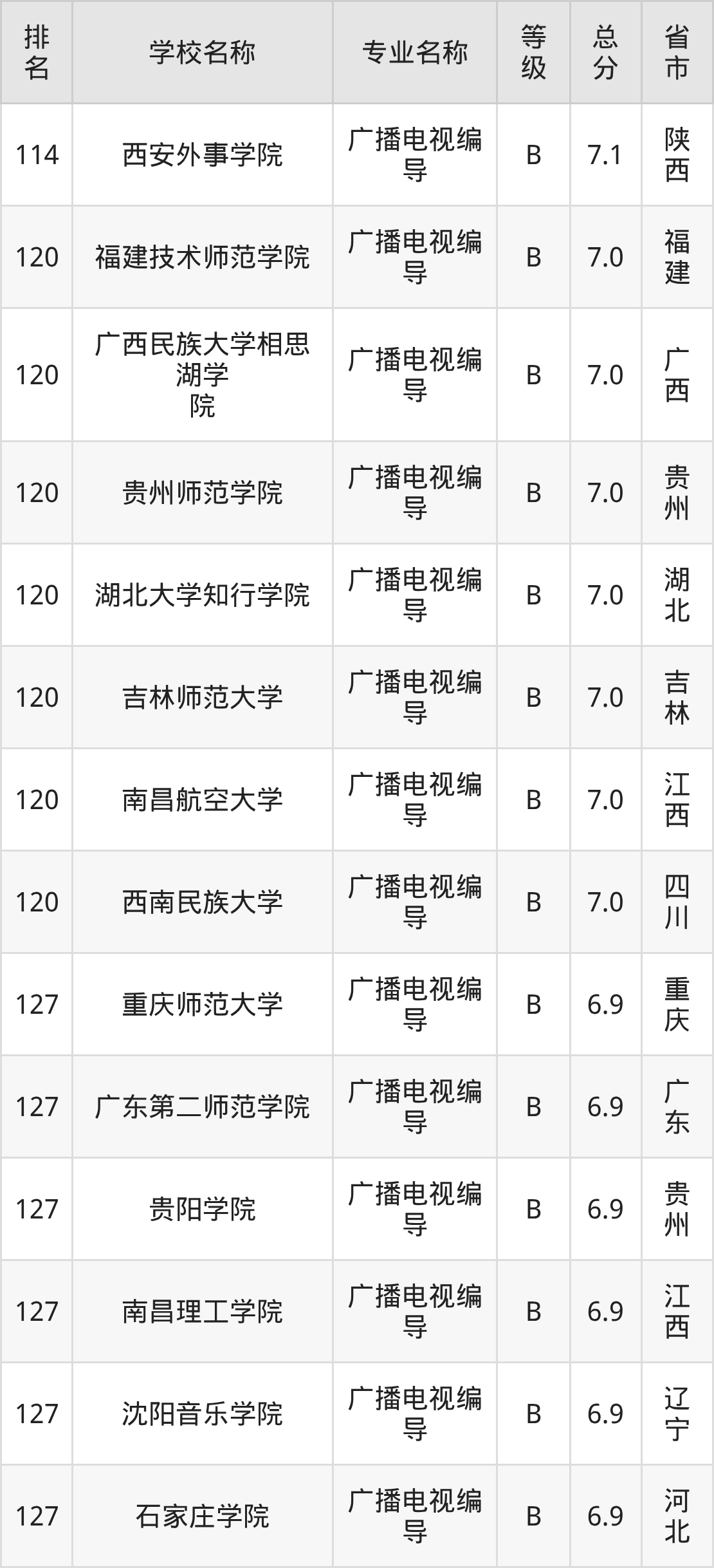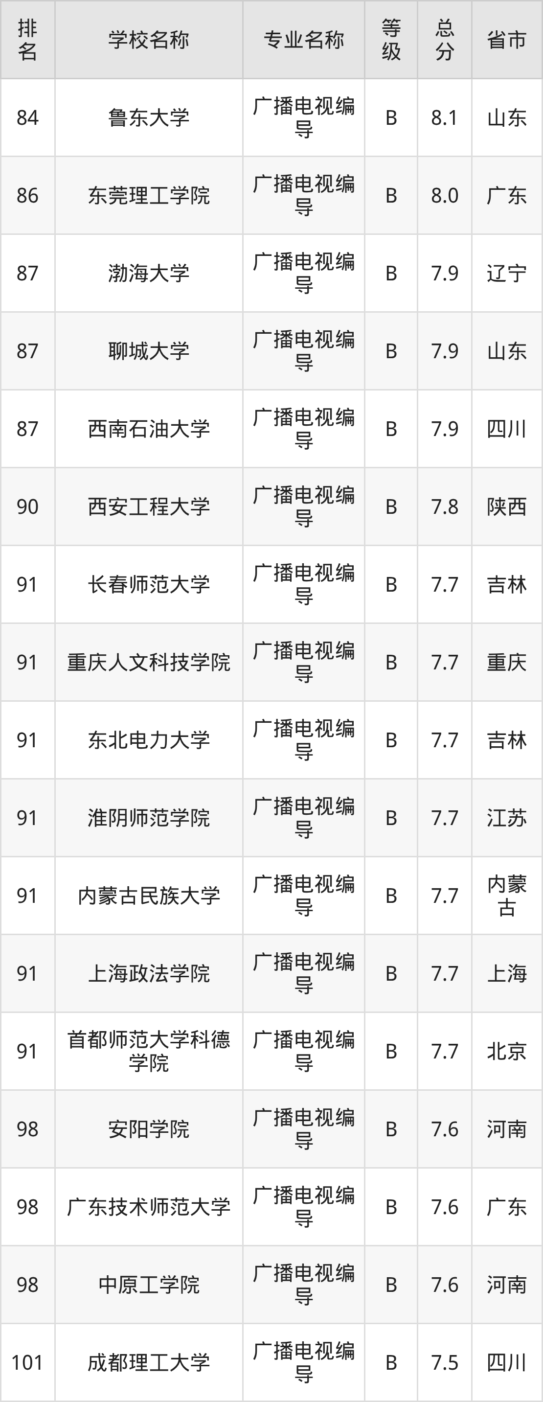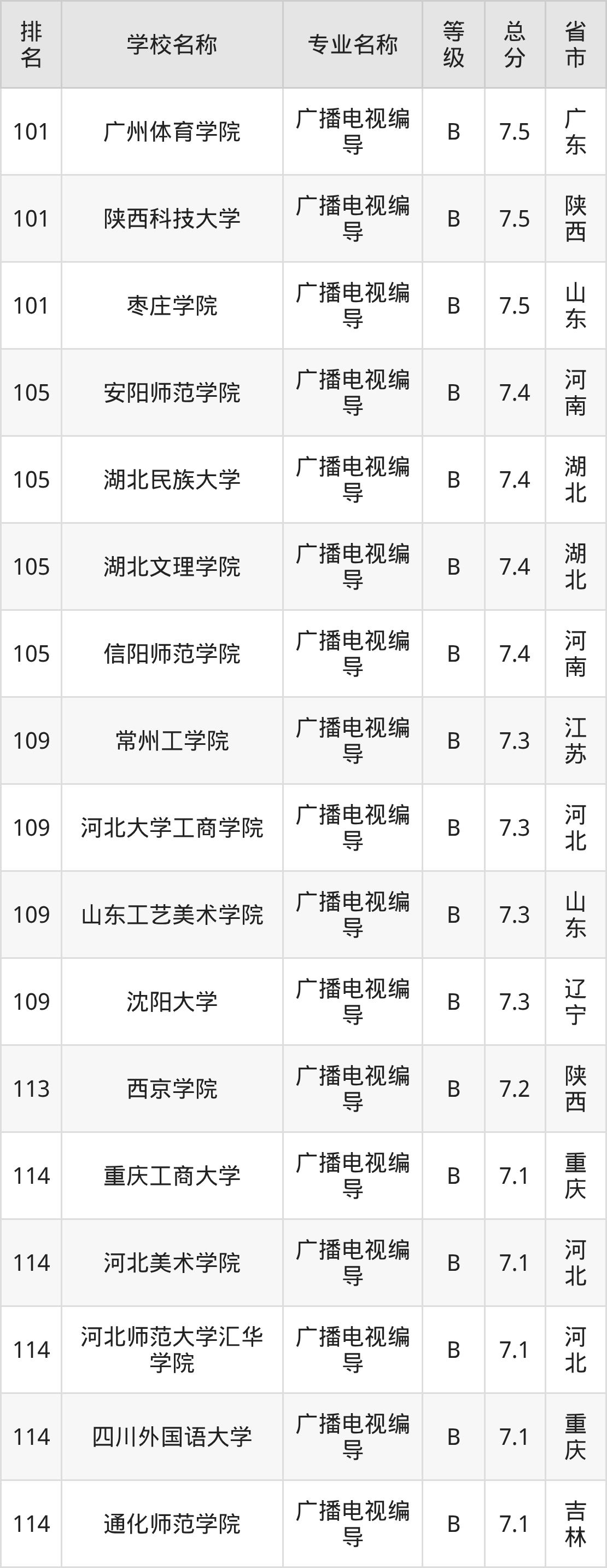 附广播电视编导专业全国132所院校排名榜单一览表!