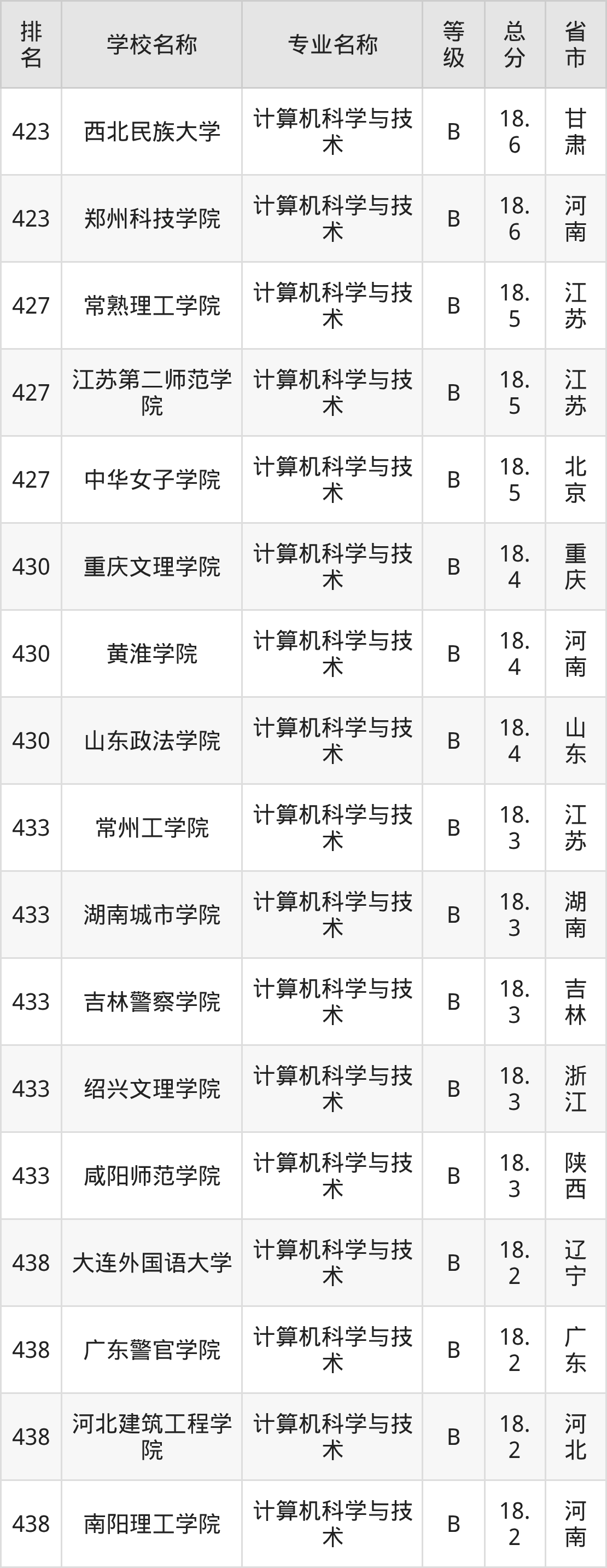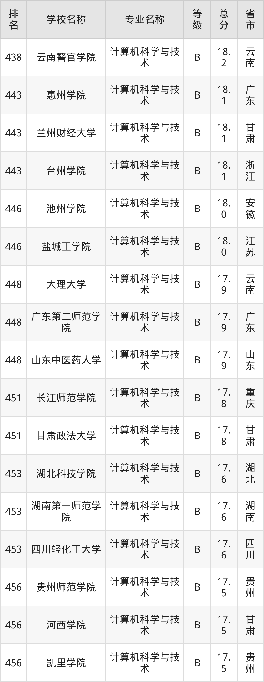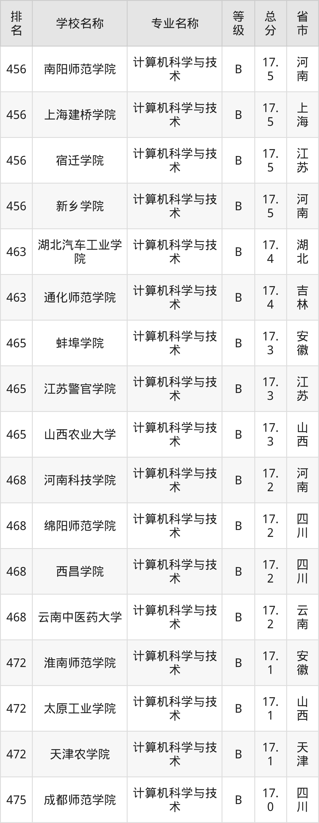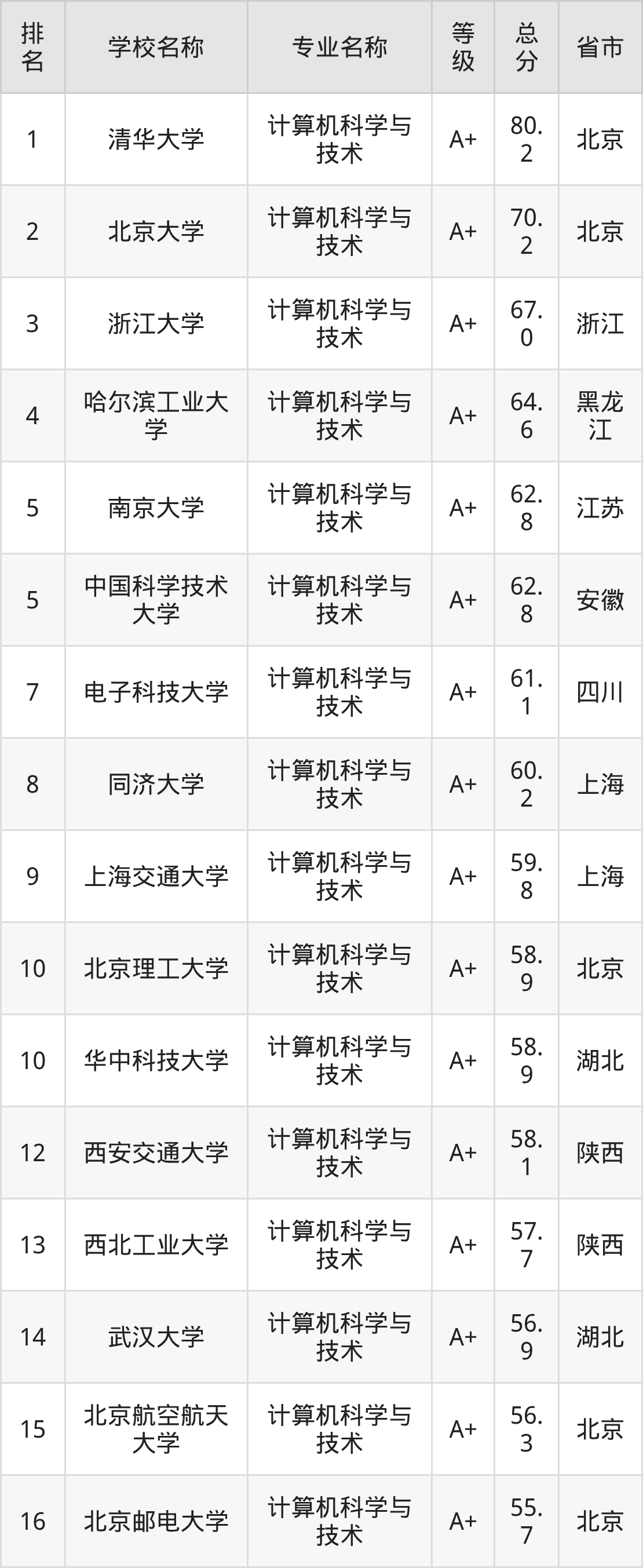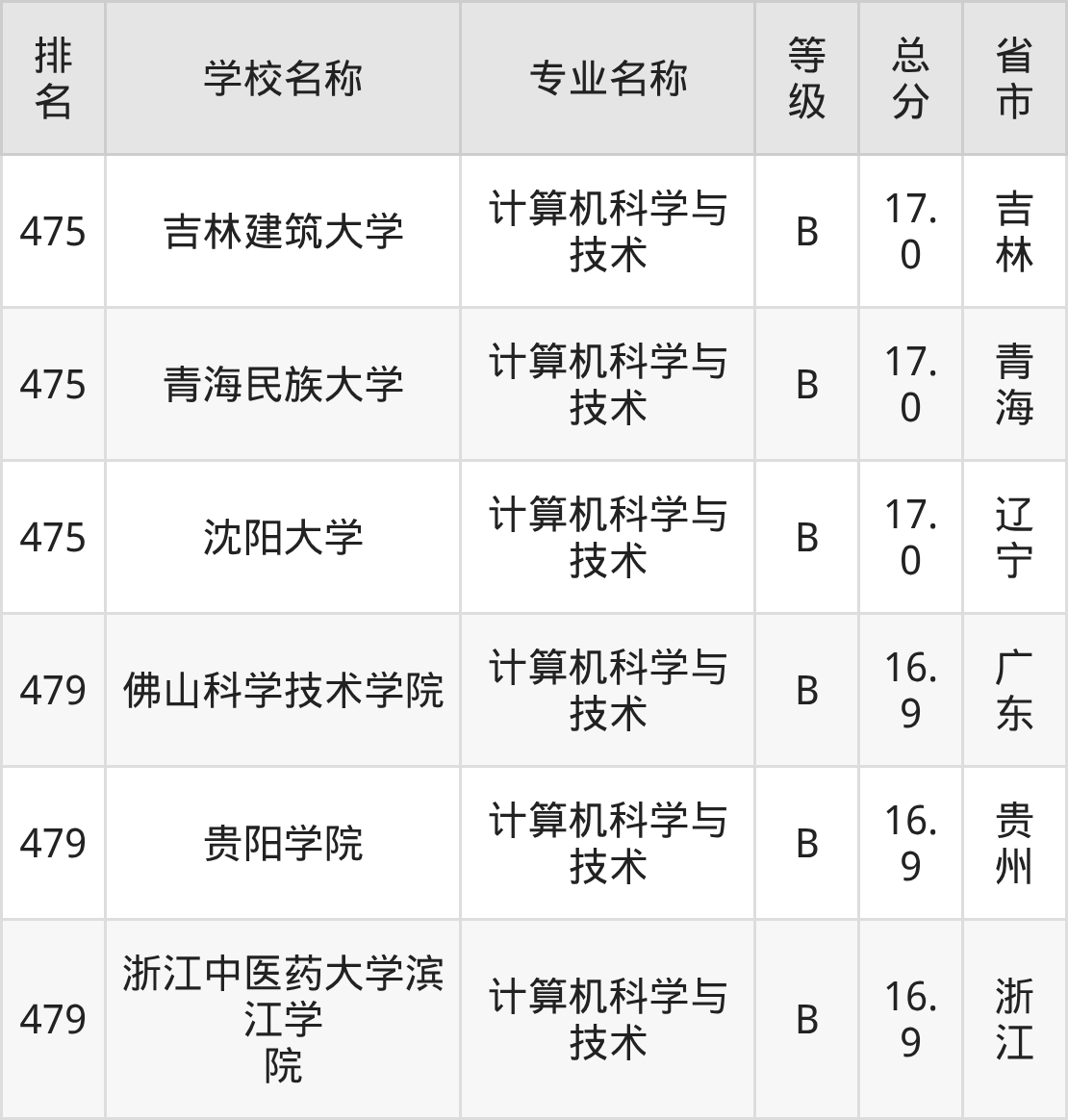 附计算机科学与技术专业全国481所院校排名榜单一览表!