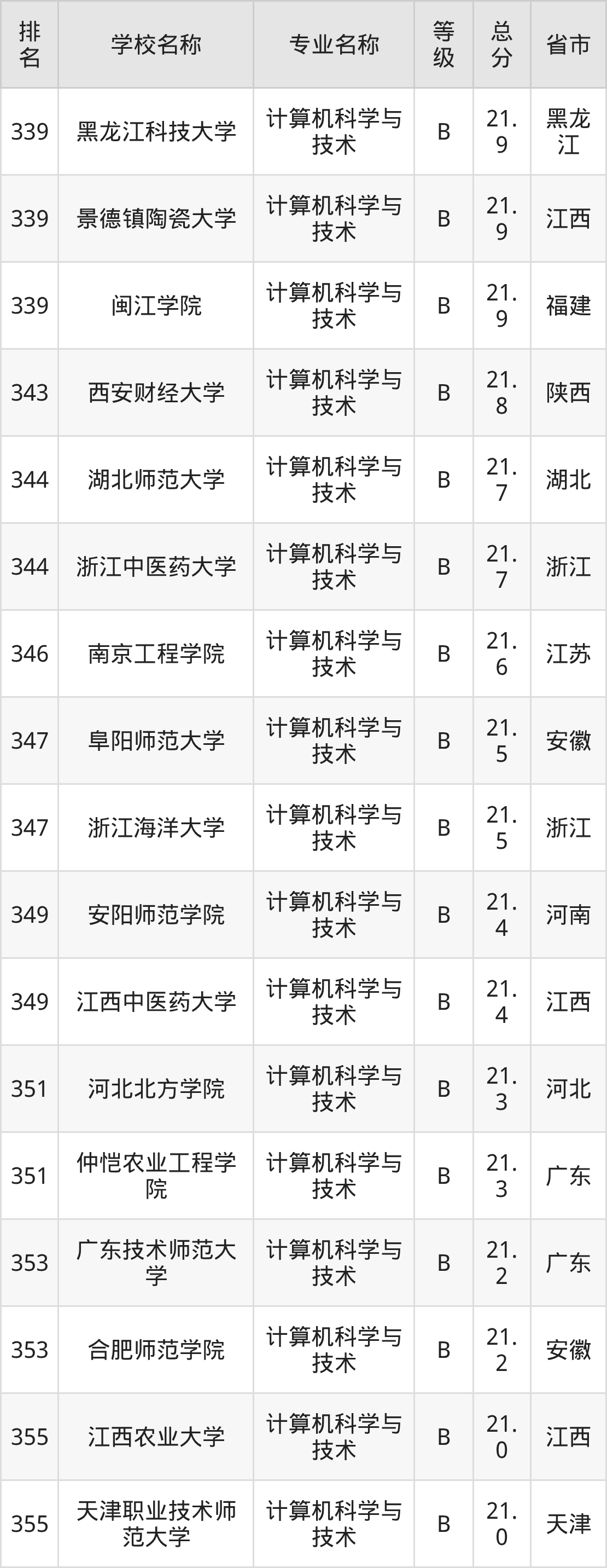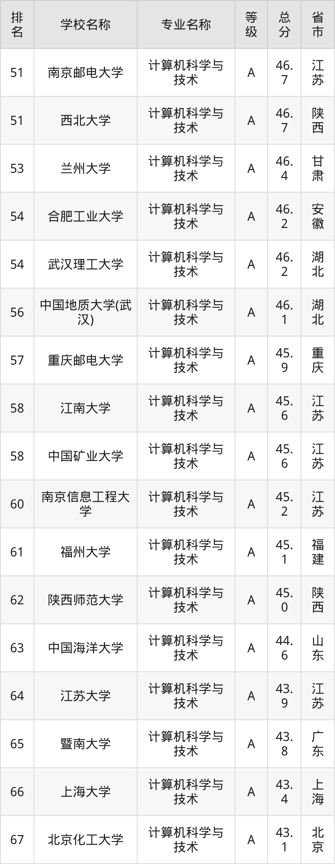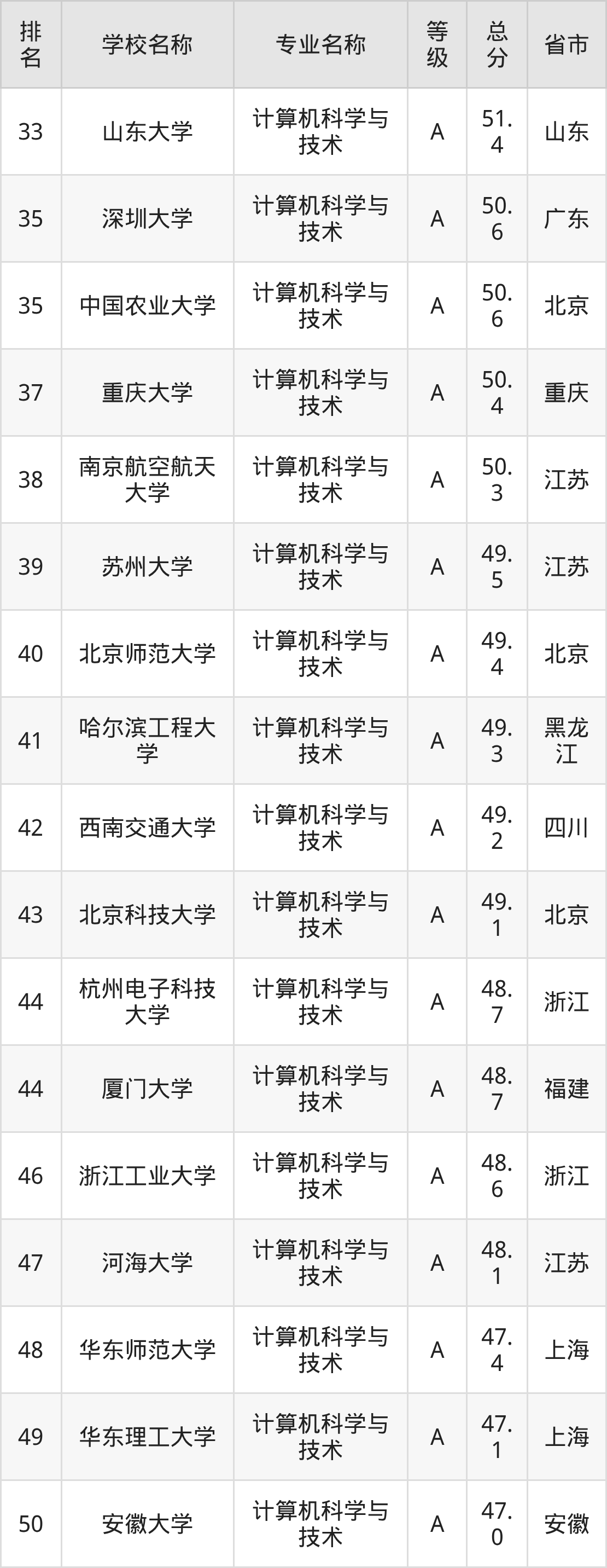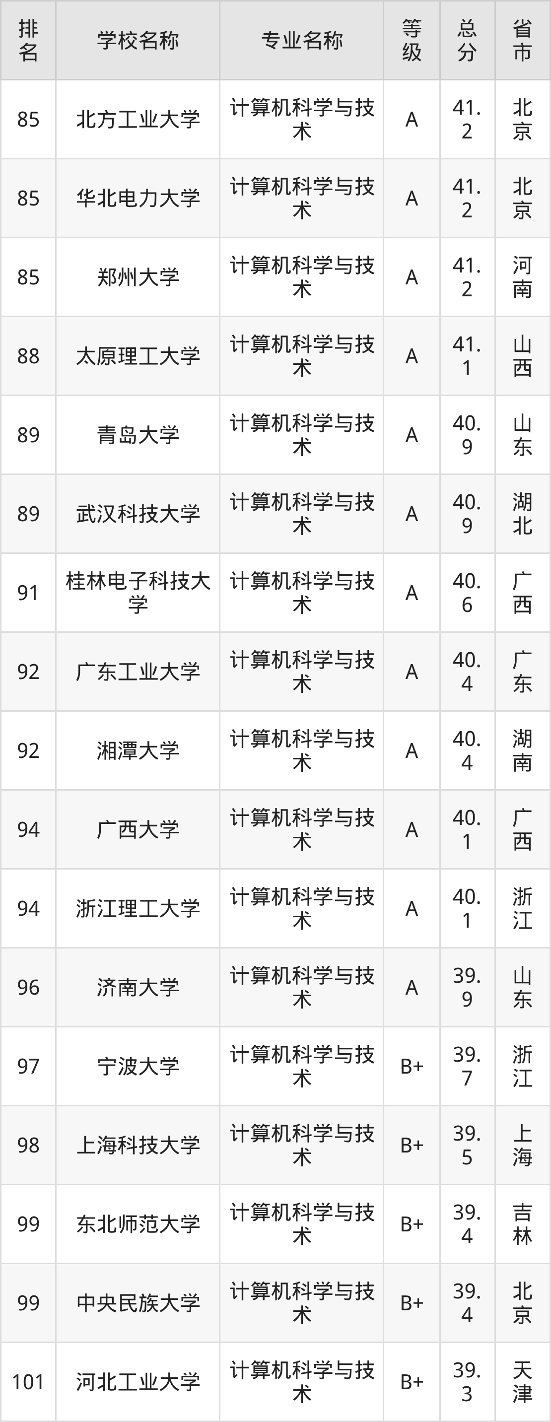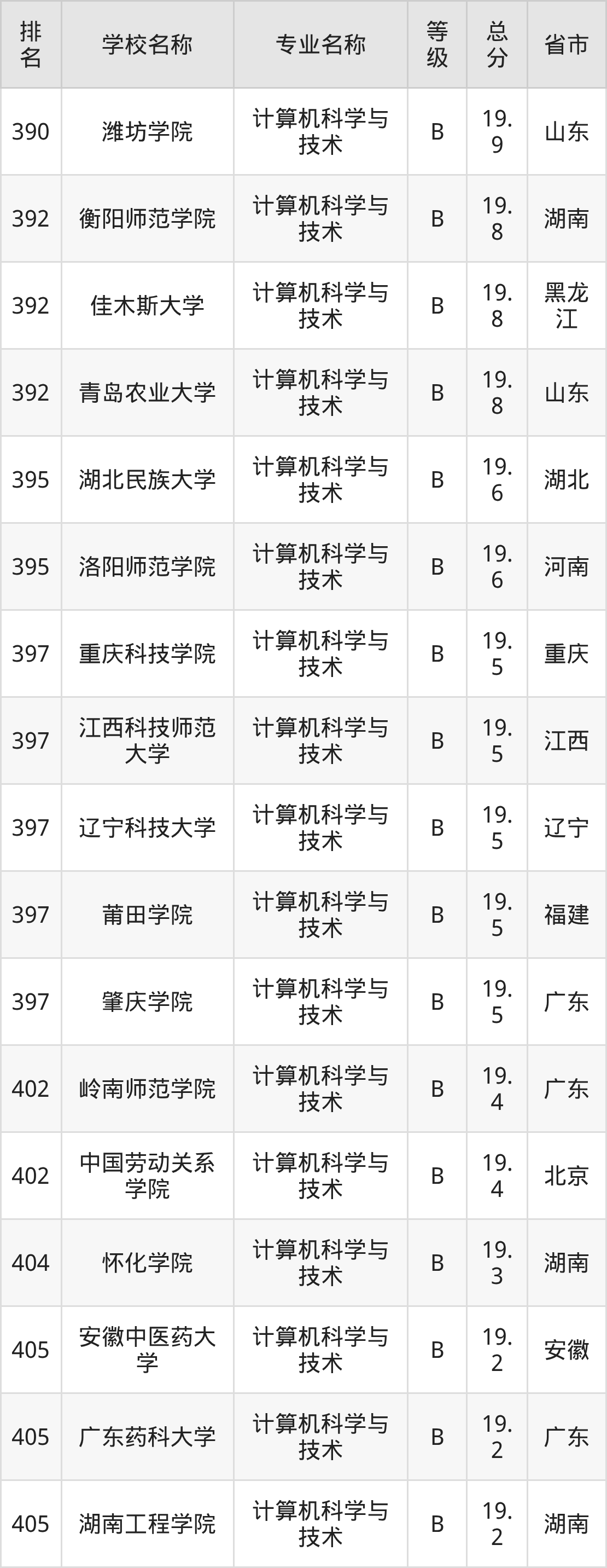 附计算机科学与技术专业全国481所院校排名榜单一览表!