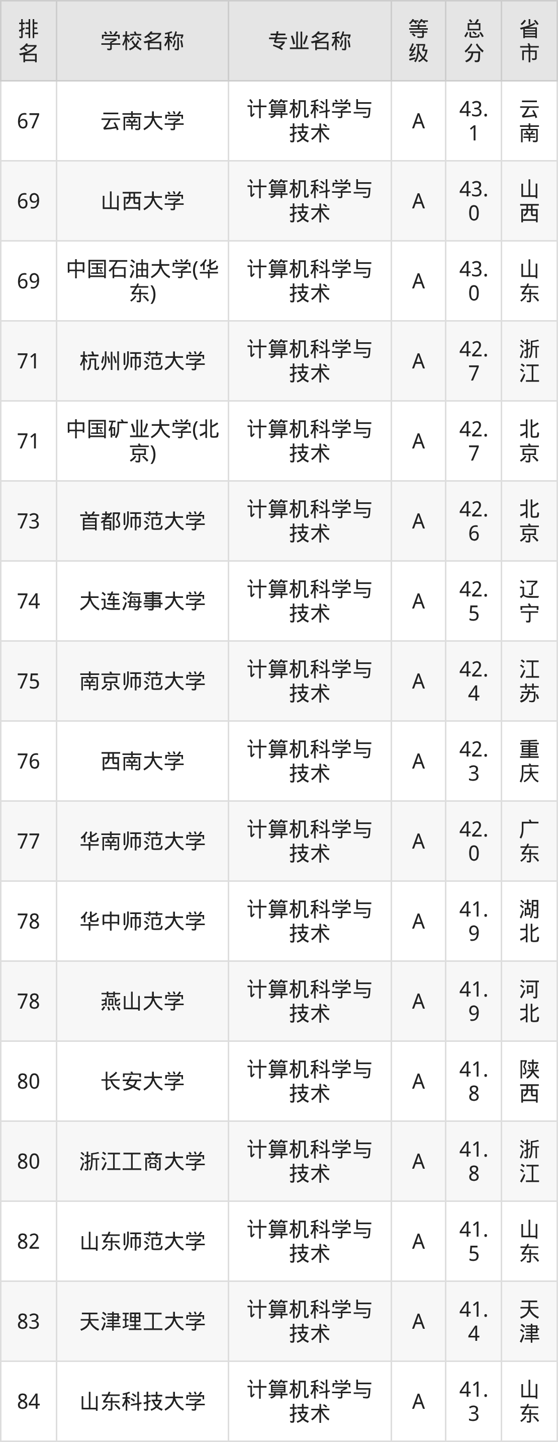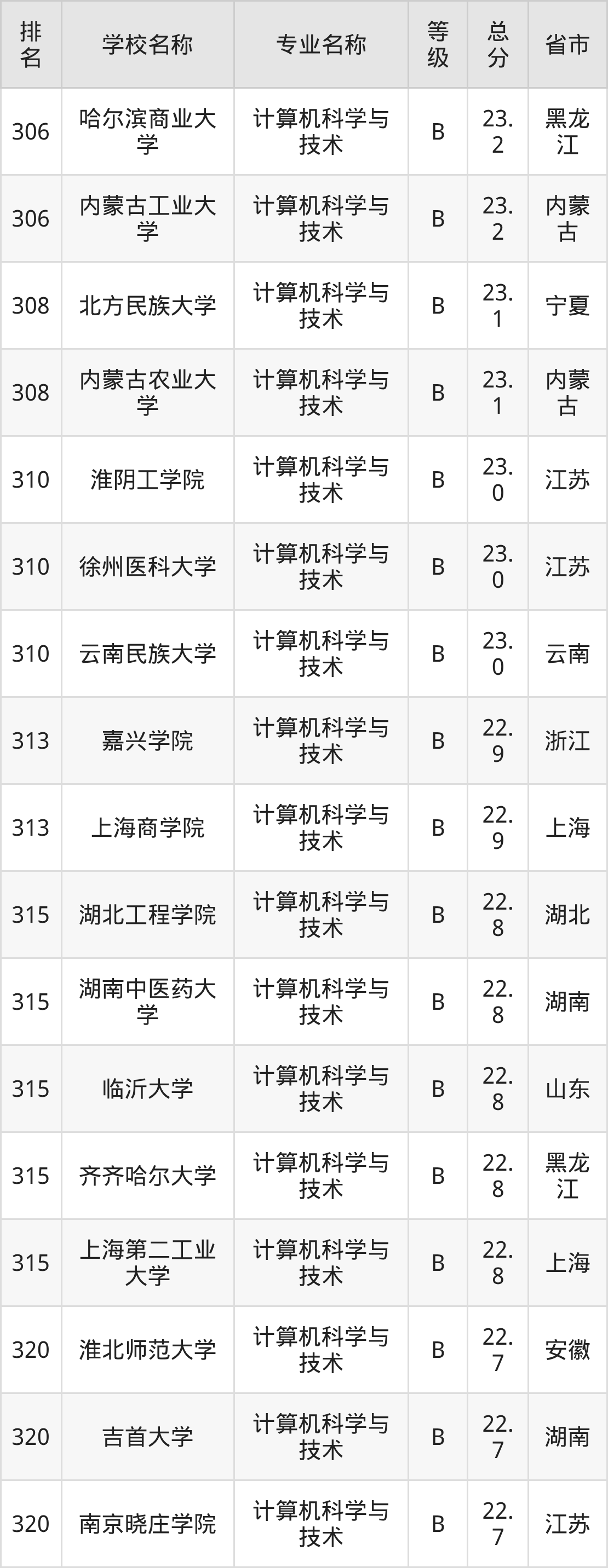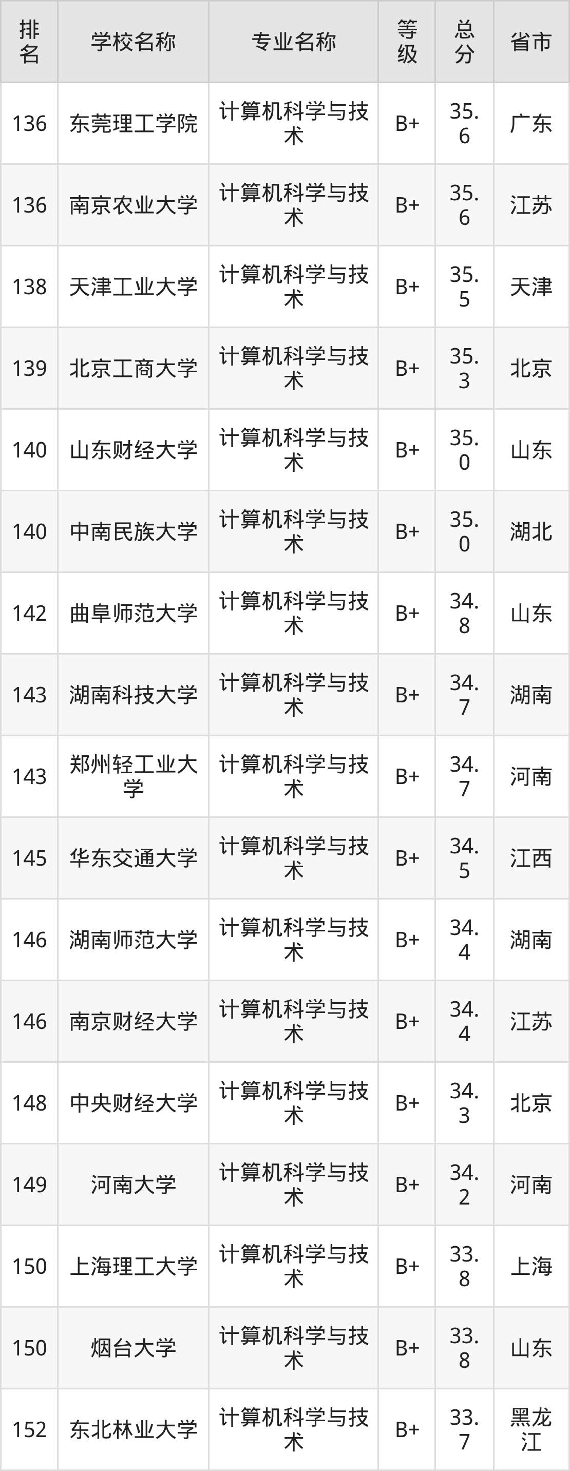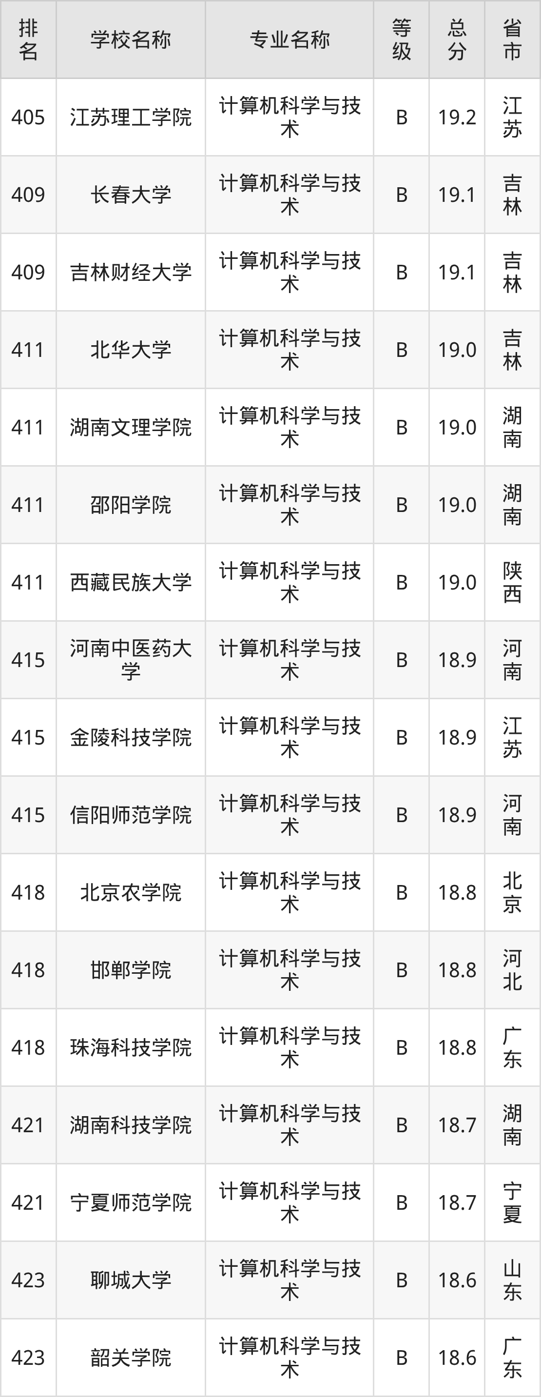 附计算机科学与技术专业全国481所院校排名榜单一览表!