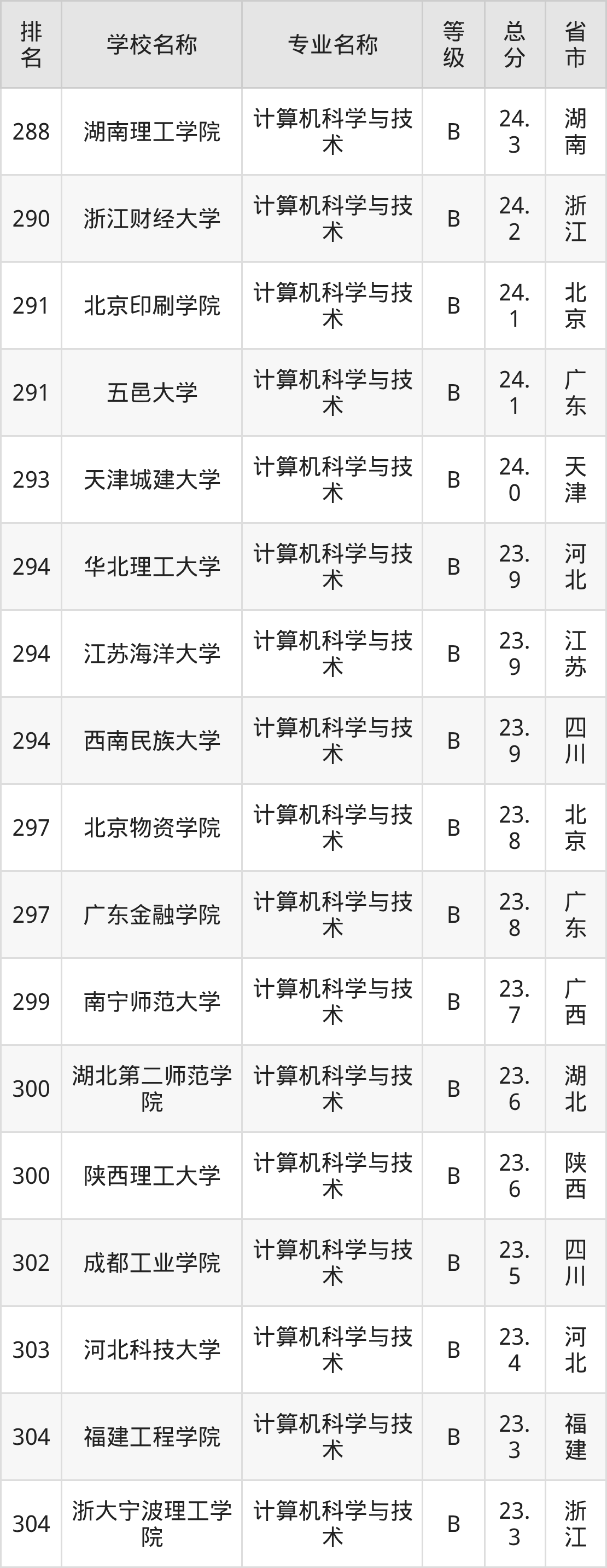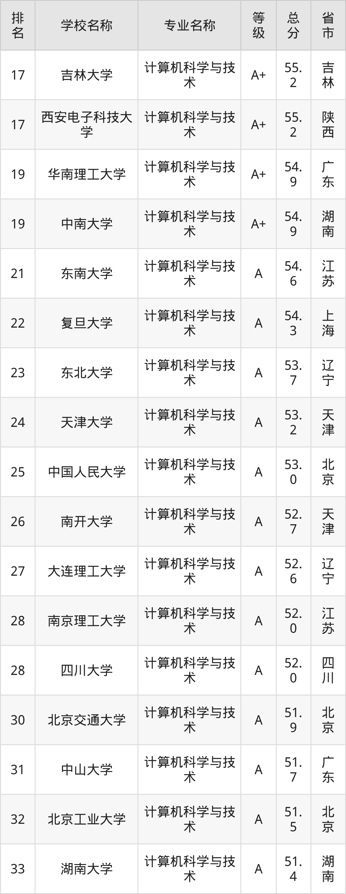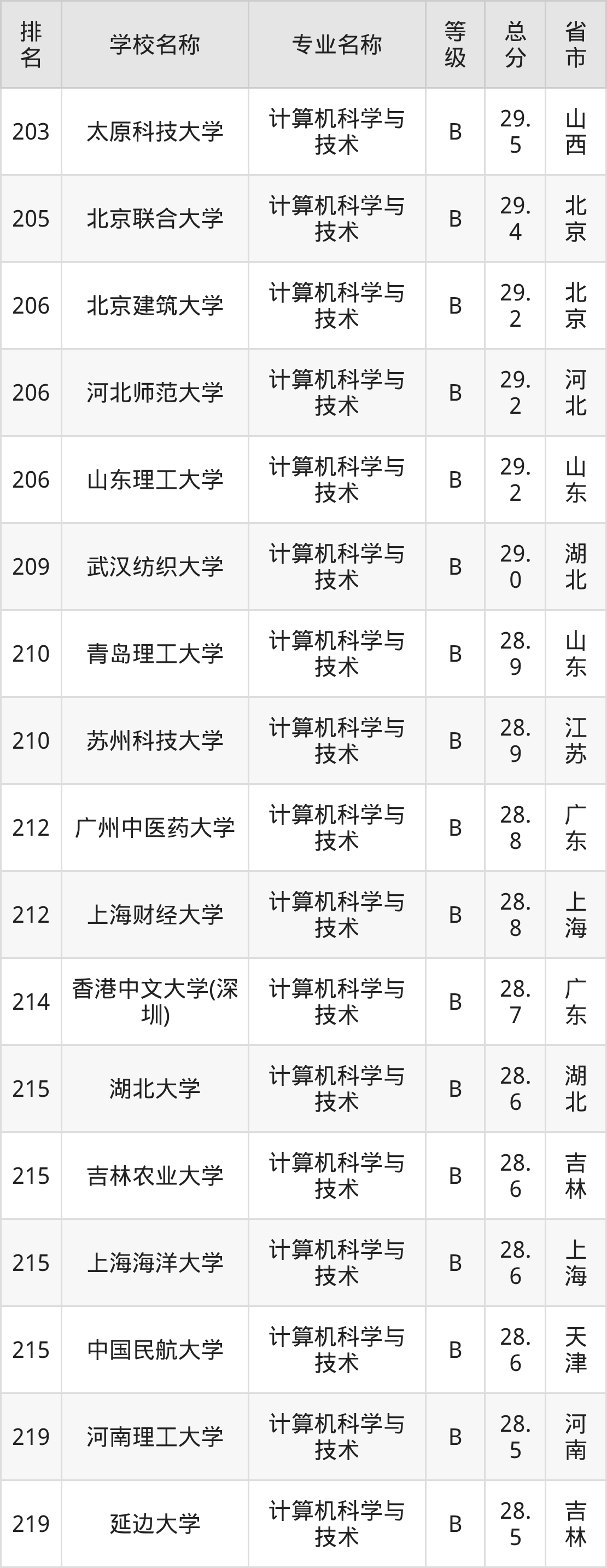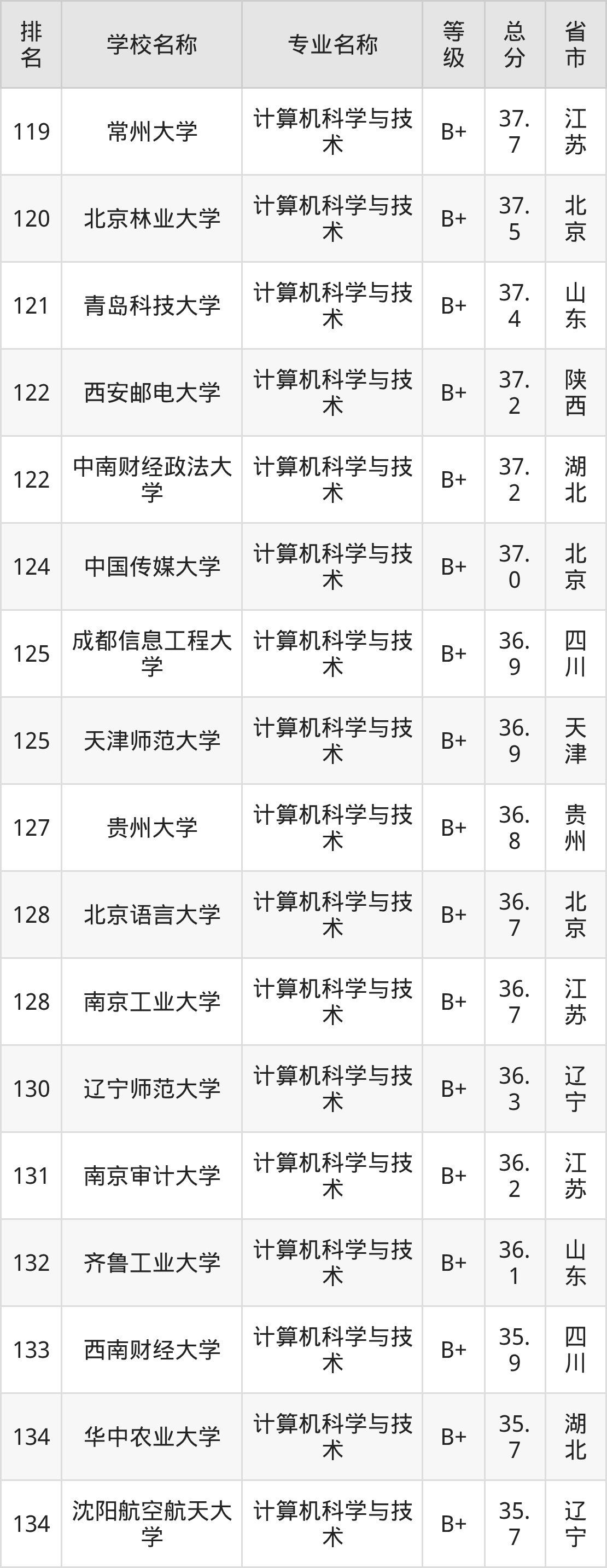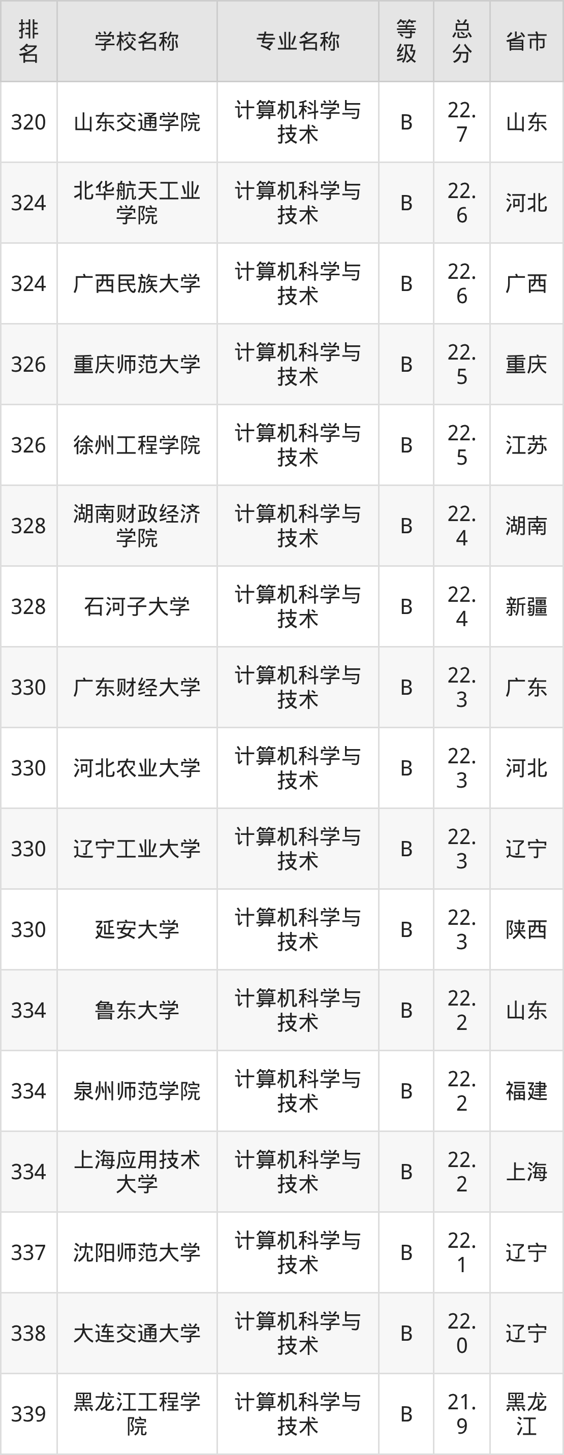 附计算机科学与技术专业全国481所院校排名榜单一览表!