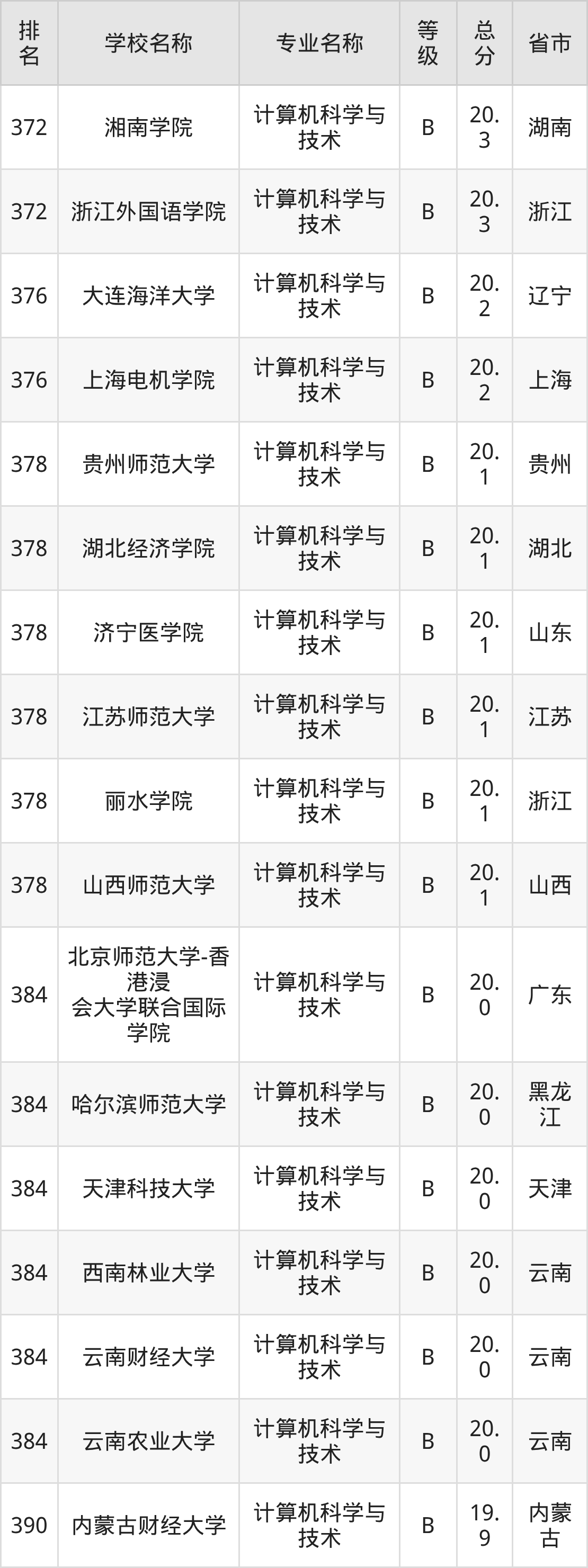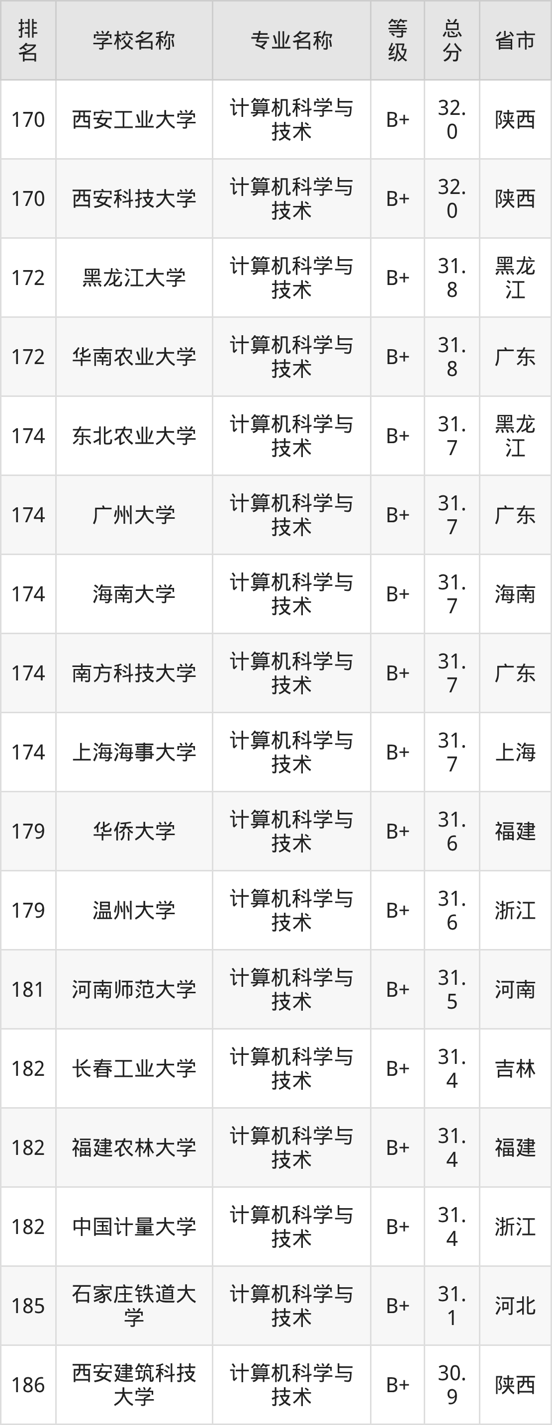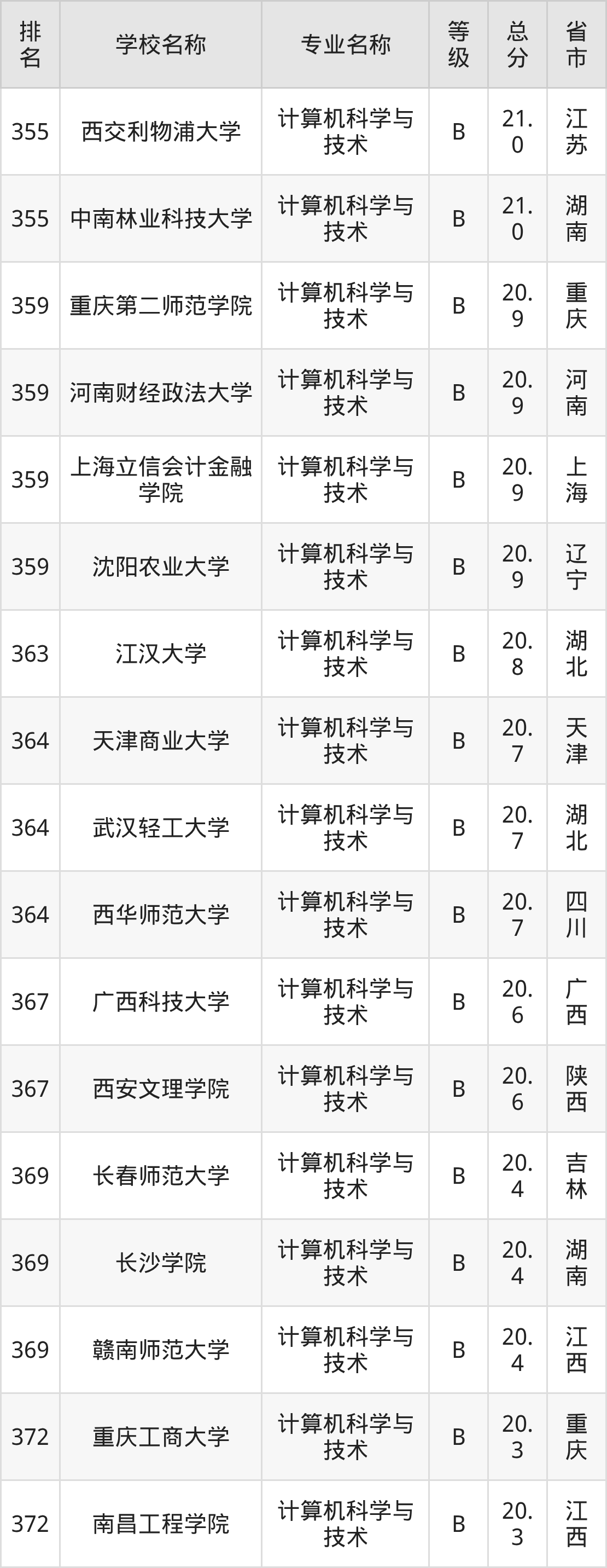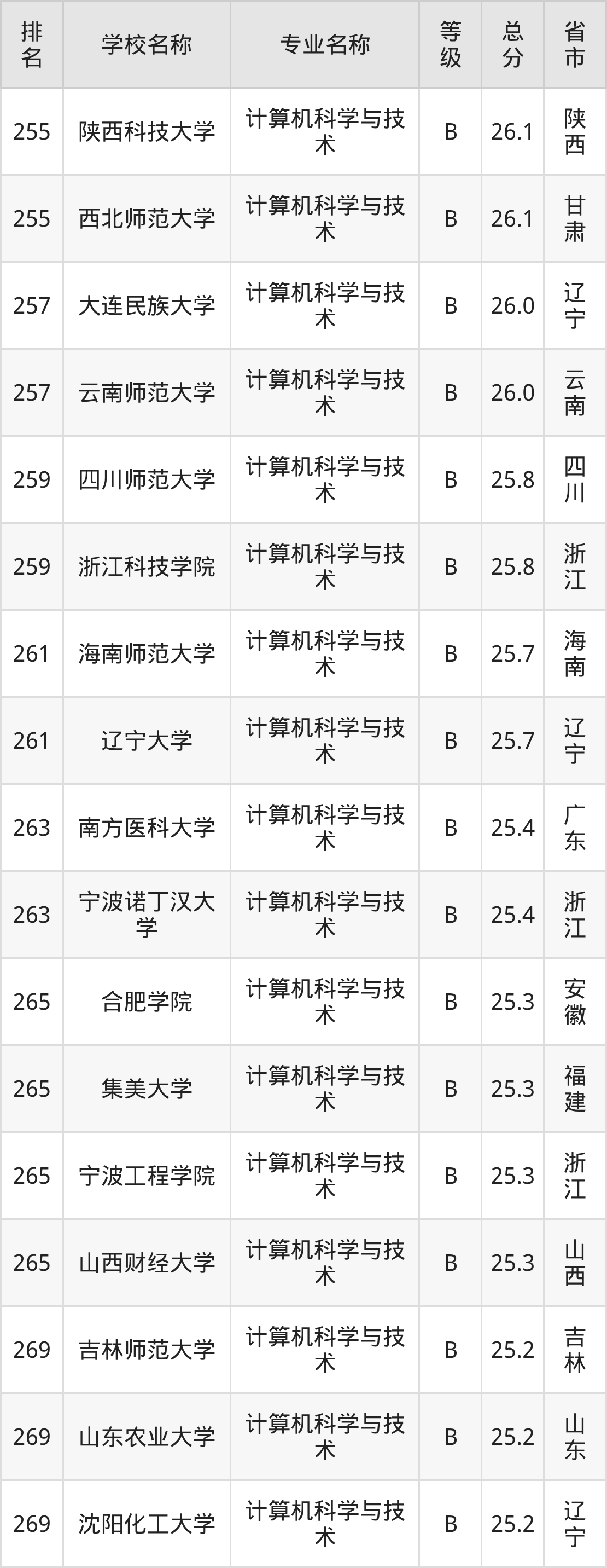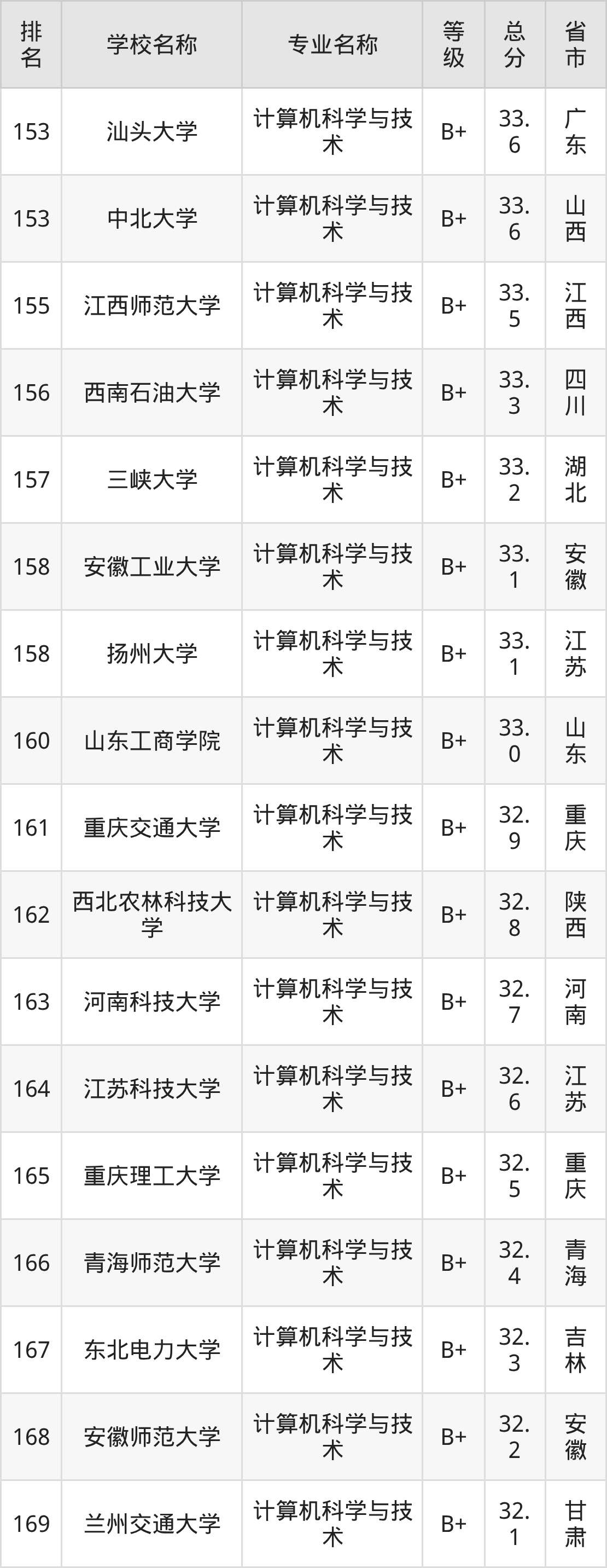 附计算机科学与技术专业全国481所院校排名榜单一览表!