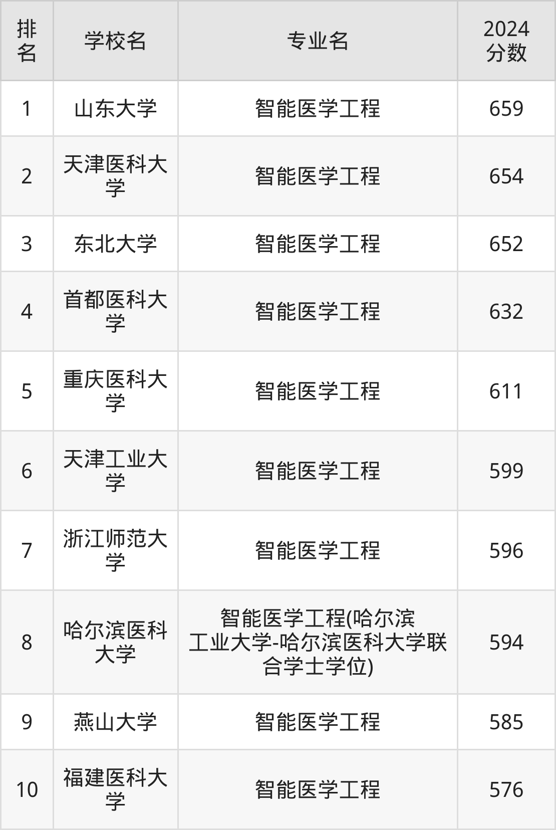 (注:不包含把智能医学工程专业列在大类专业中招生的名校)