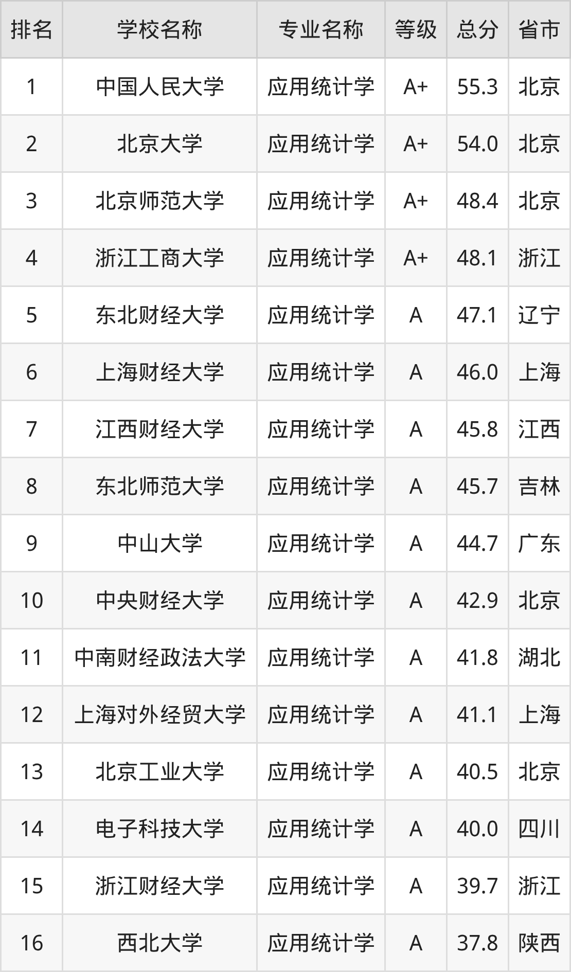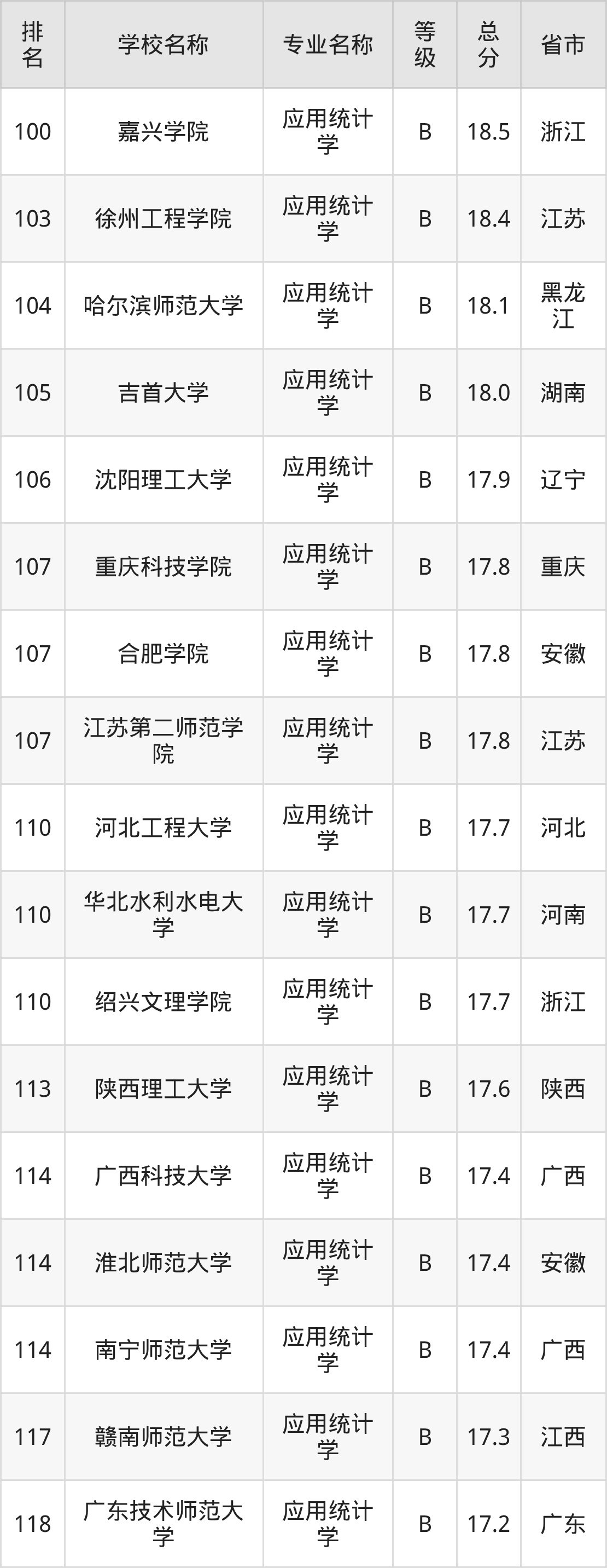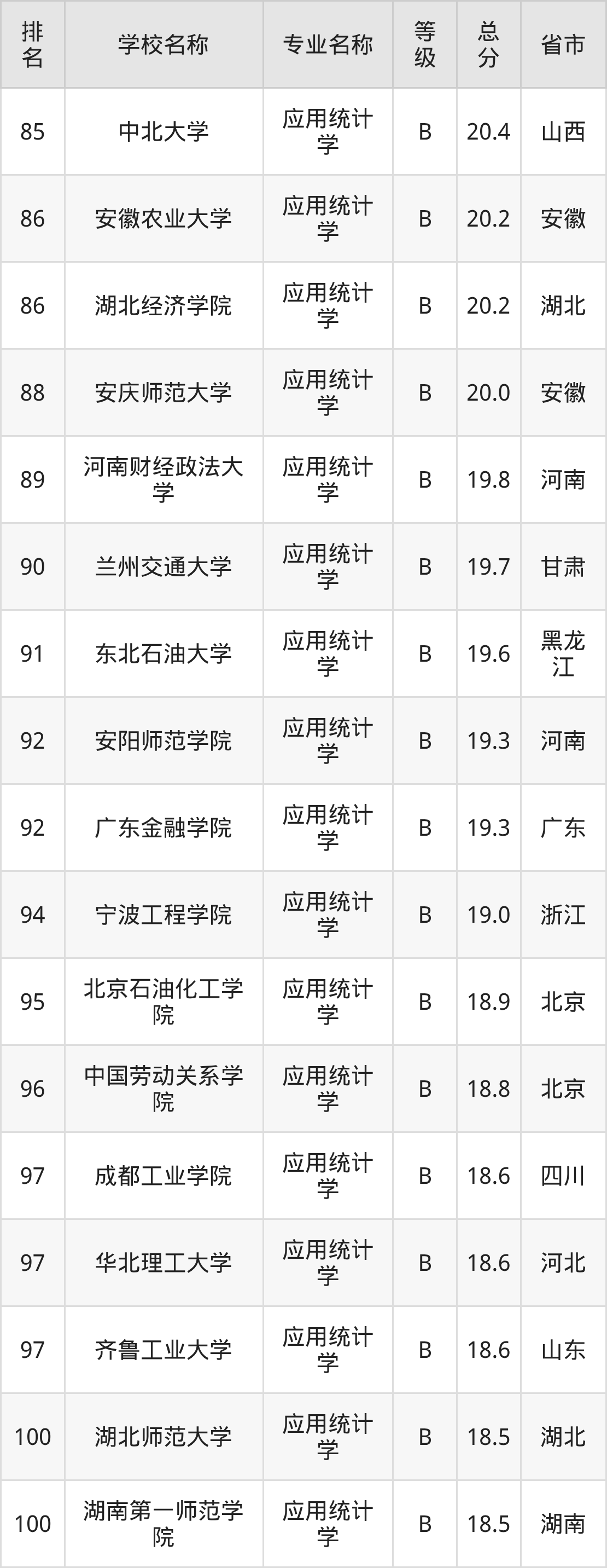 附应用统计学专业全国118所院校排名榜单一览表!