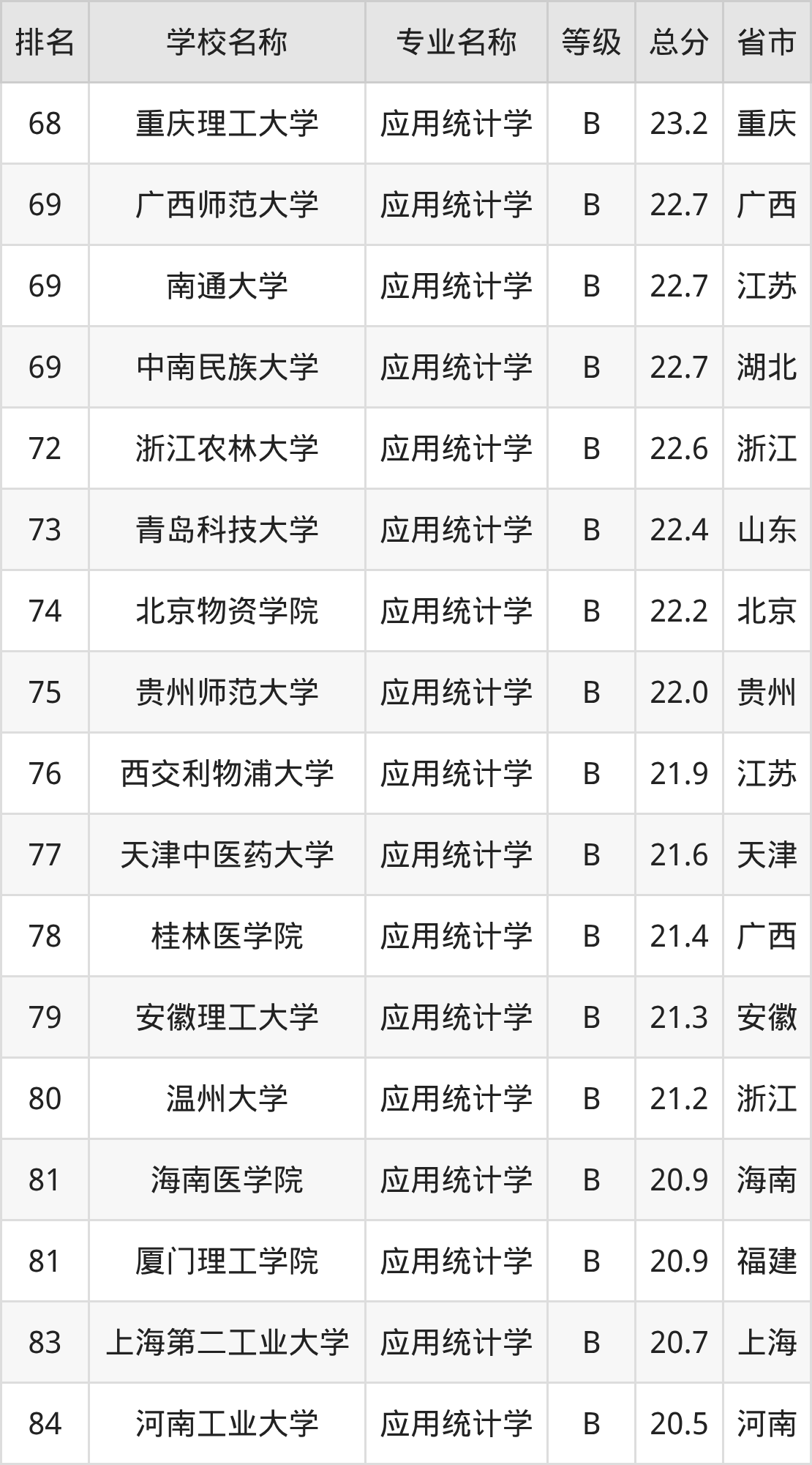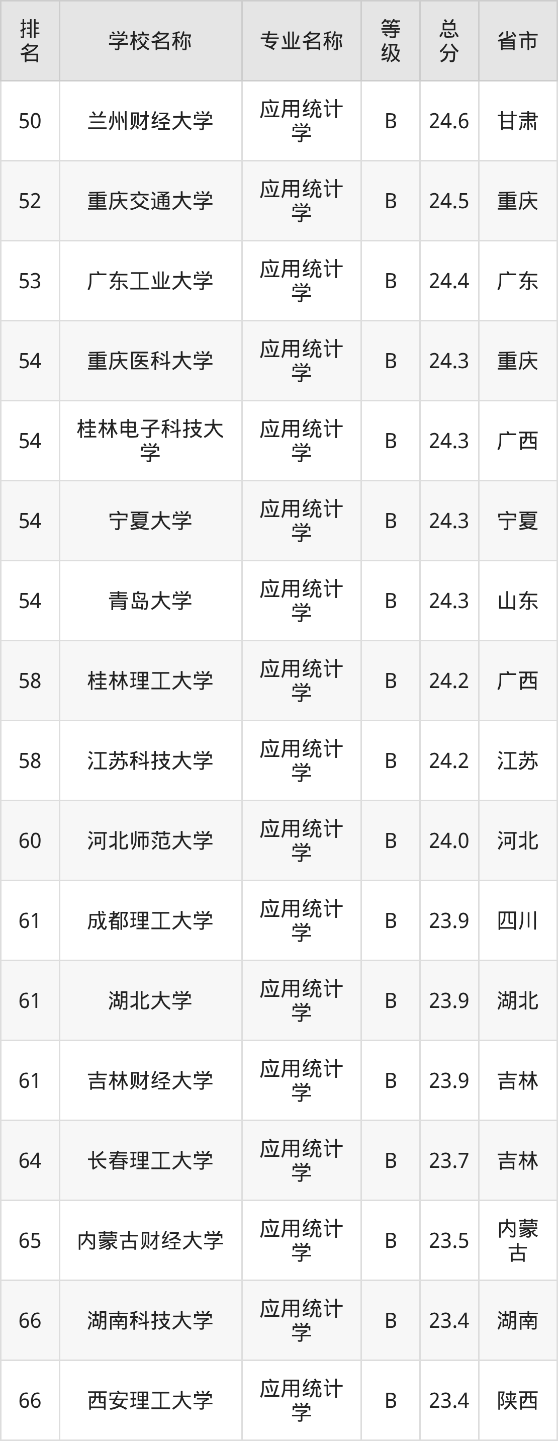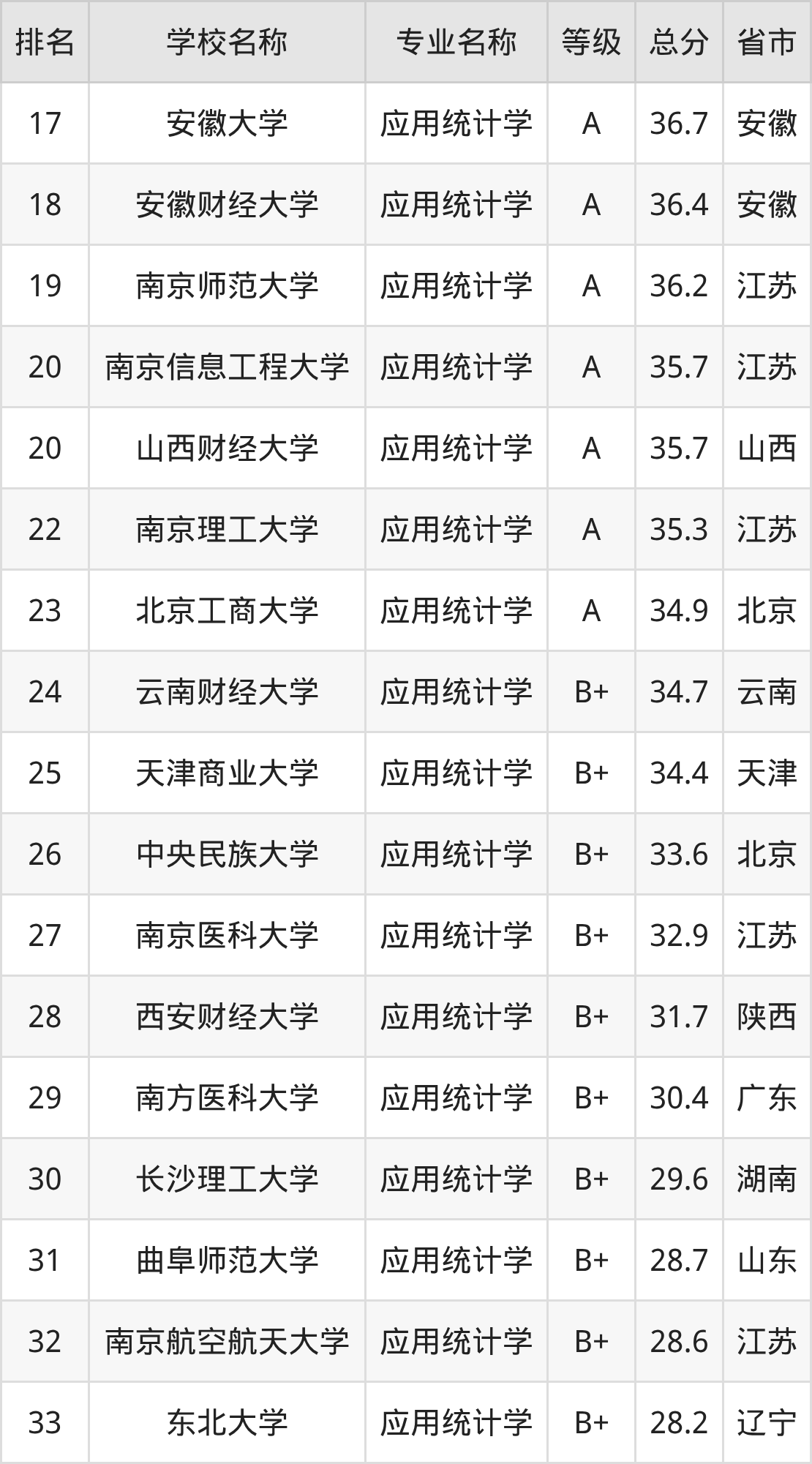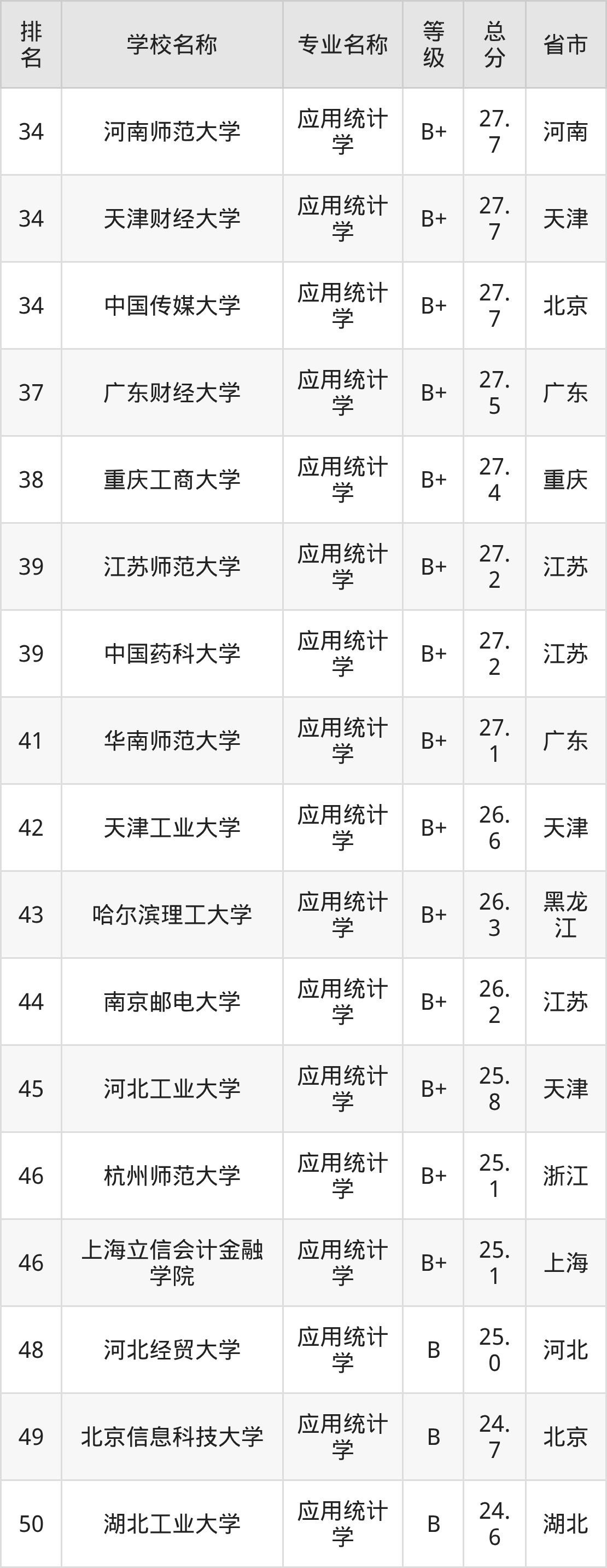 附应用统计学专业全国118所院校排名榜单一览表!