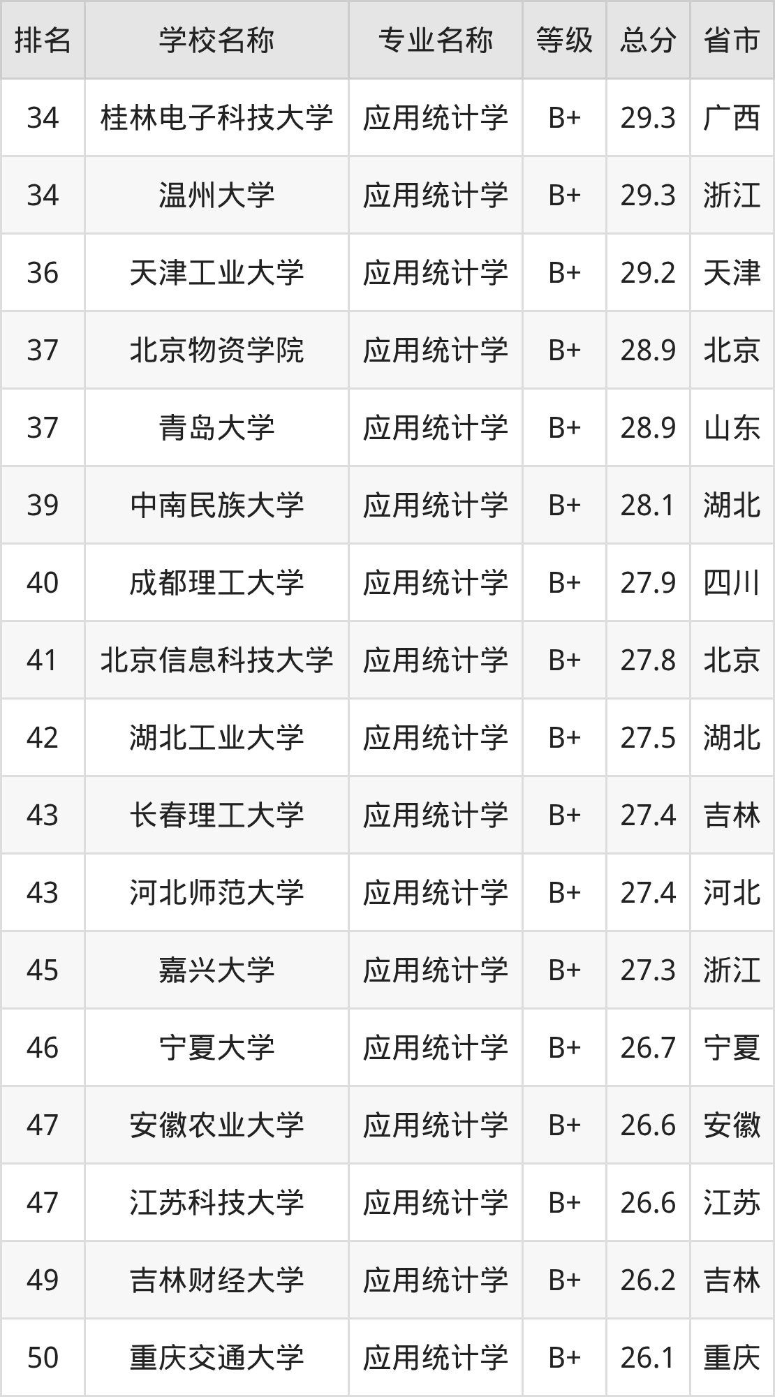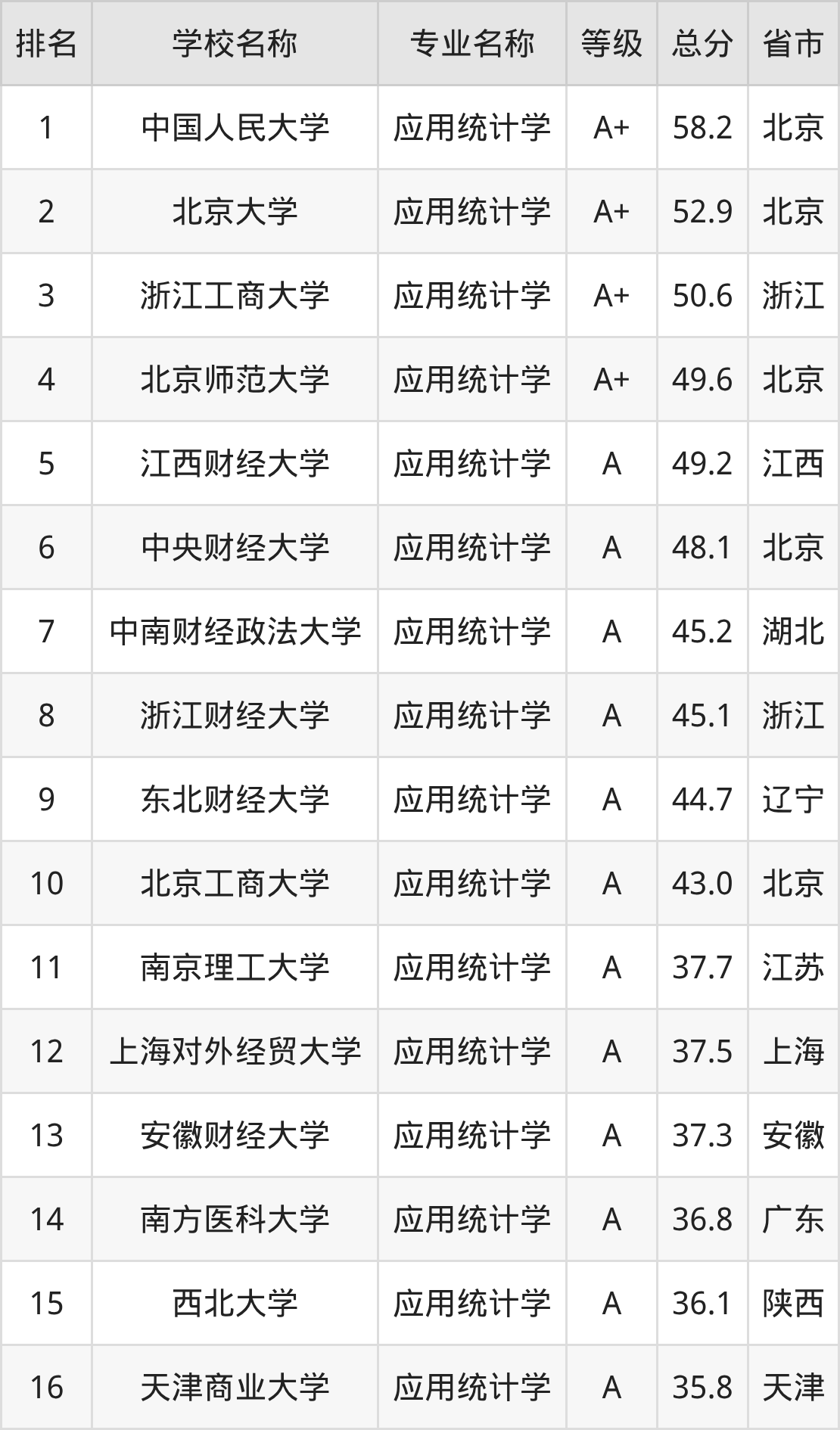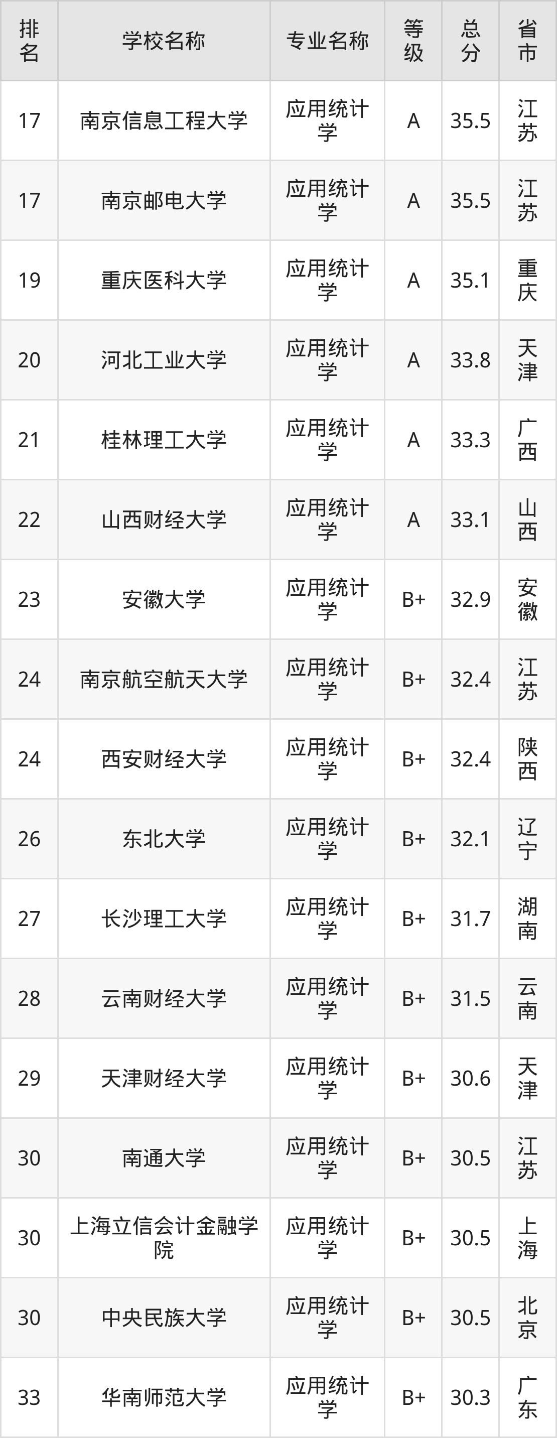 附应用统计学专业全国110所院校排名榜单一览表!