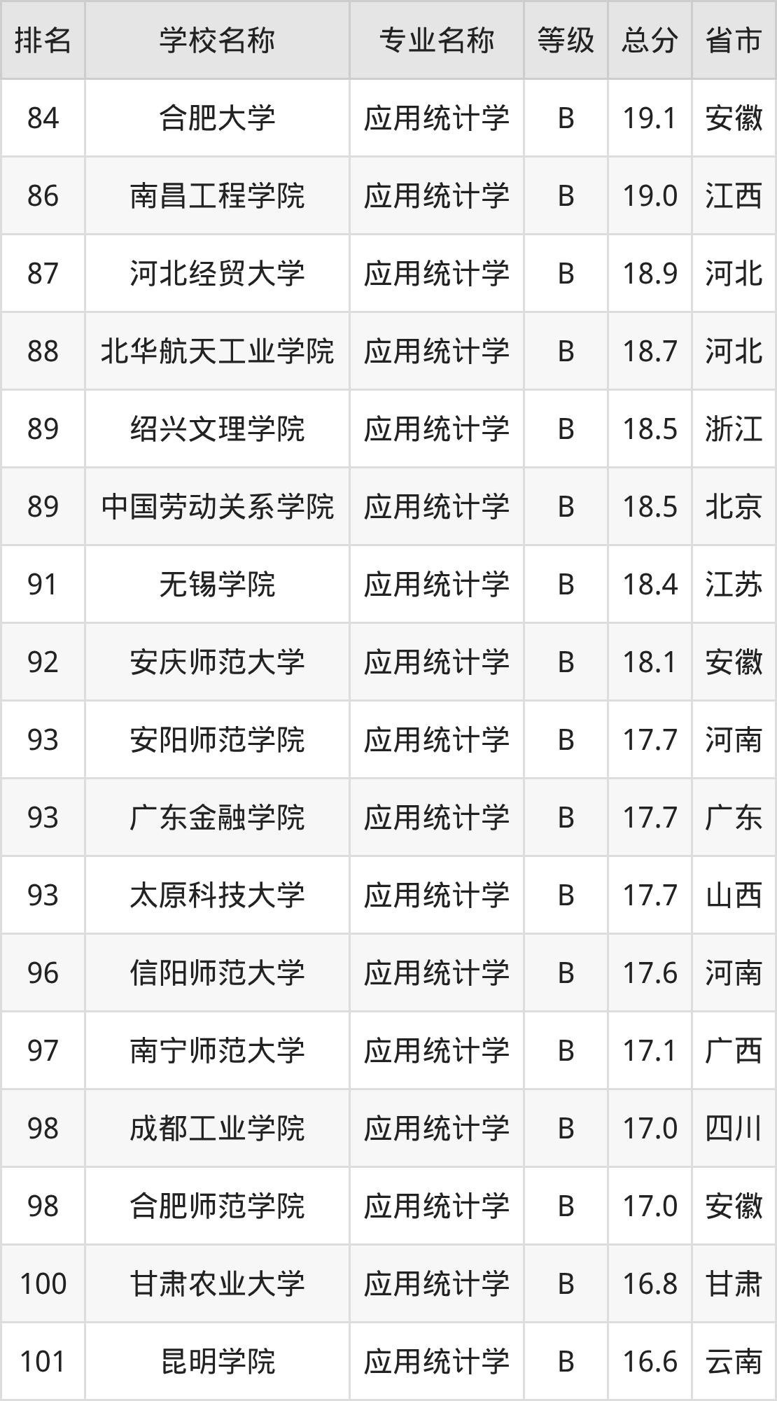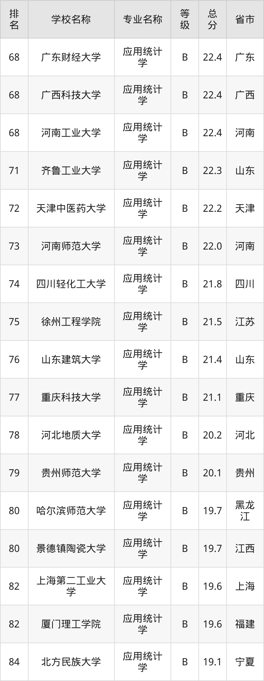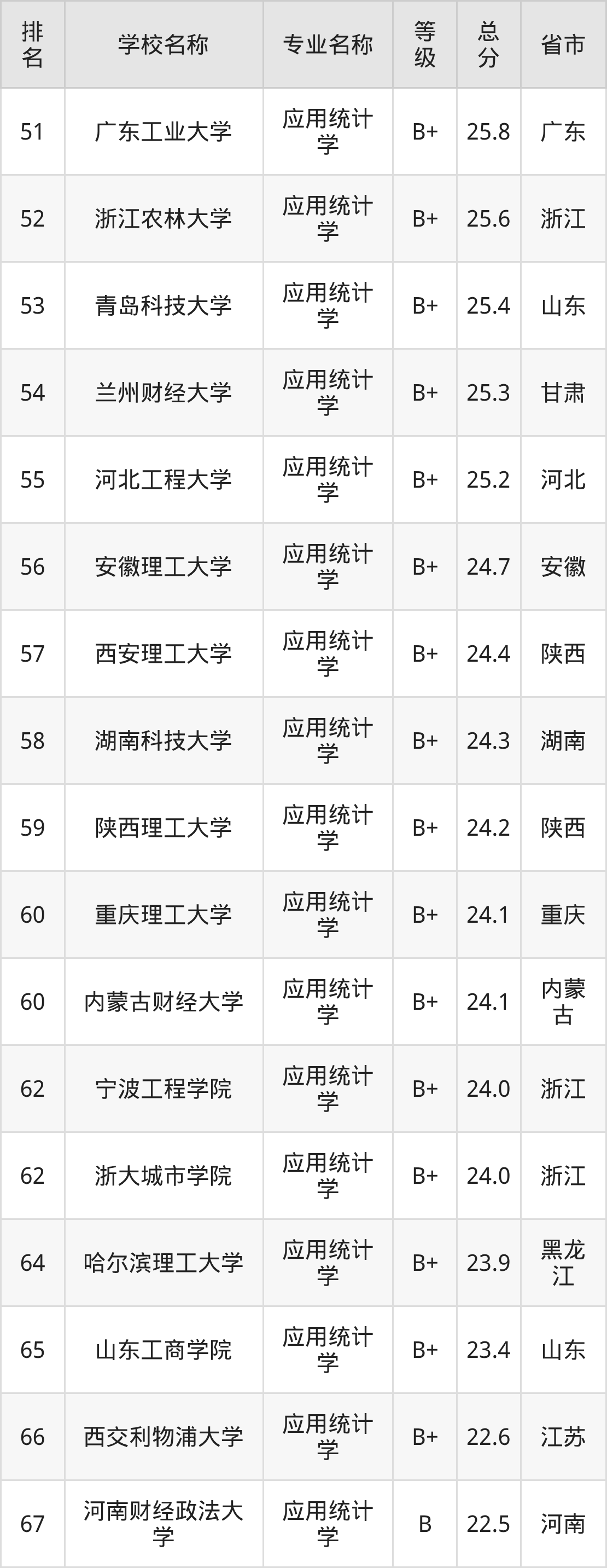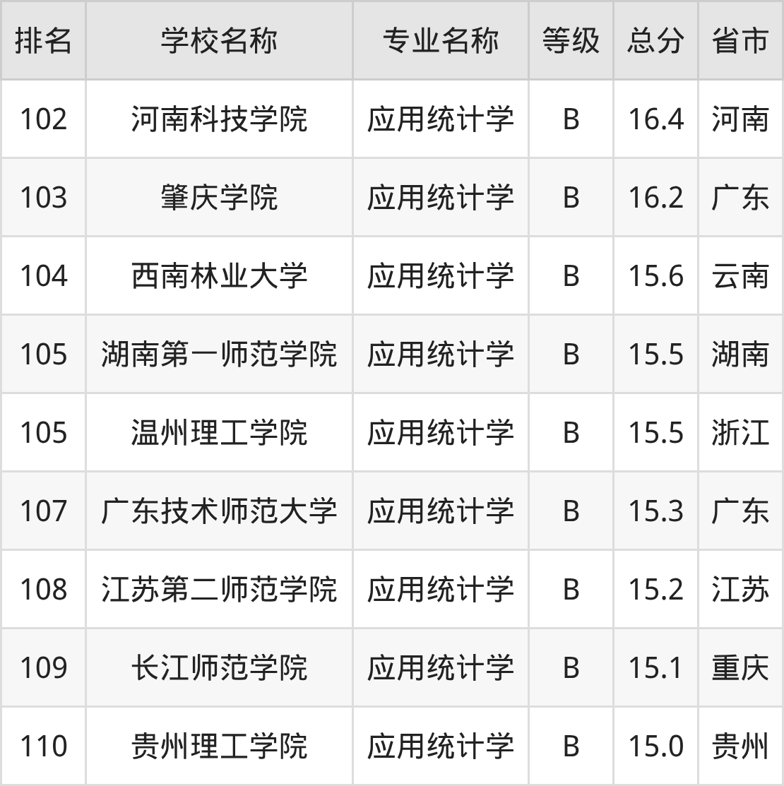 附应用统计学专业全国110所院校排名榜单一览表!