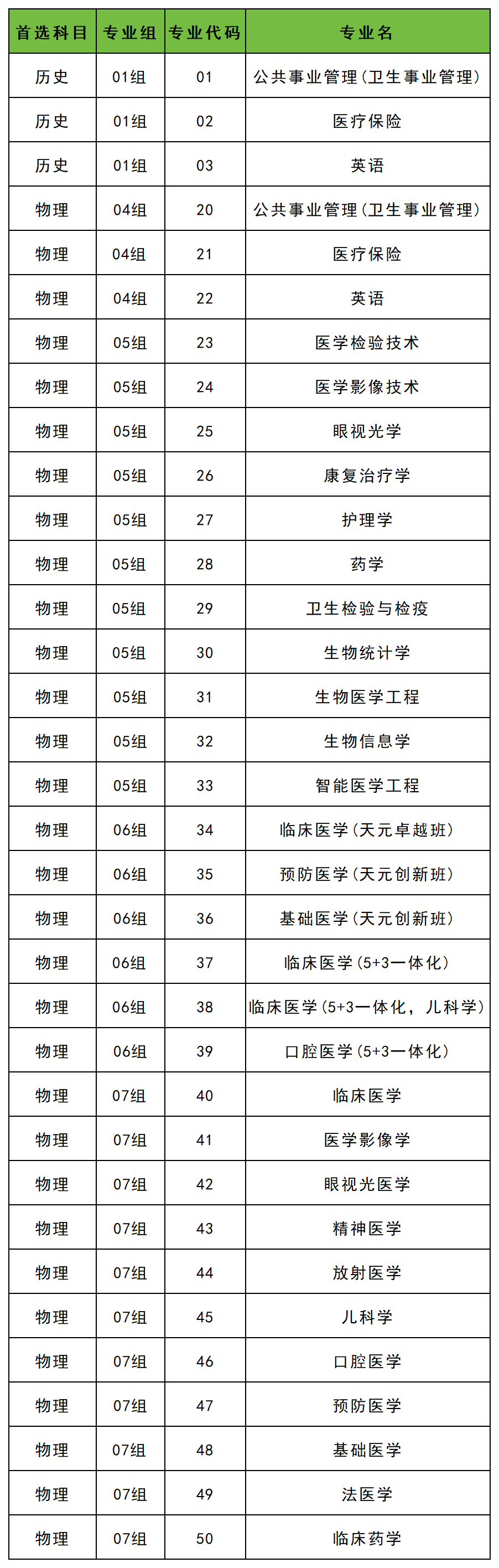 篇幅有限,这里仅列举南京医科大学的本科志愿填报专业(组)代码,以供参考(同一专业可能存在多个代码的情况,请按照实际招生要求选择填报):
