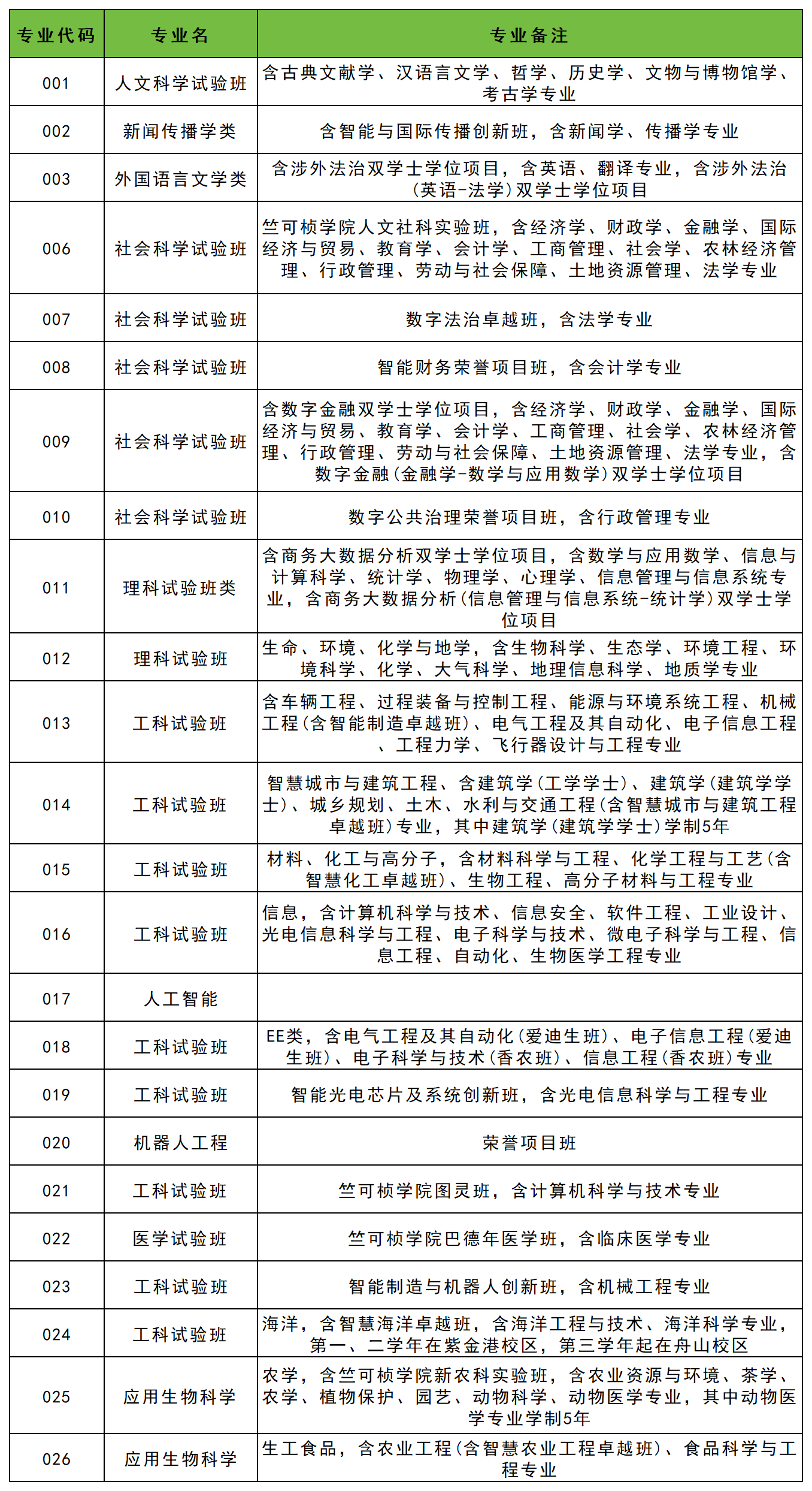 温馨提示:本文使用的志愿填报代码来源于浙江2025年高考招生计划表,仅供参考。2026届考生高考正式填报时要以2026年高考志愿填报招生计划表中的代码为准。