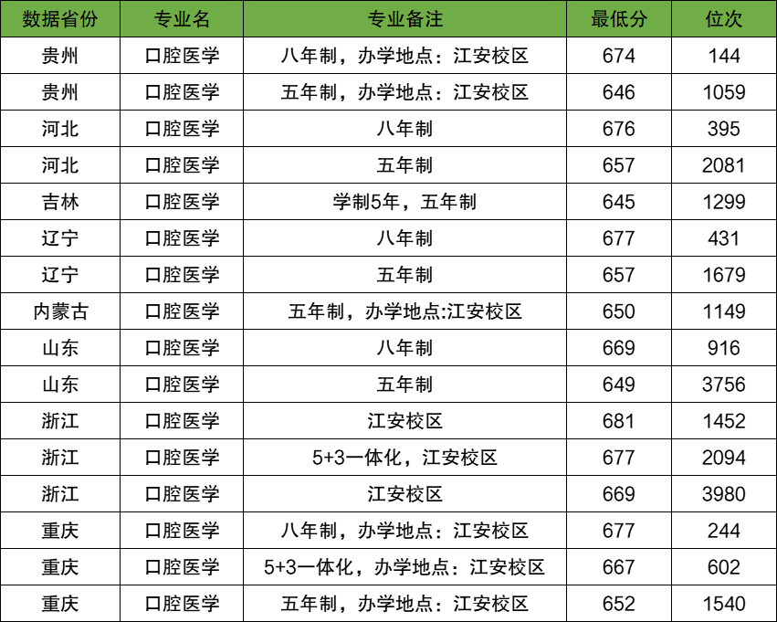 一、全国口腔医学专业前十名