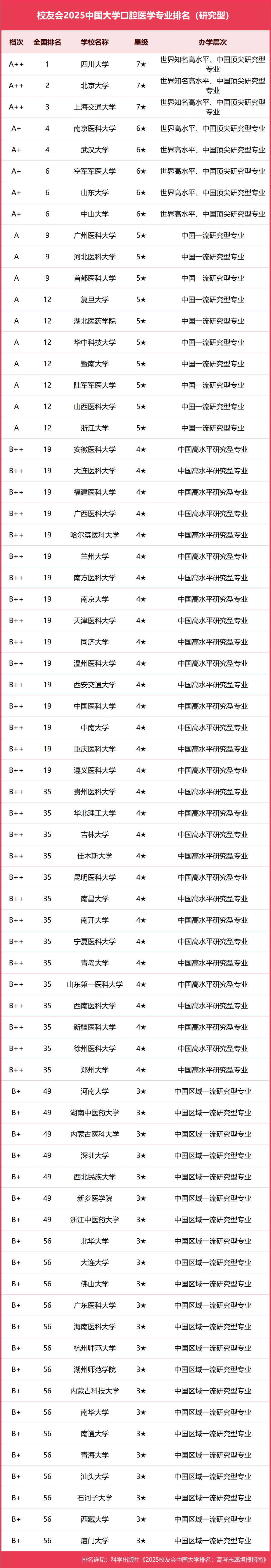 二、2025口腔医学专业大学排名