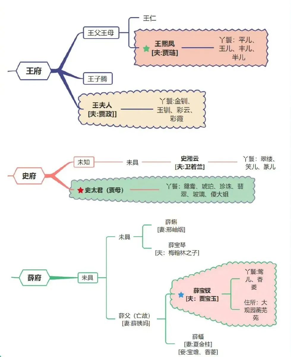 《红楼梦》人物关系可以根据辈分及家族来梳理,按辈分来分可分为四辈,按照家族来分可以分为贾家、史家、王家、薛家四个家族。